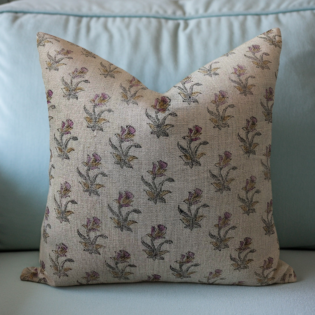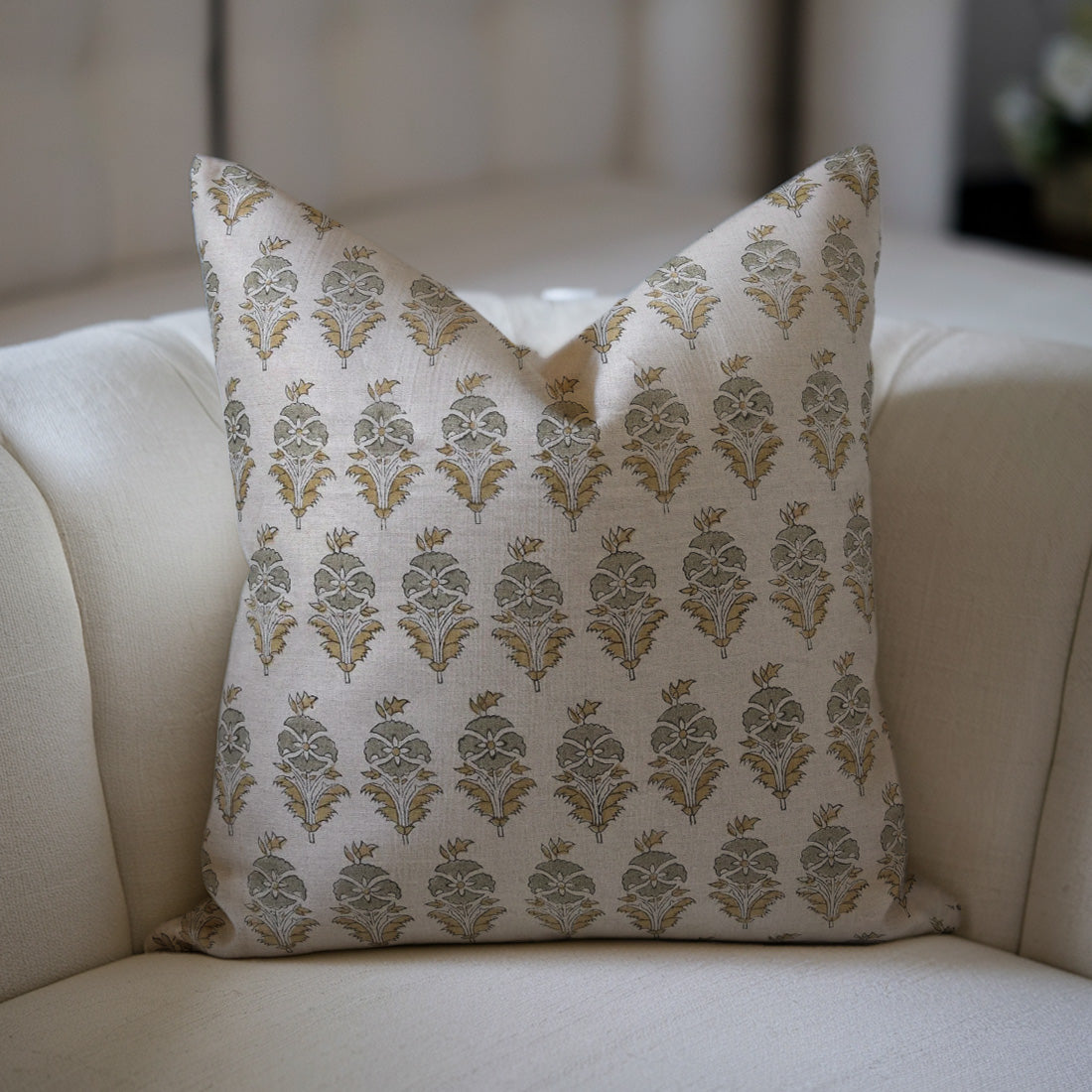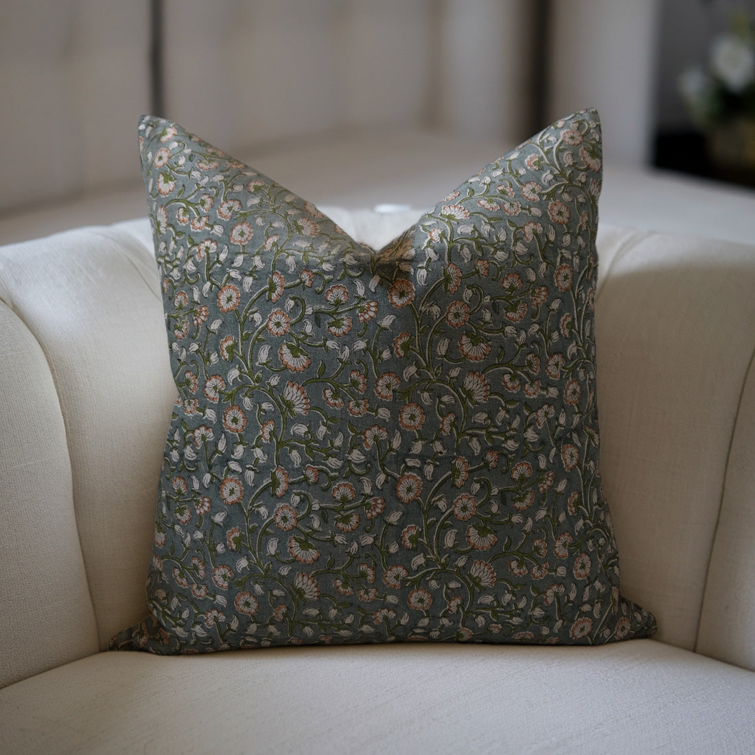 Block print pure linen throw pillow cover- ARADHANA - Fabdivine