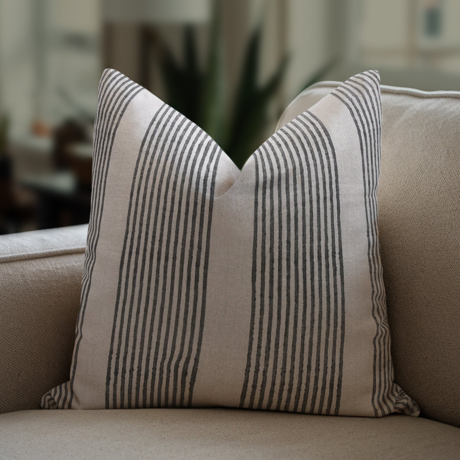 Throw Pillow Cover –Designer Collection of Hand Block Print Heavy Linen- BLACK LEHERIA - Fabdivine