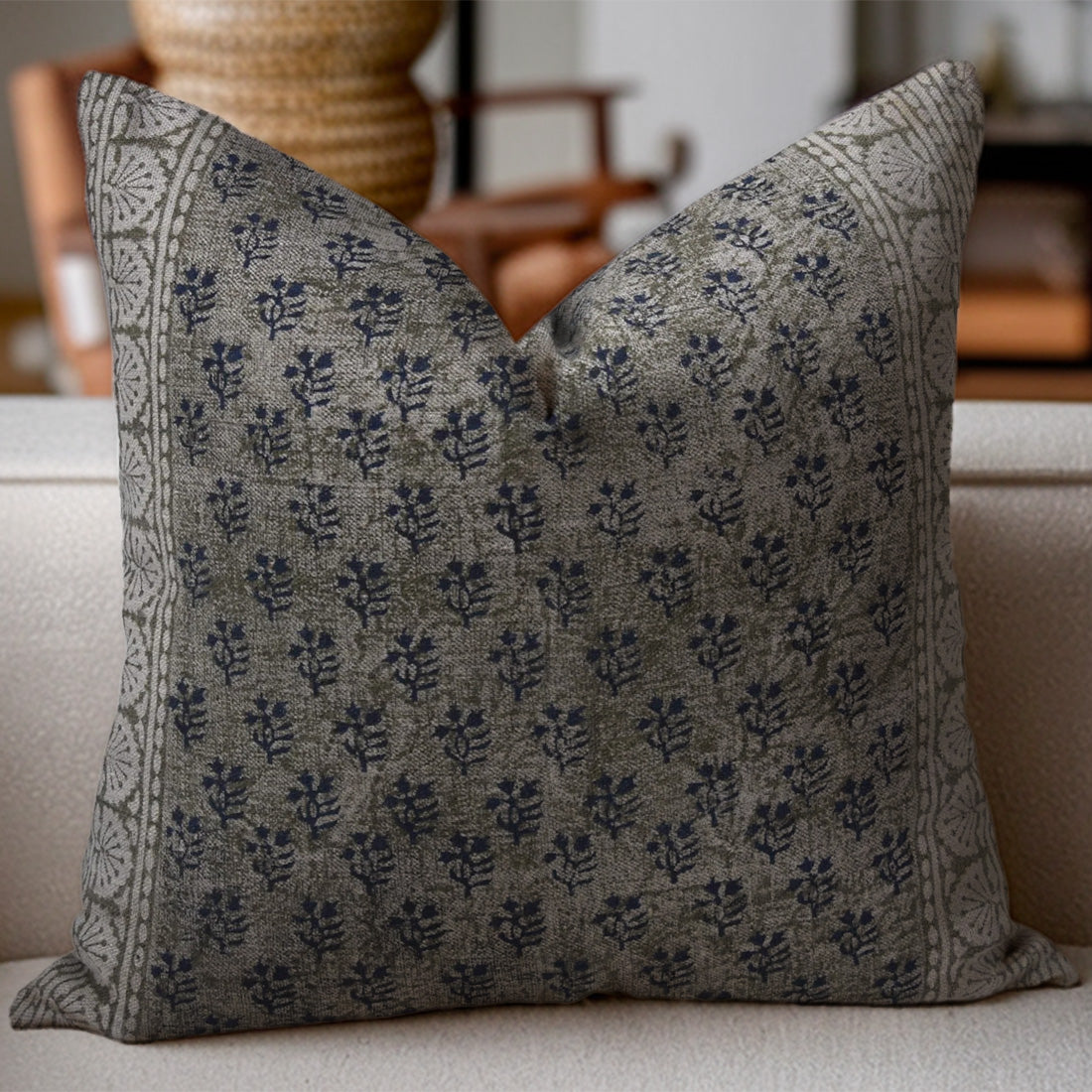 Block print Pillow cover for sofa, couch or bed- Thick/Heavy Linen- EVERBEE - Fabdivine