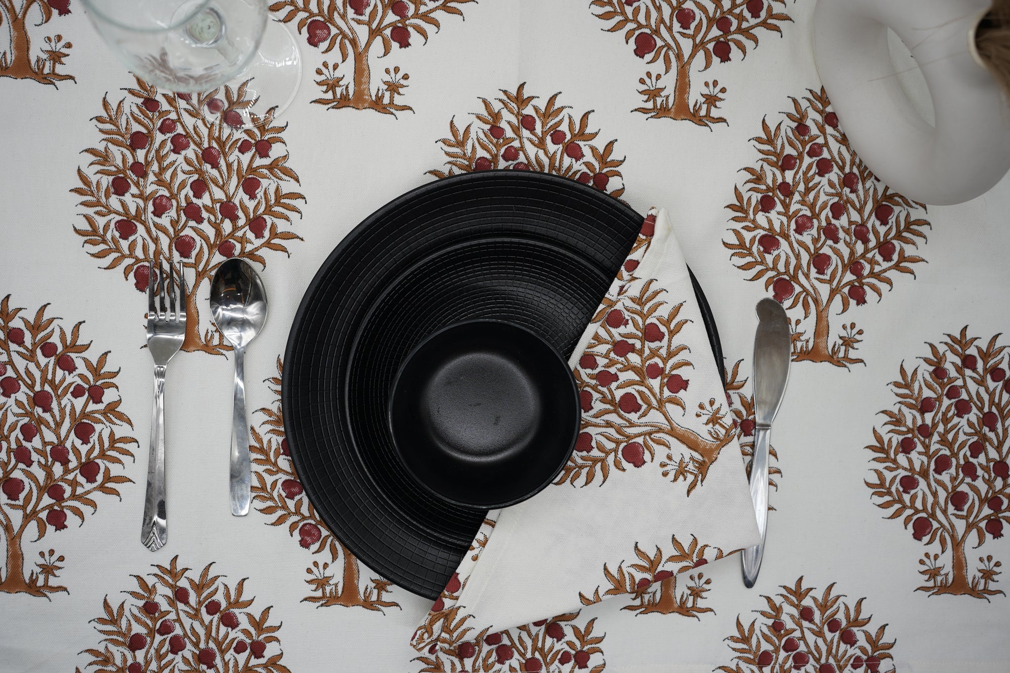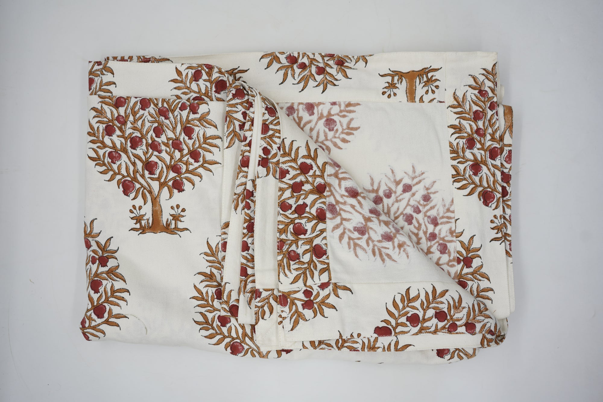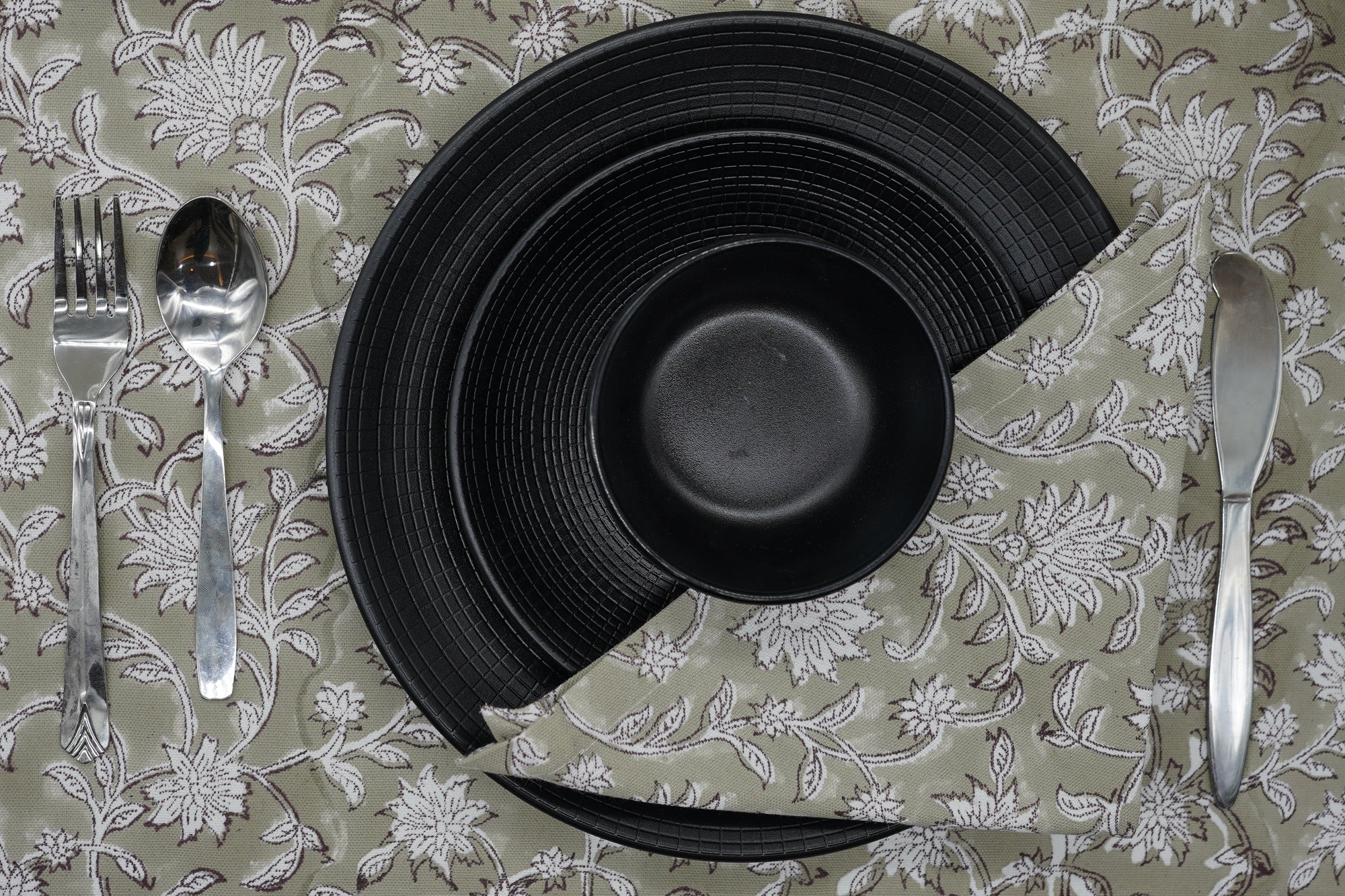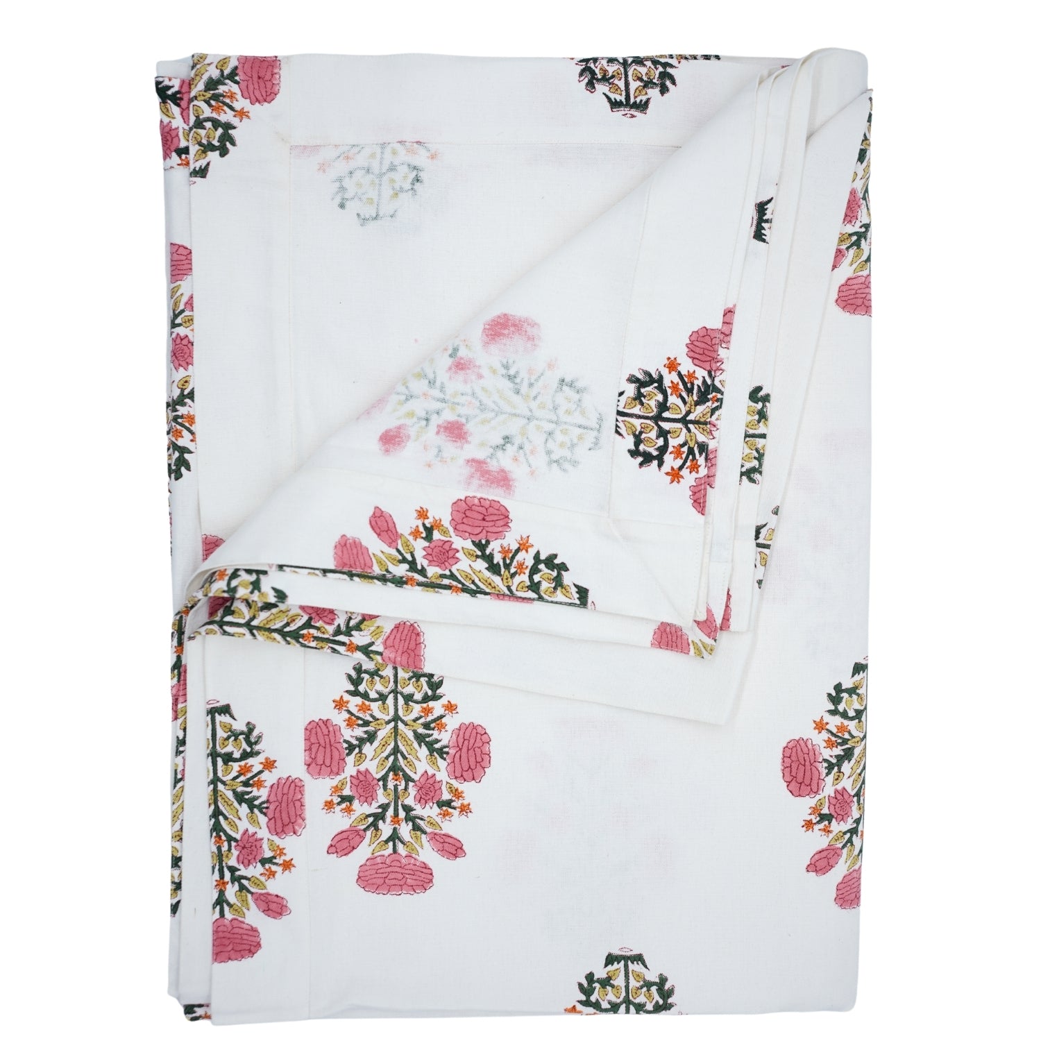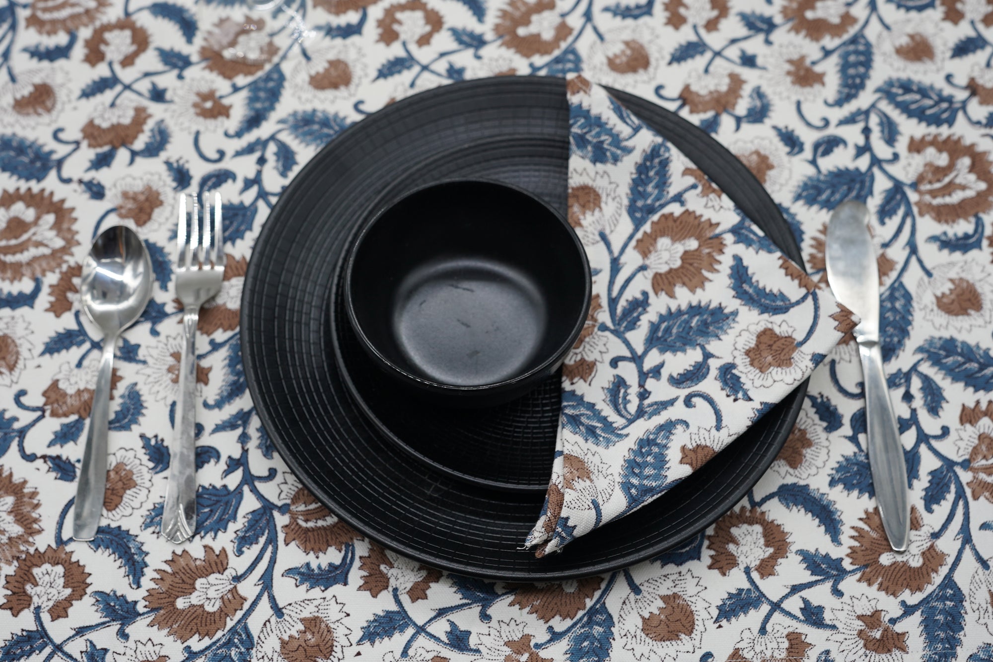 Hand-stamped floral motifs that remind one of block-printing techniques celebrate artisanal work and add some offbeat charm to your dining experience. The romantic frill edging has rustic linen napkins for a wedding kind of vibe, hence very suitable for your family dinners as well as your fashionable events.