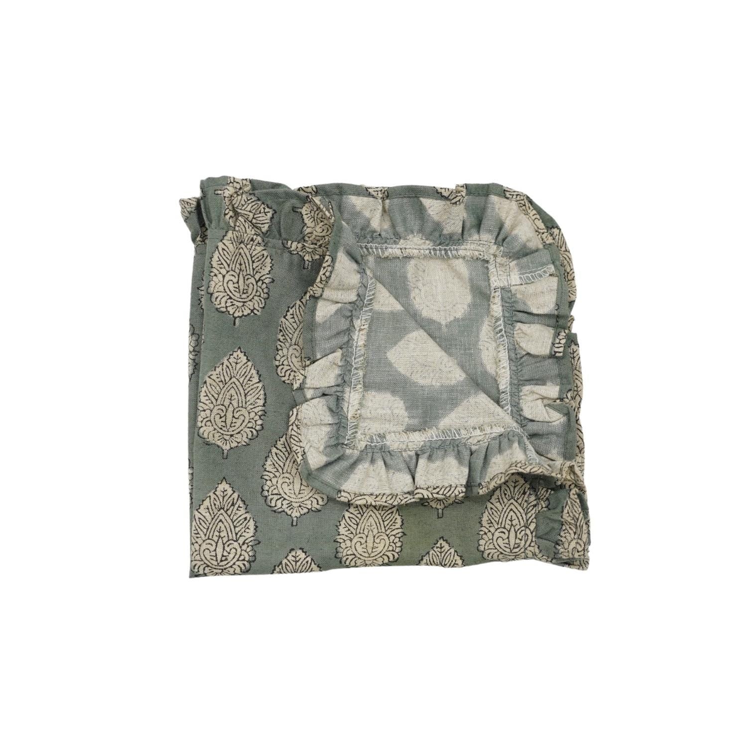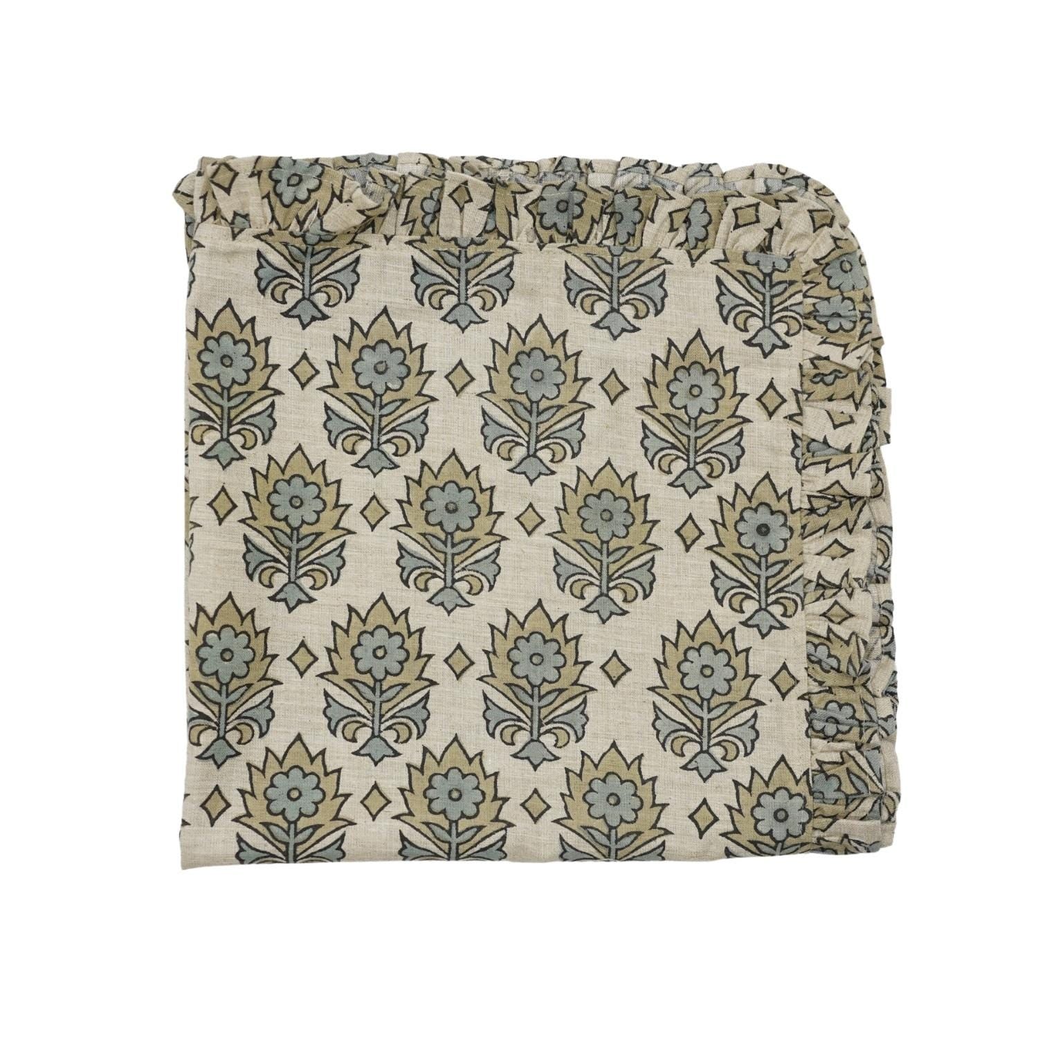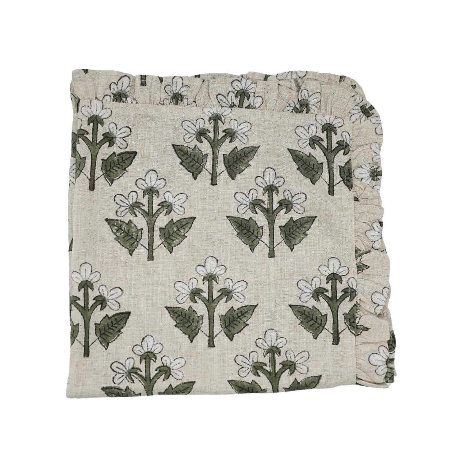 Craft your dining atmosphere with one of our Artisan Hand-Stamped Floral Viscose Linen Frill Napkins infusion of elegance, craftsmanship, and genuine agelessness. This napkin is for you if you love fine details- it is certainly bringing your tablescape to reality and making every meal like a special event.