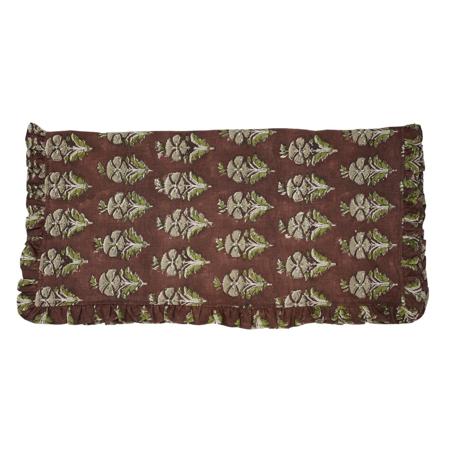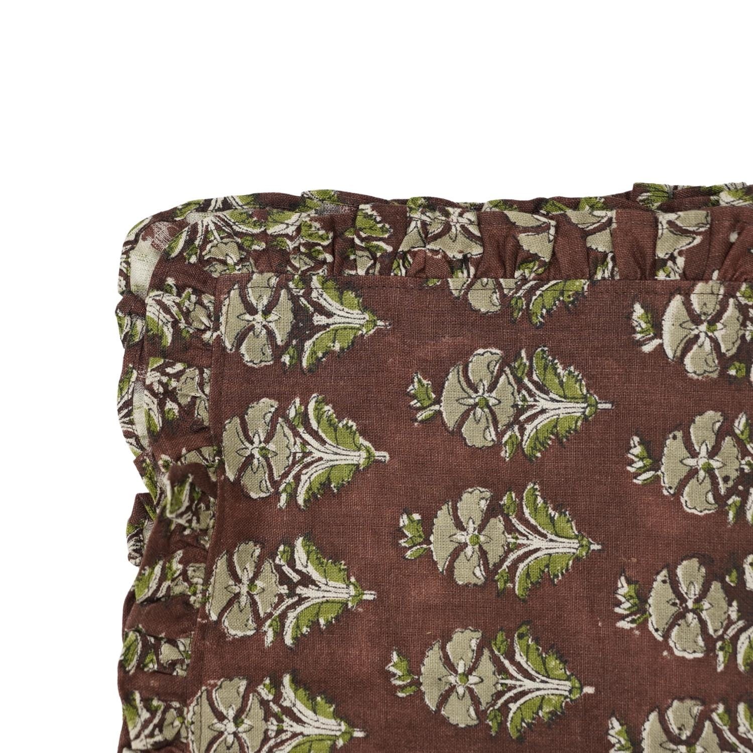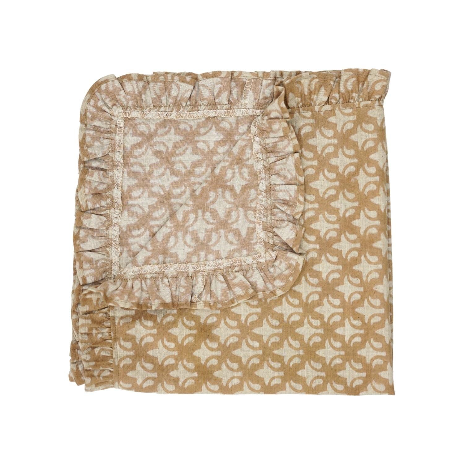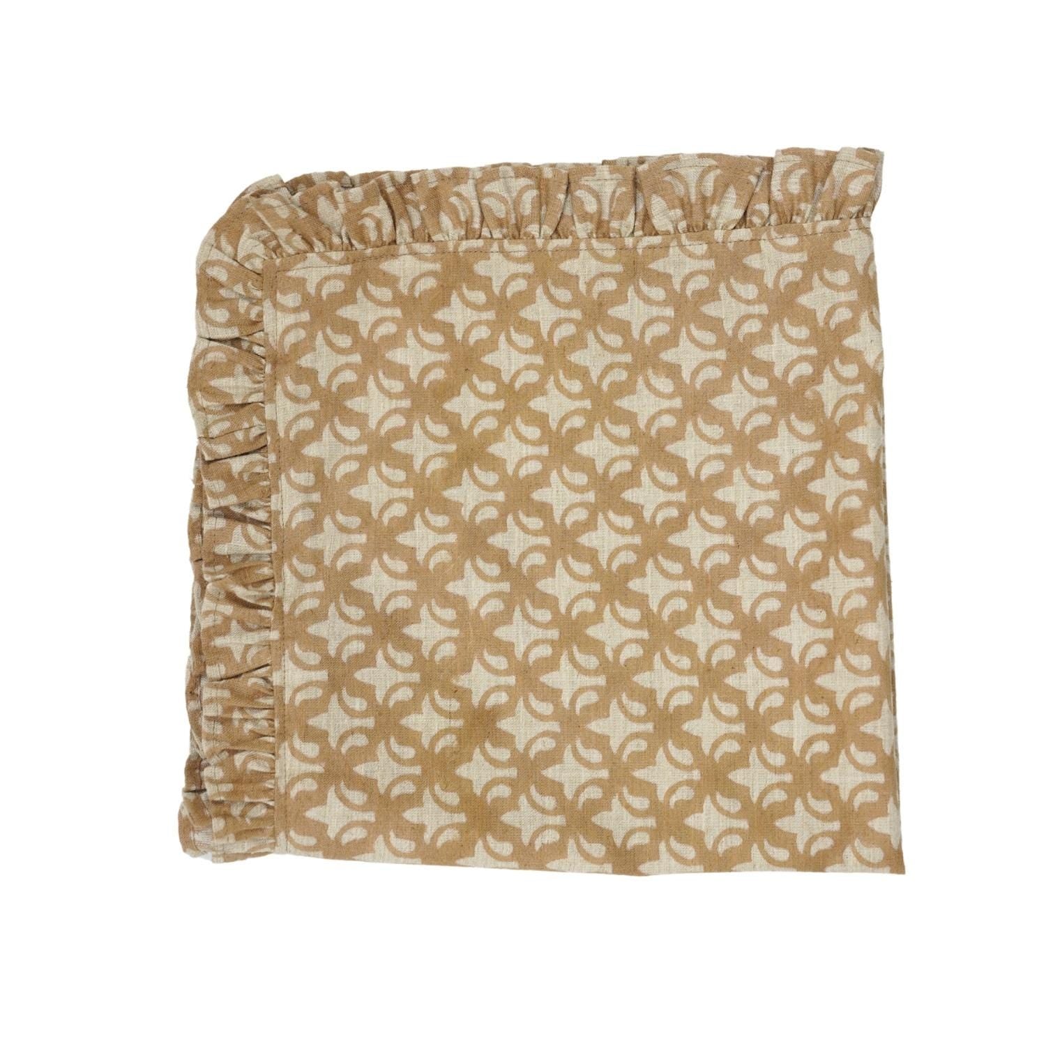 Craft your dining atmosphere with one of our Artisan Hand-Stamped Floral Viscose Linen Frill Napkins infusion of elegance, craftsmanship, and genuine agelessness. This napkin is for you if you love fine details- it is certainly bringing your tablescape to reality and making every meal like a special event.