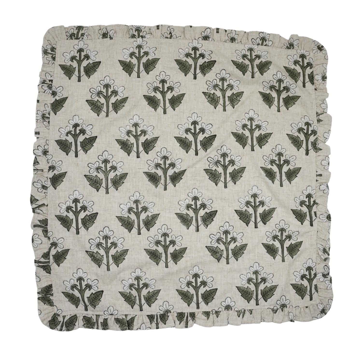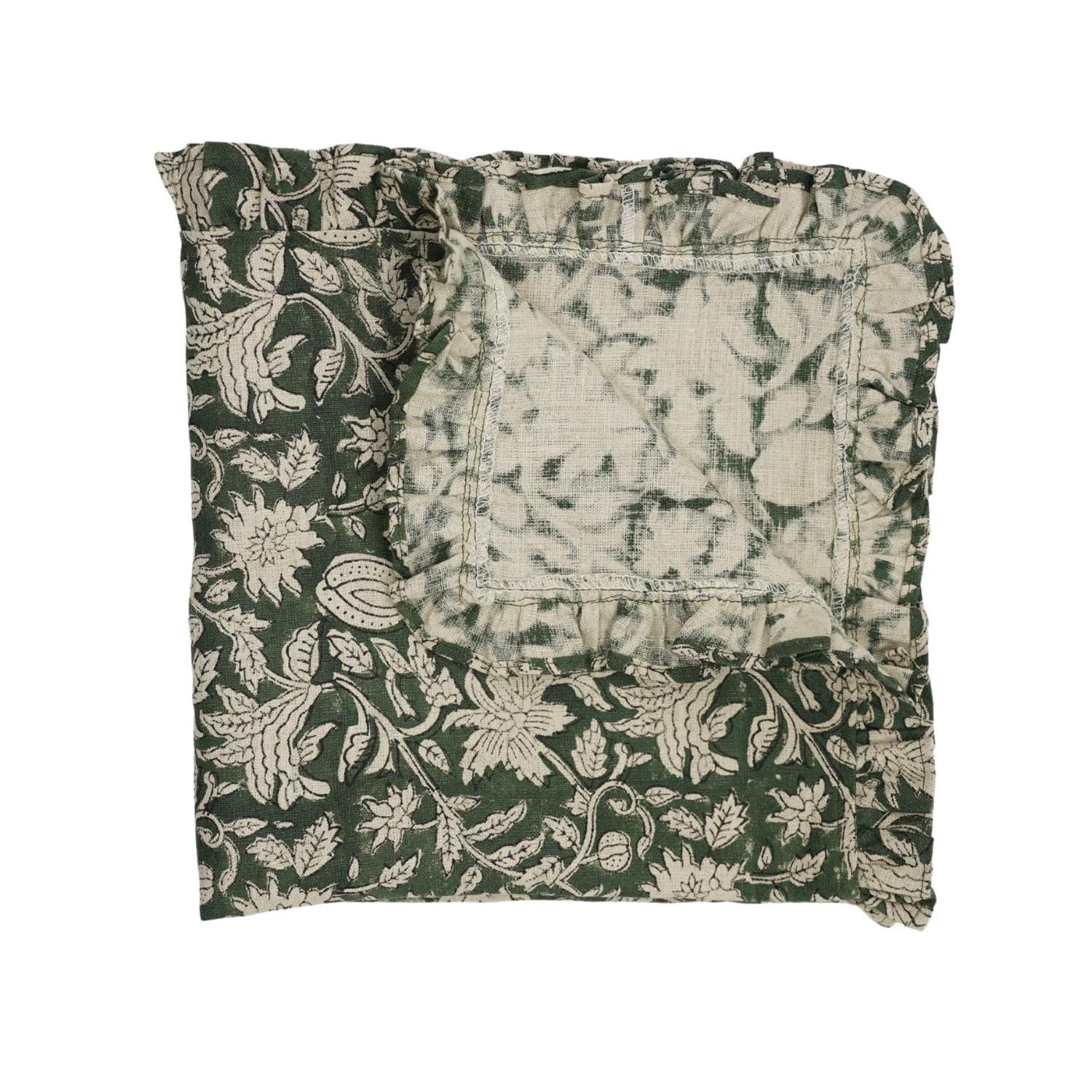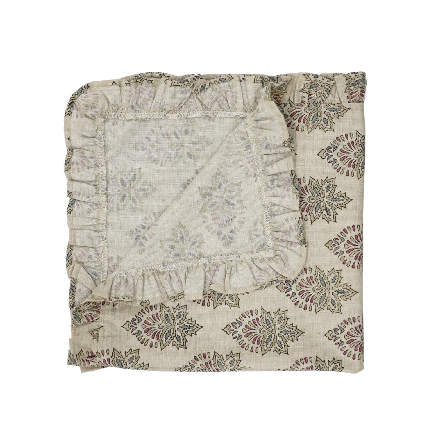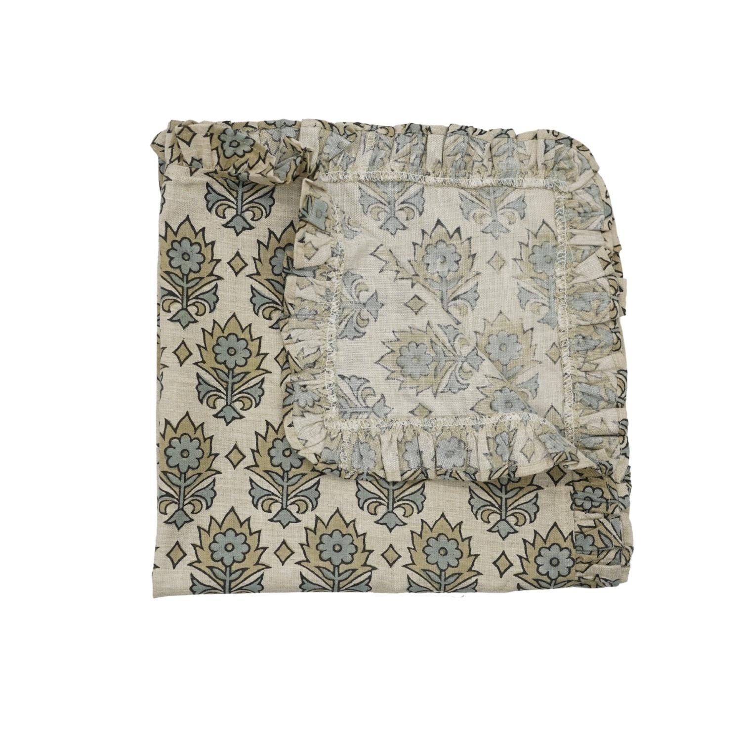 Traditional Floral Printed Linen & Cotton Frill Table Napkins Collection