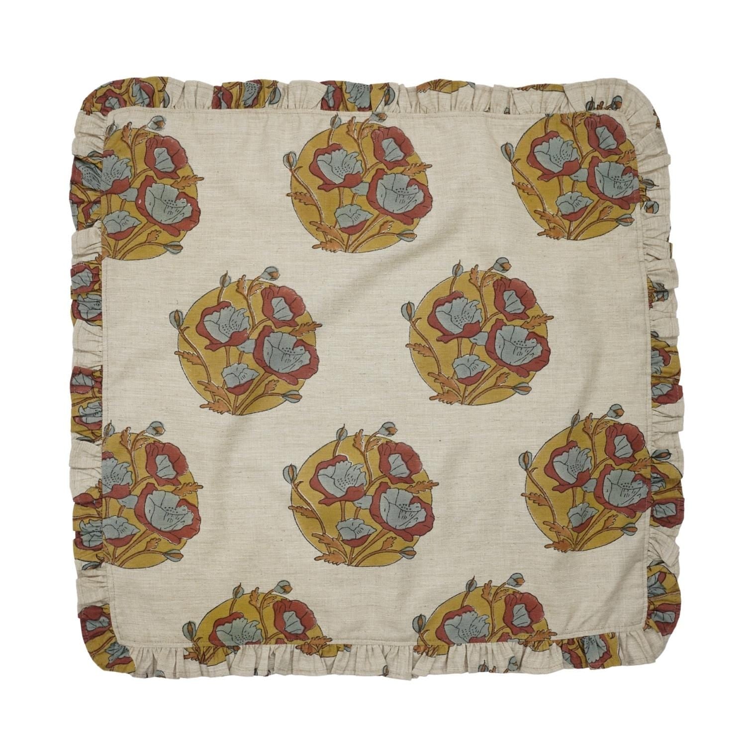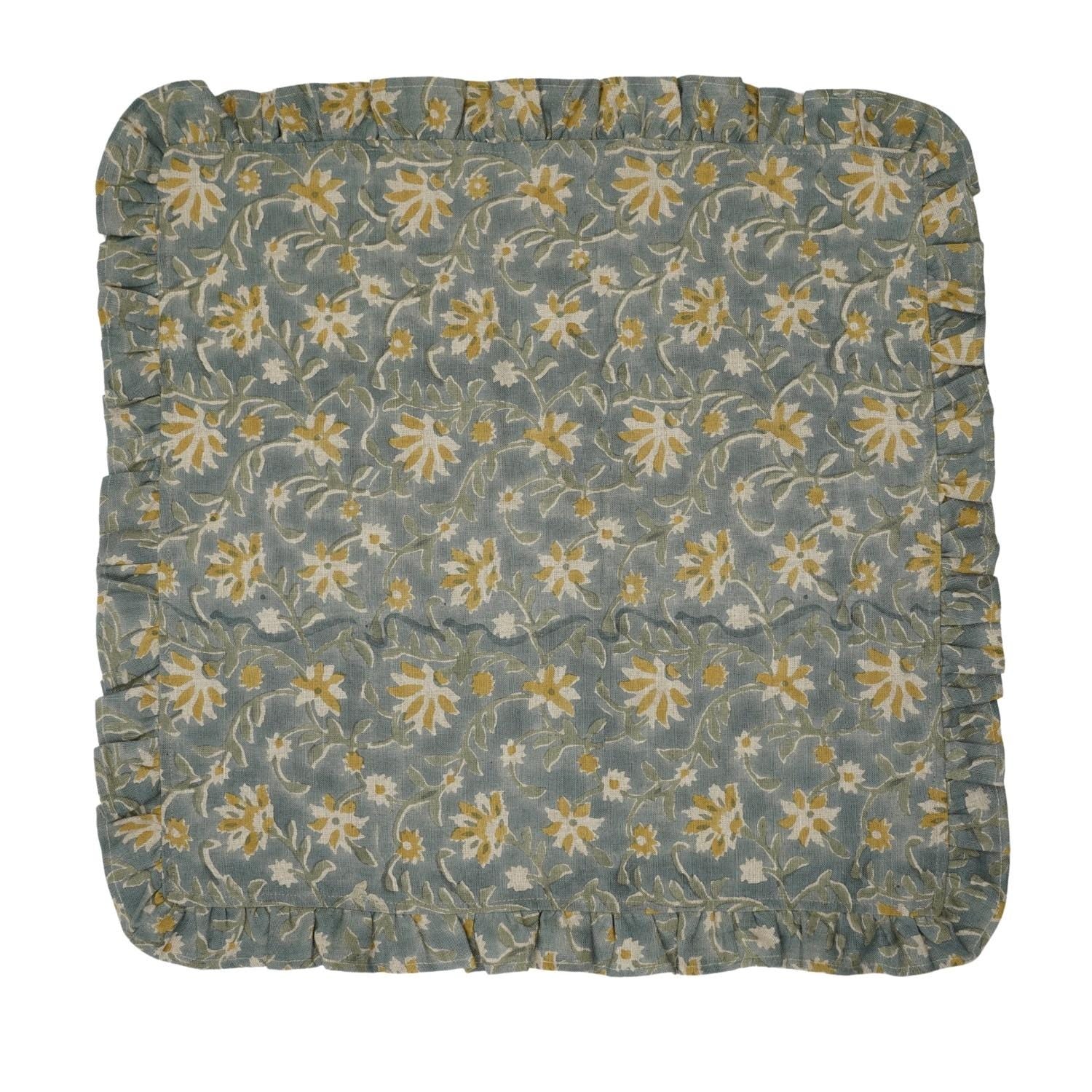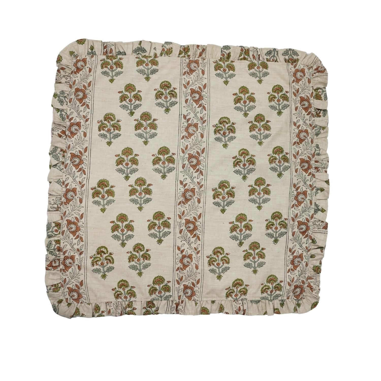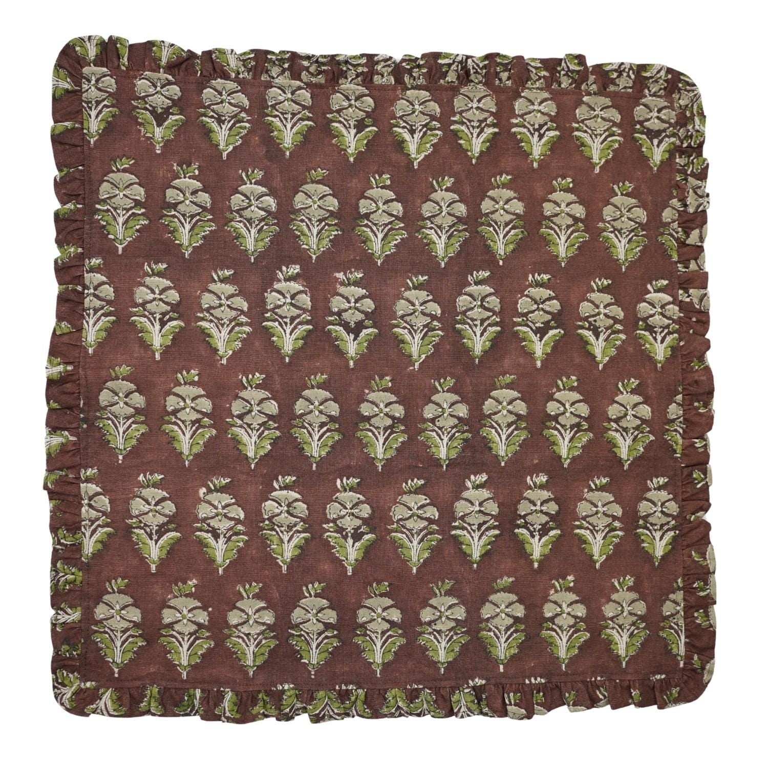 Traditional Floral Printed Linen & Cotton Frill Table Napkins Collection