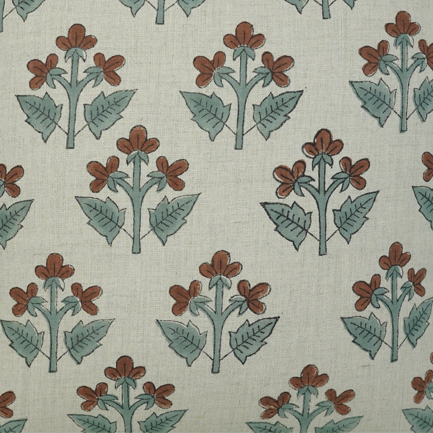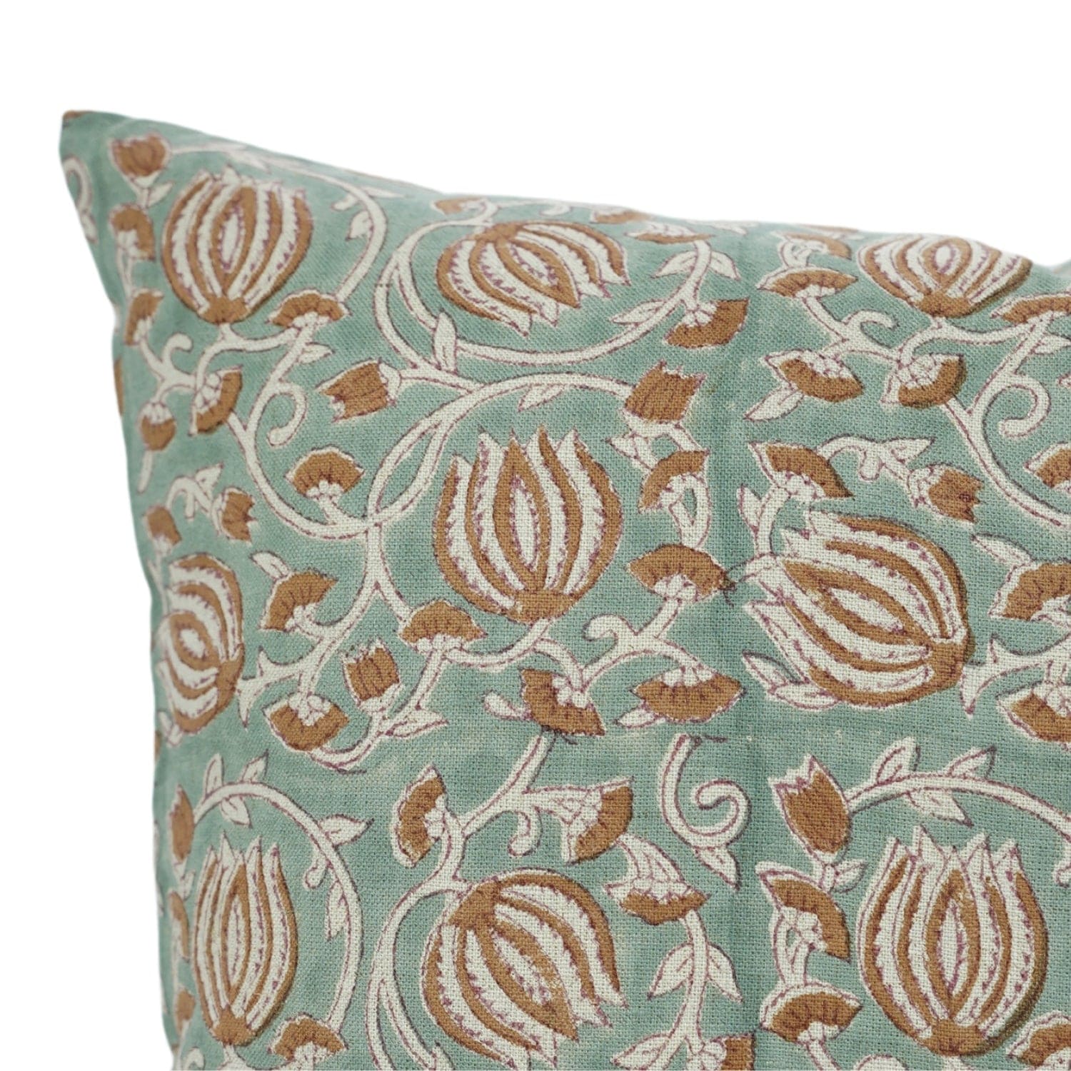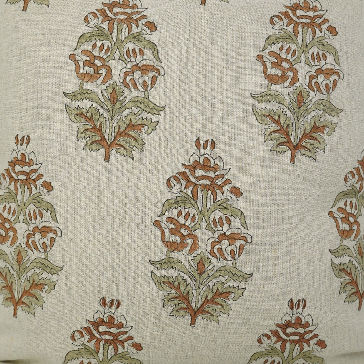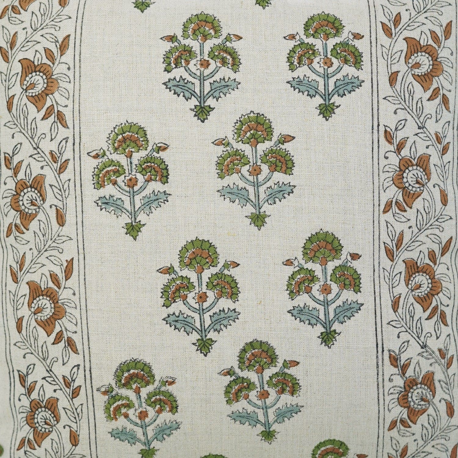 Hand Block Printed Cushion Case with Brown,Gray and Green Leaf Floral Design