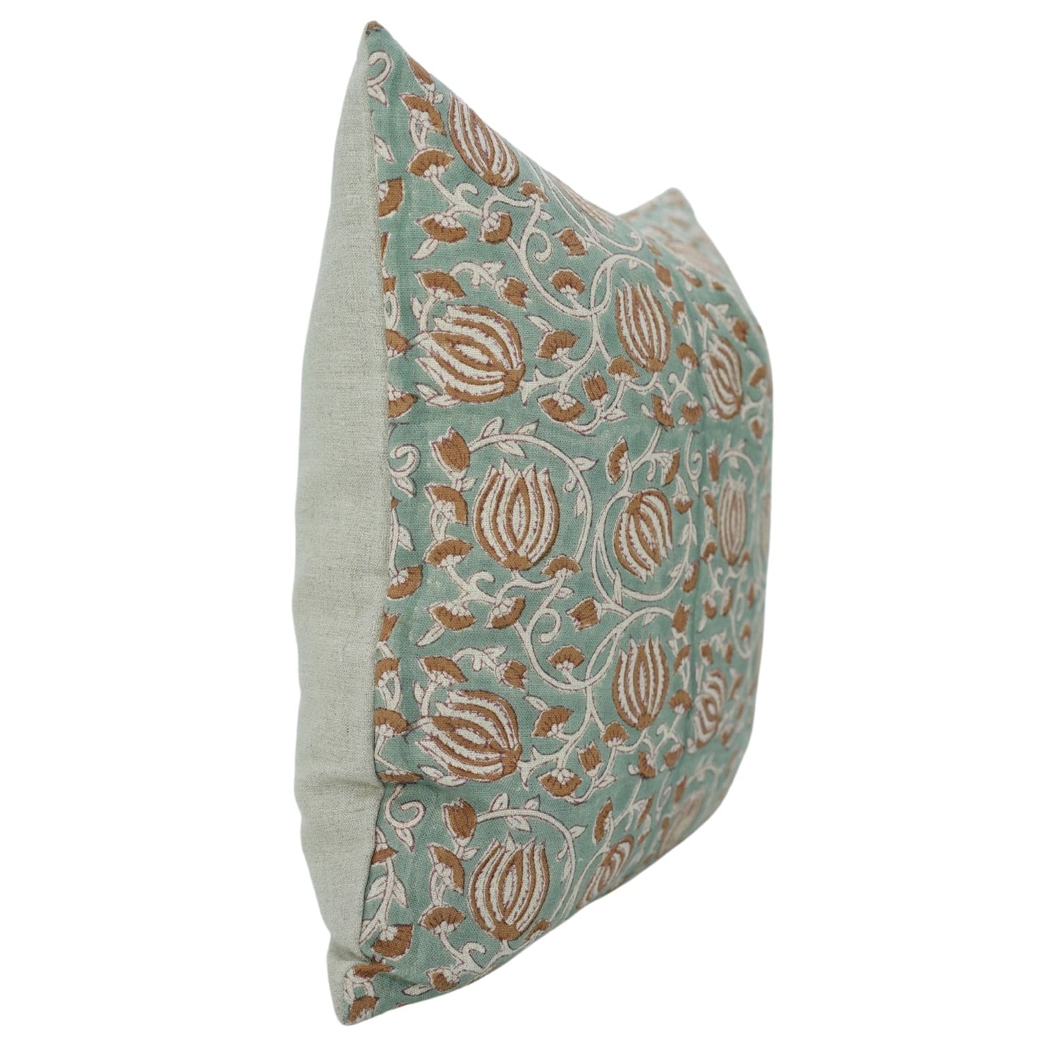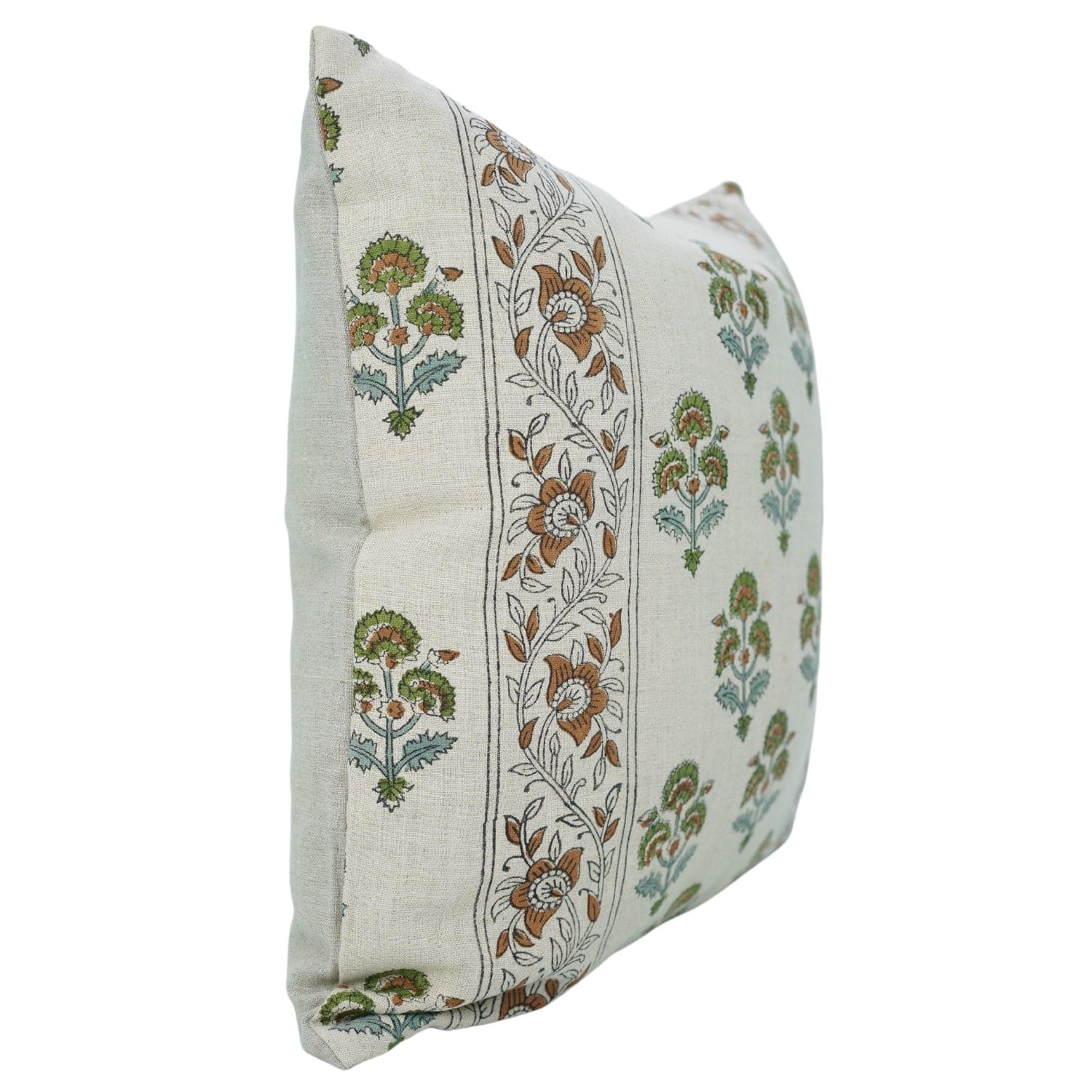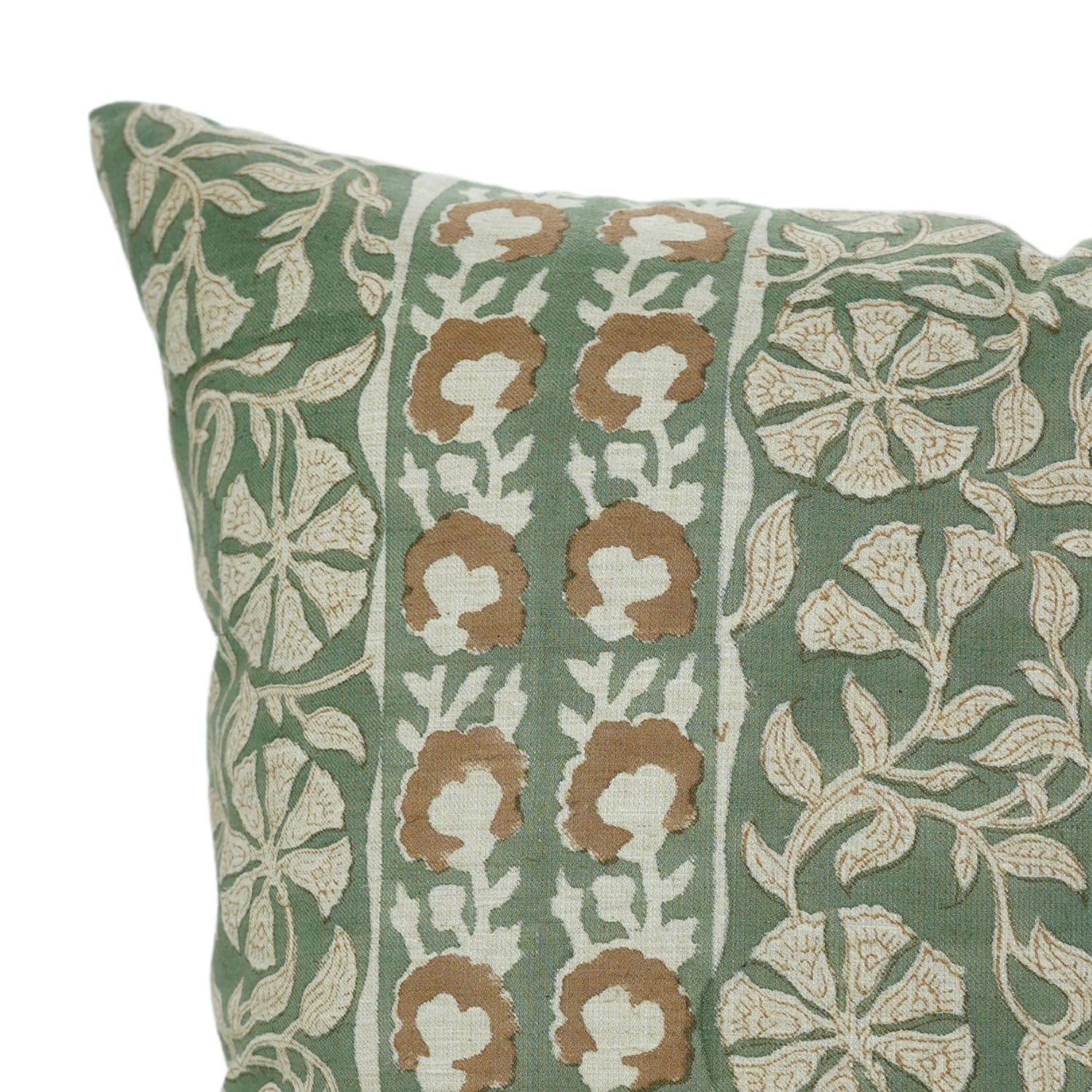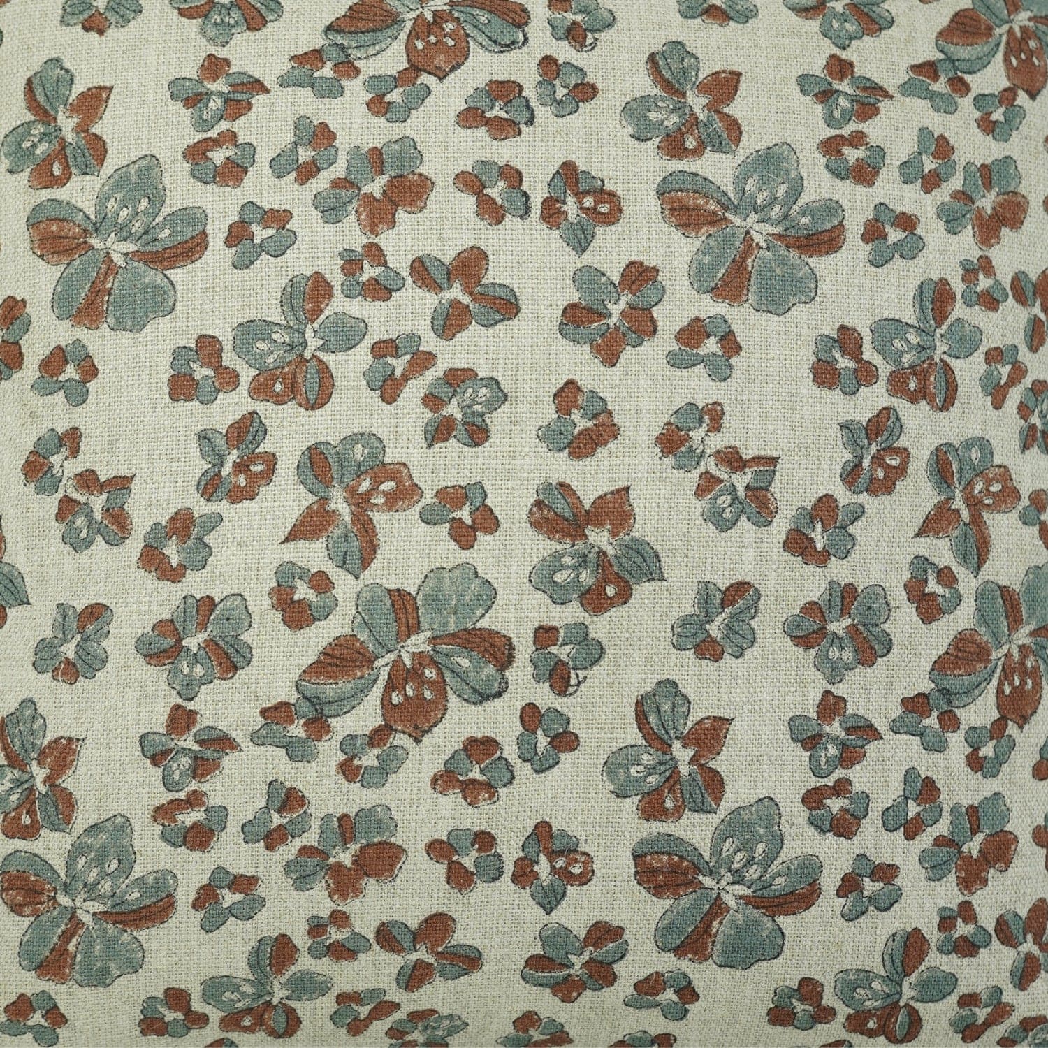 Hand Block Printed Cushion Case with Brown,Gray and Green Leaf Floral Design