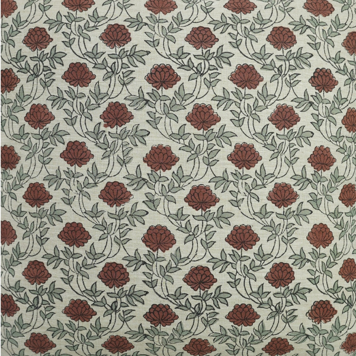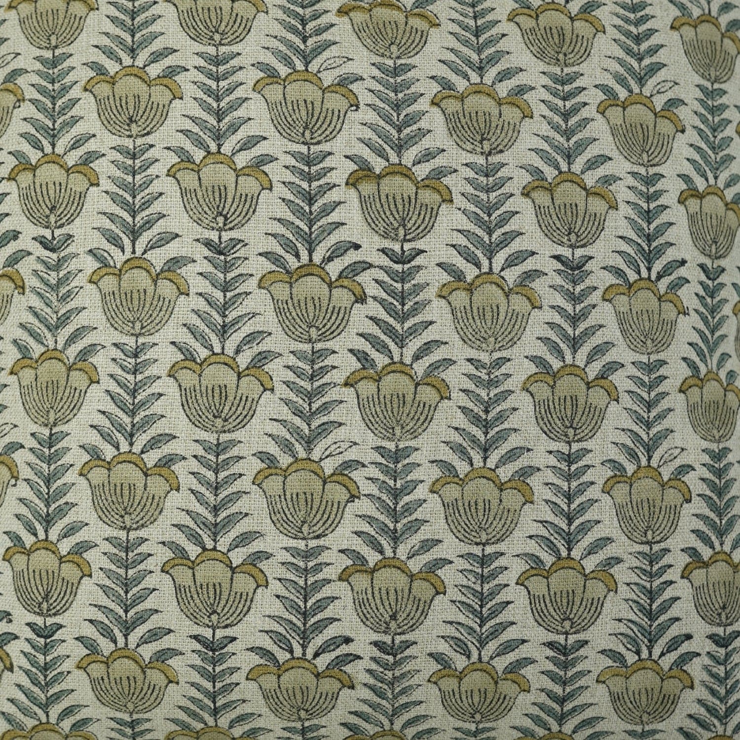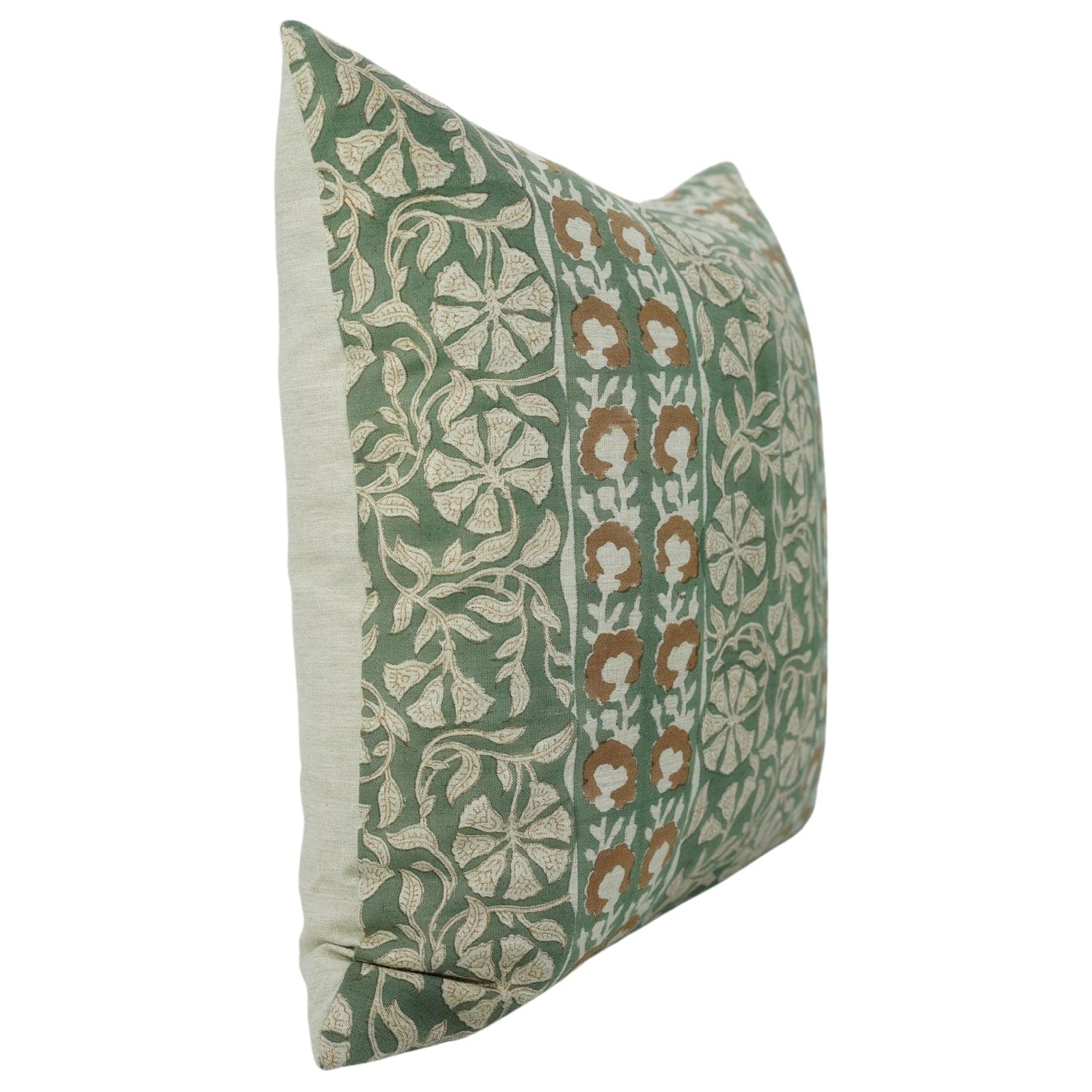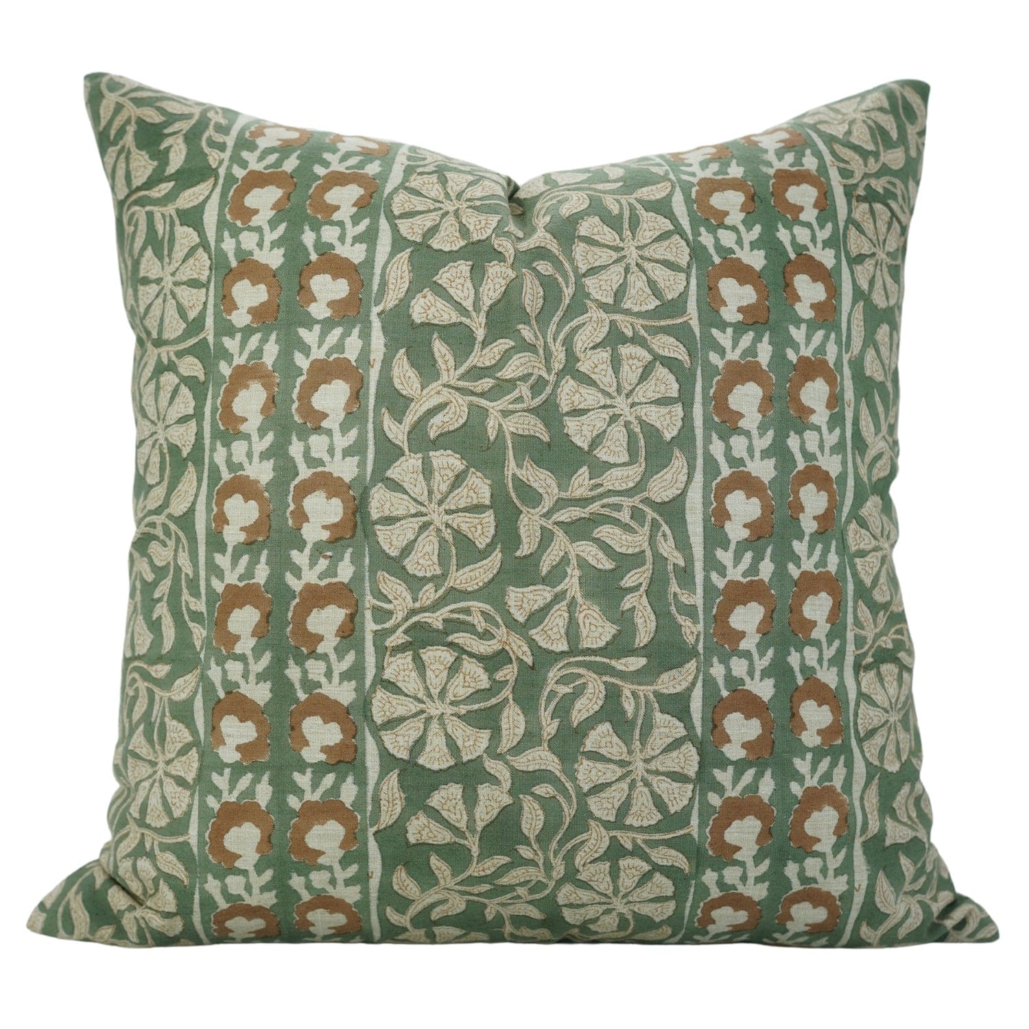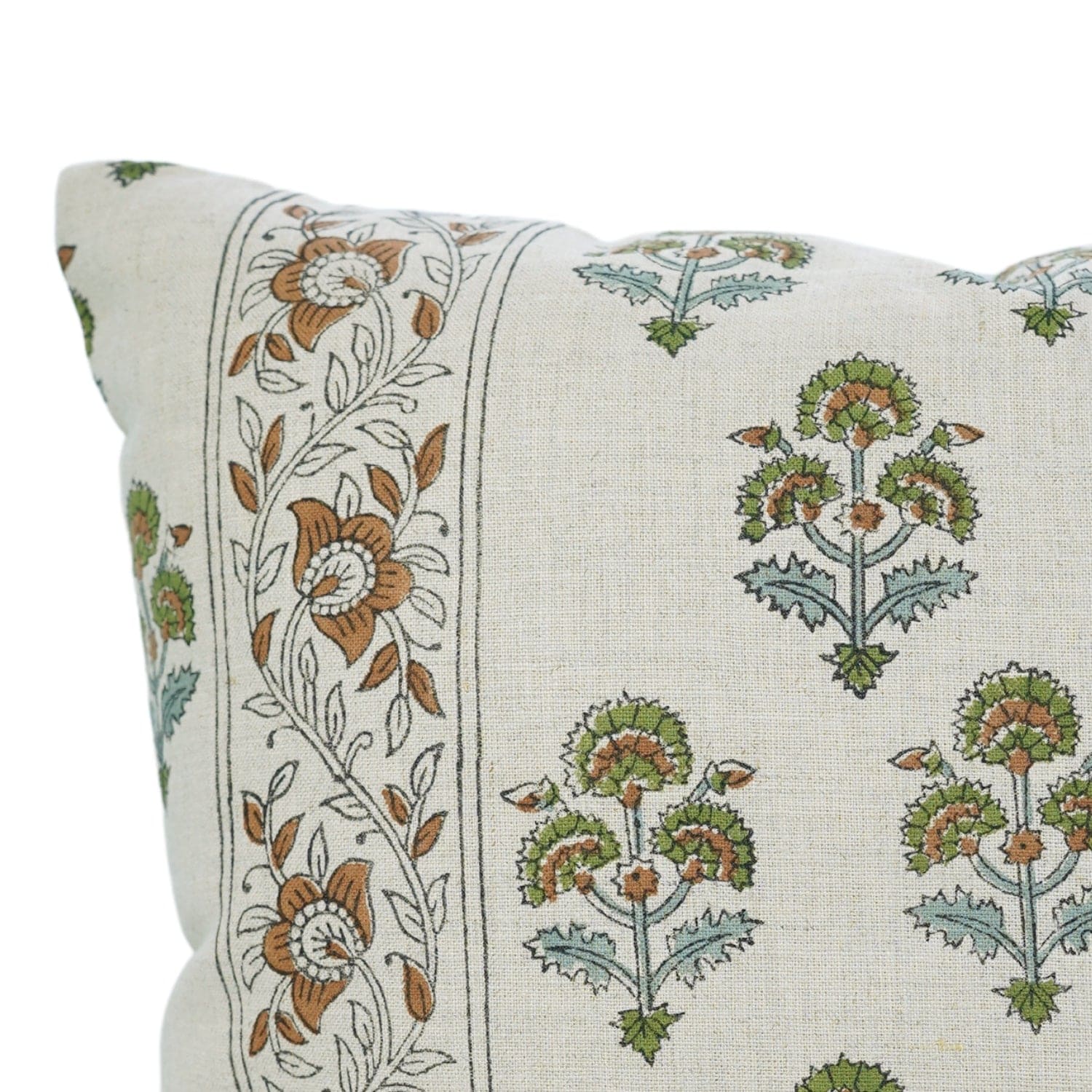 Hand Block Printed Cushion Case with Brown,Gray and Green Leaf Floral Design