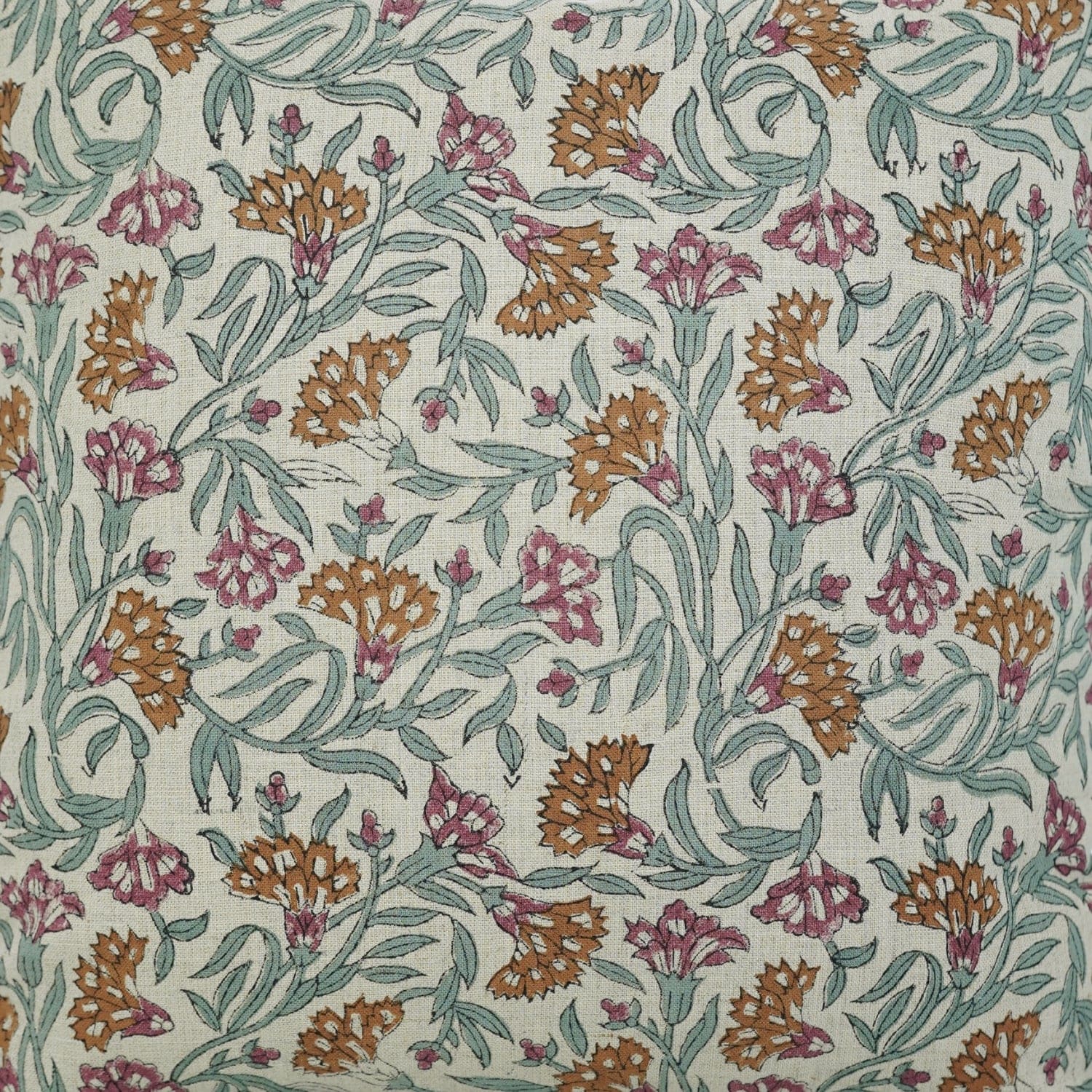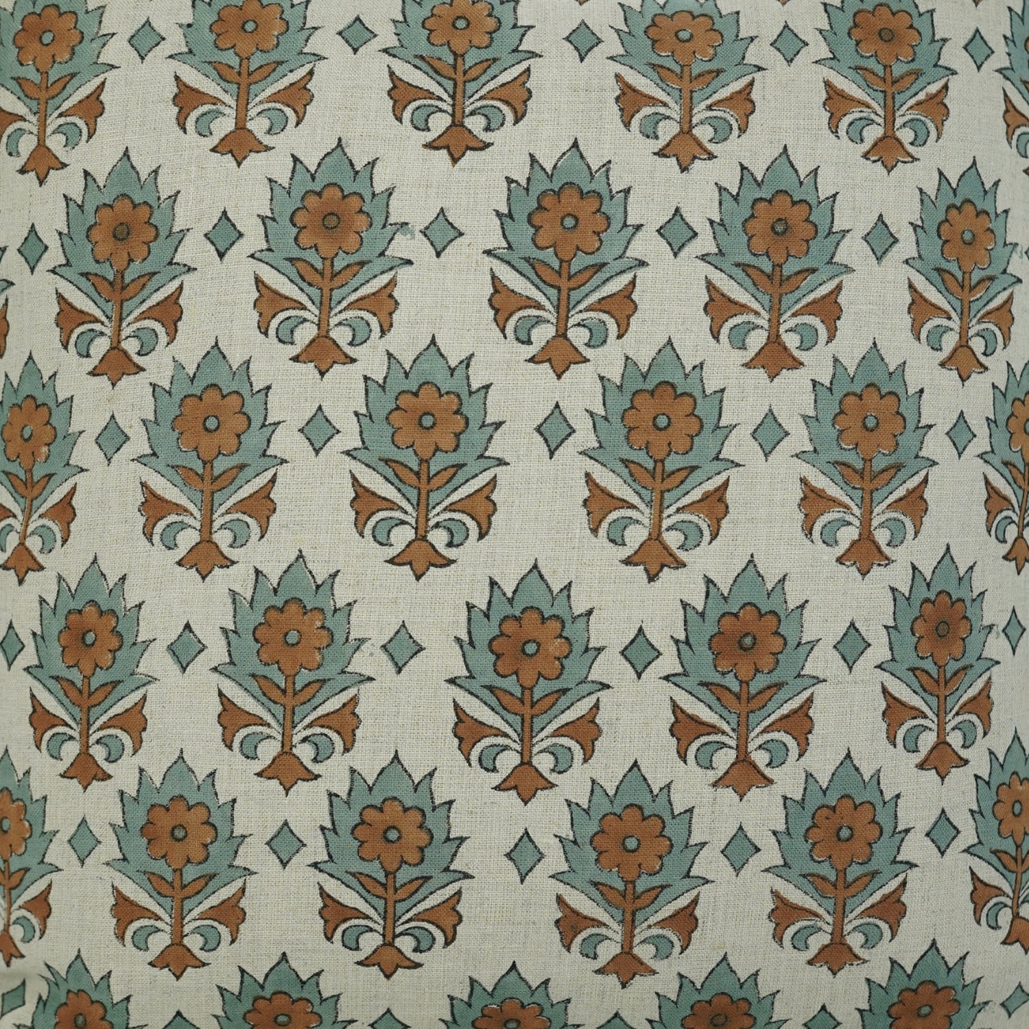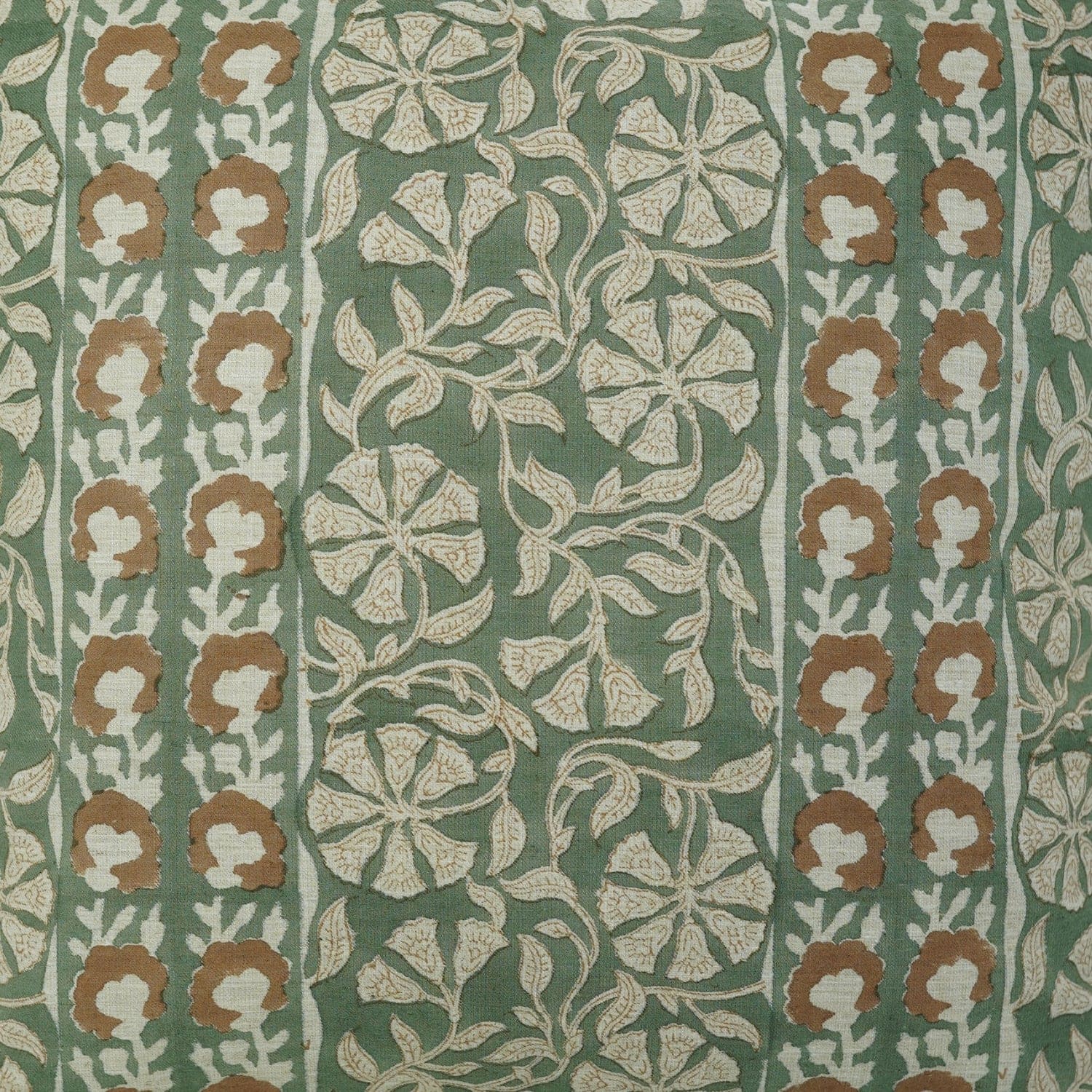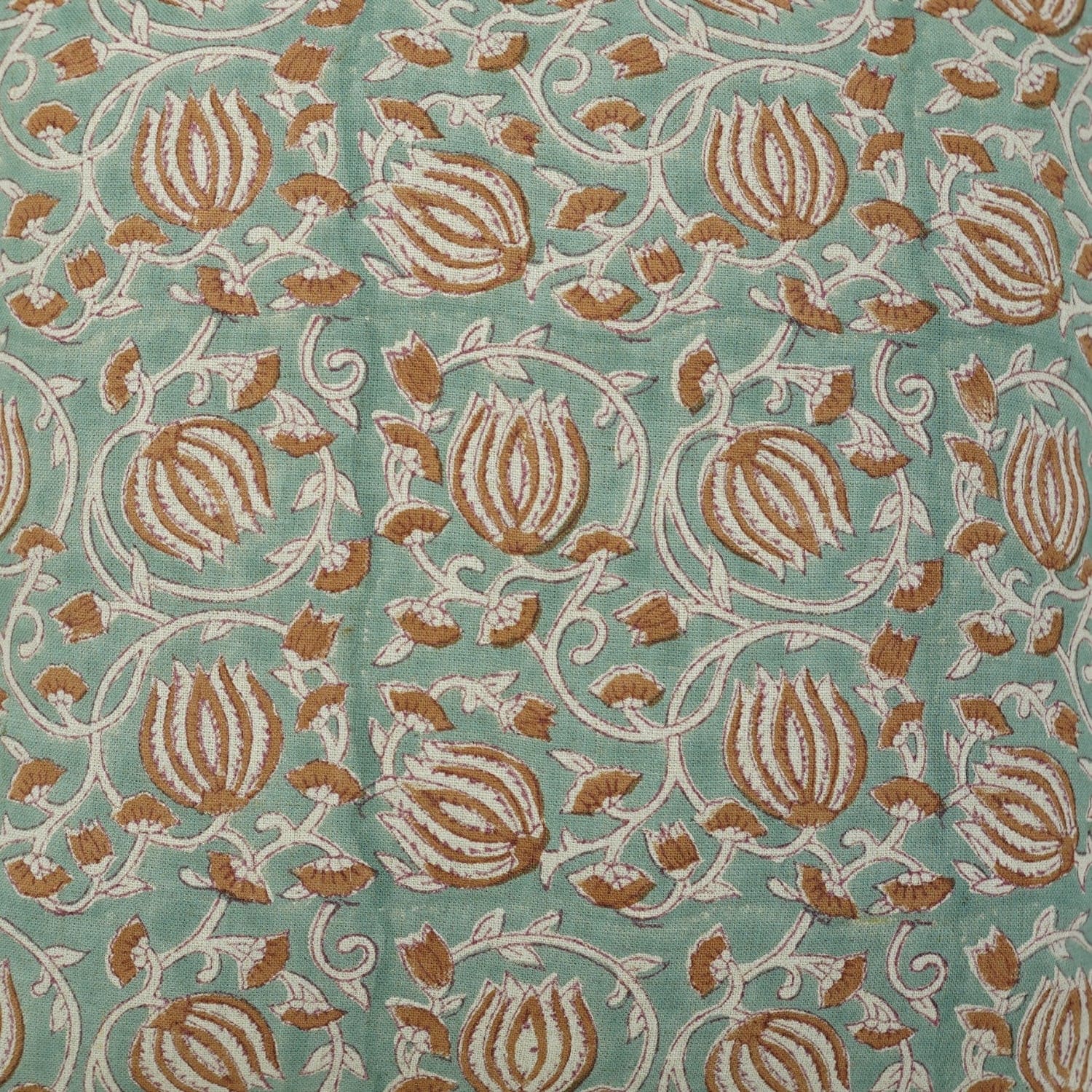 Hand Block Printed Cushion Case with Brown,Gray and Green Leaf Floral Design