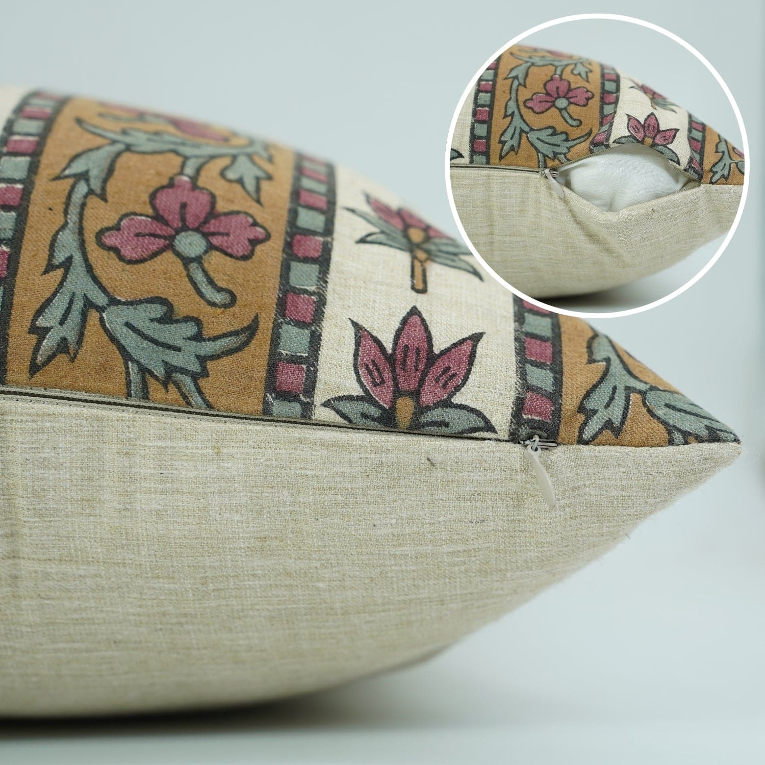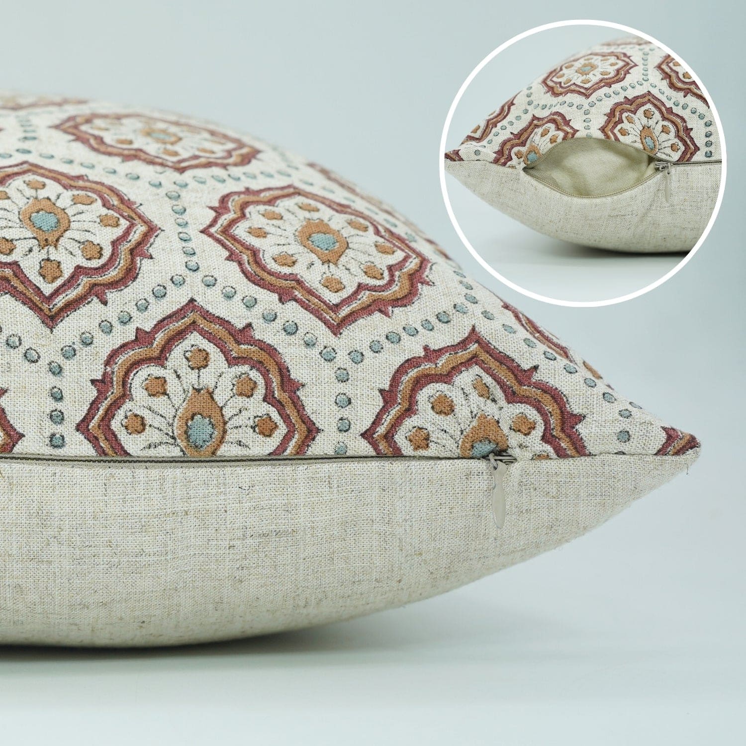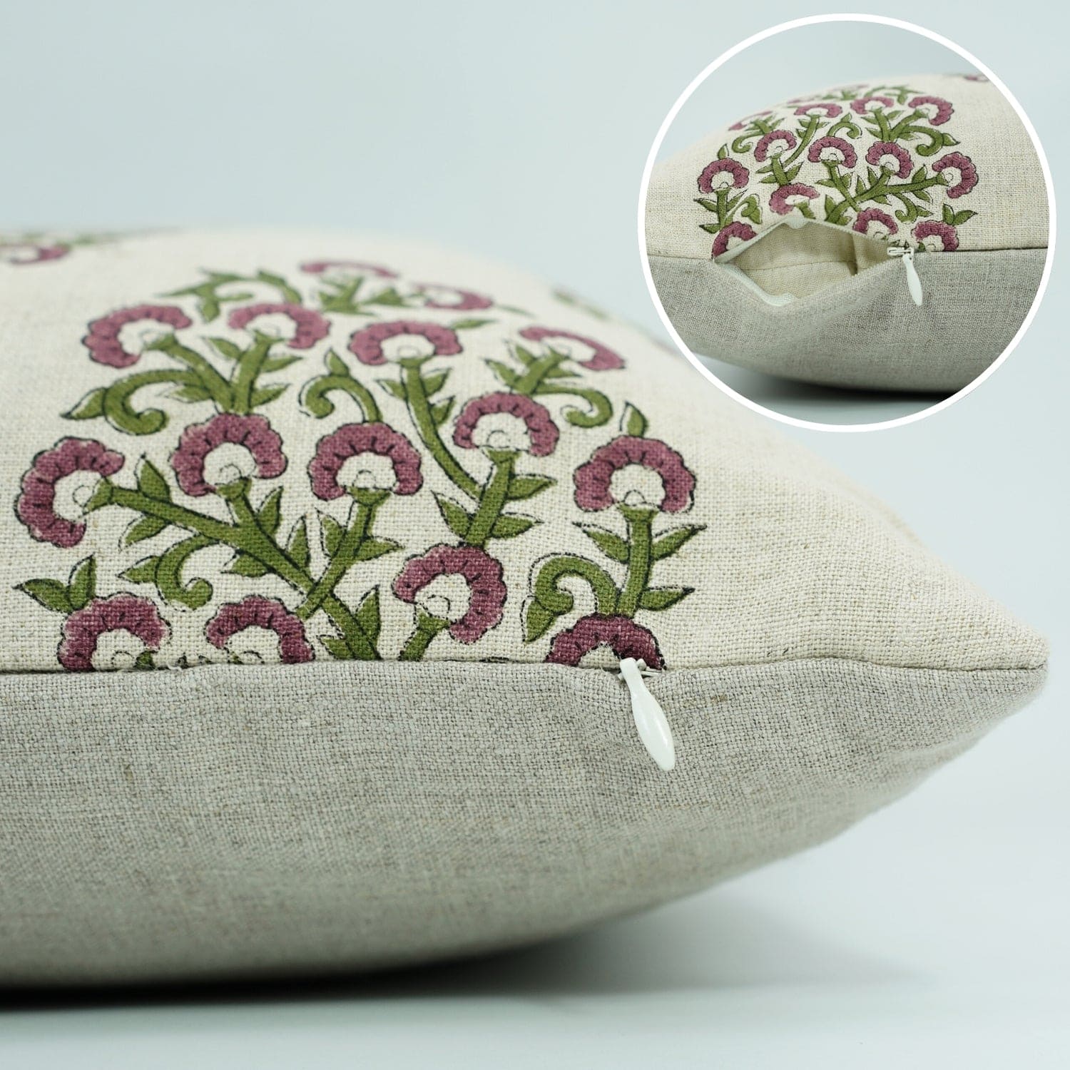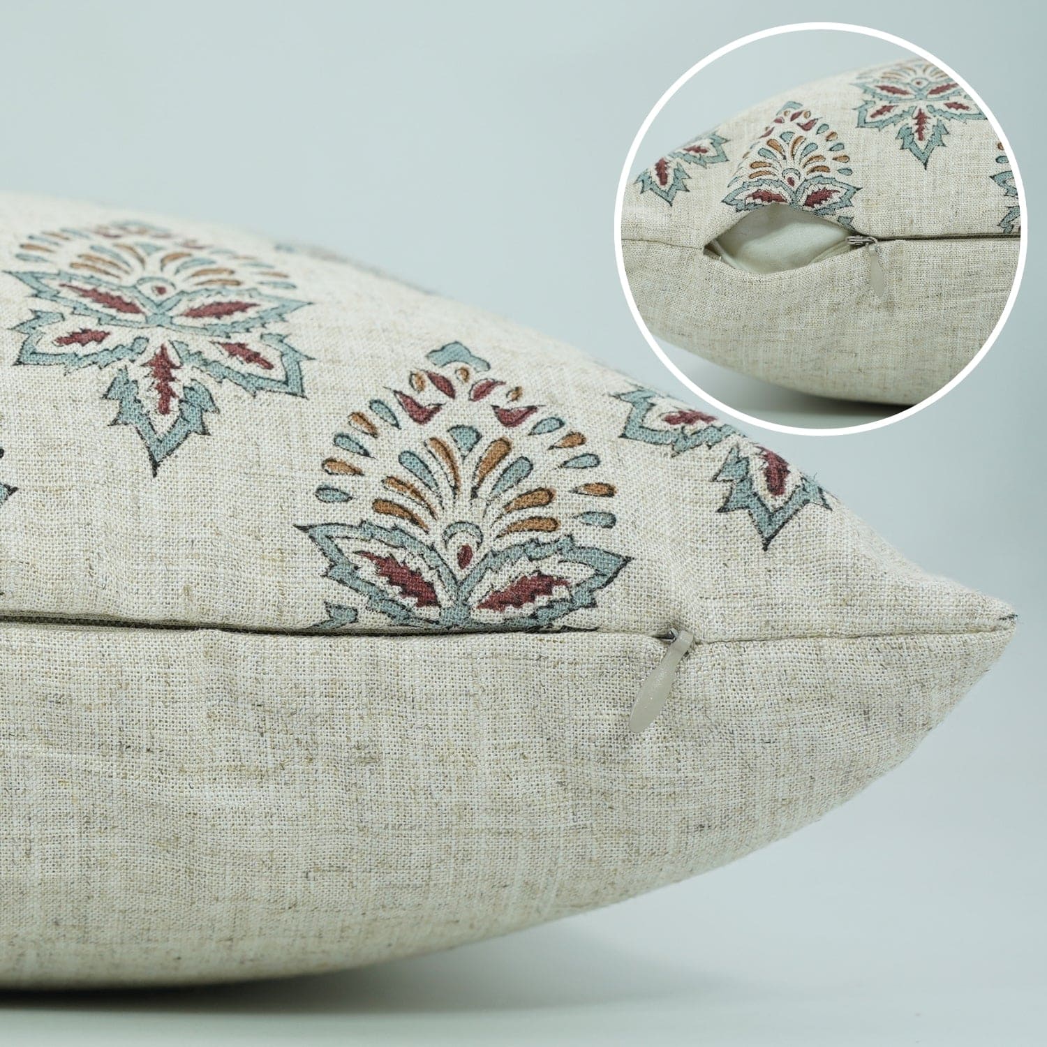Living Room Linen Blend Pillow Cover - Hand Block Printed Design
