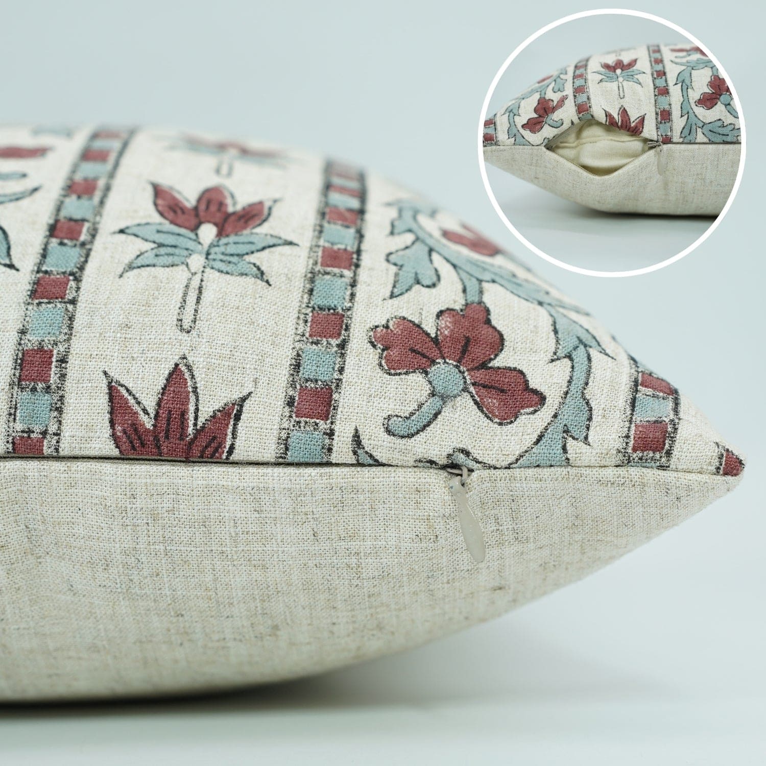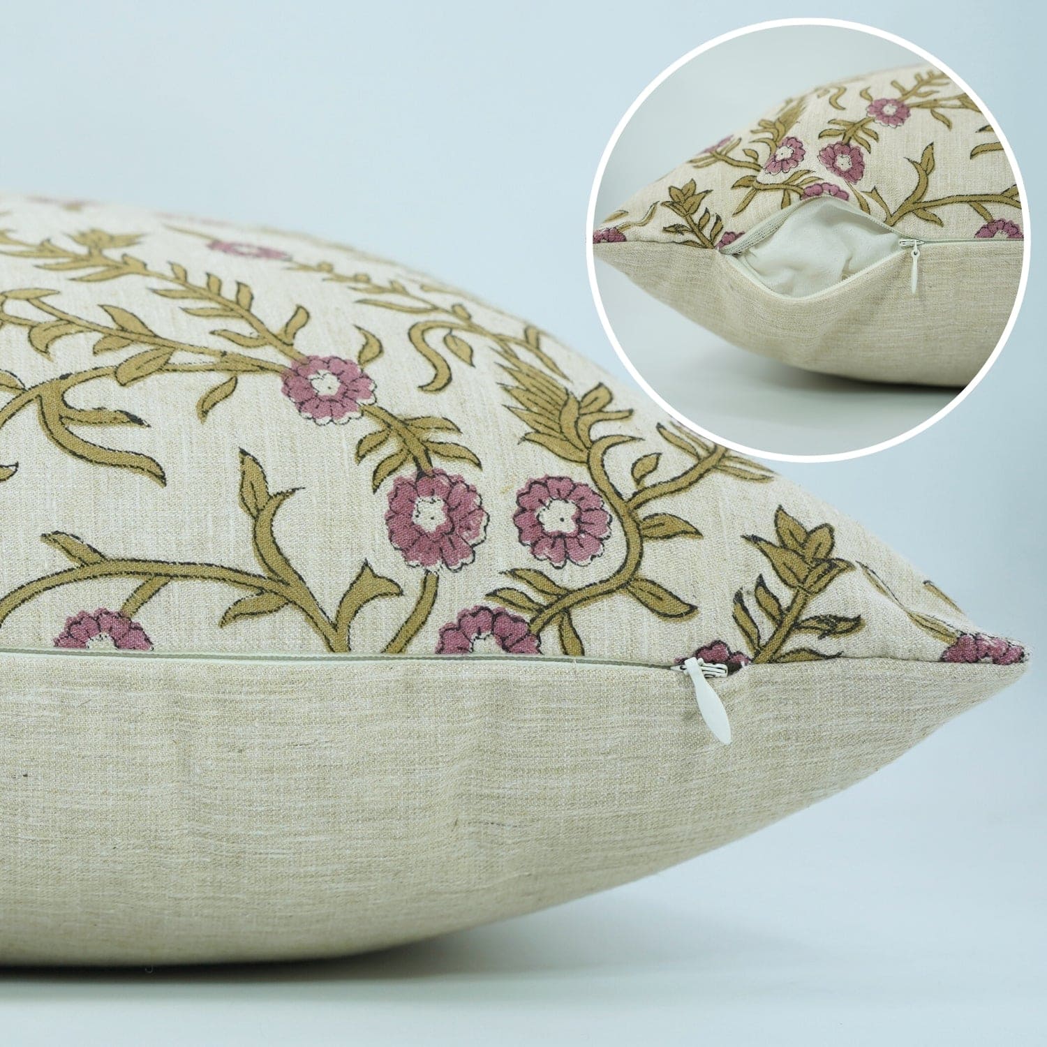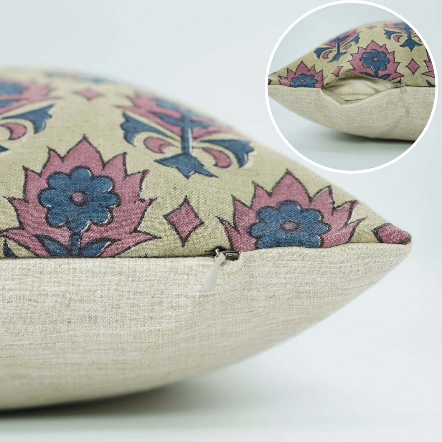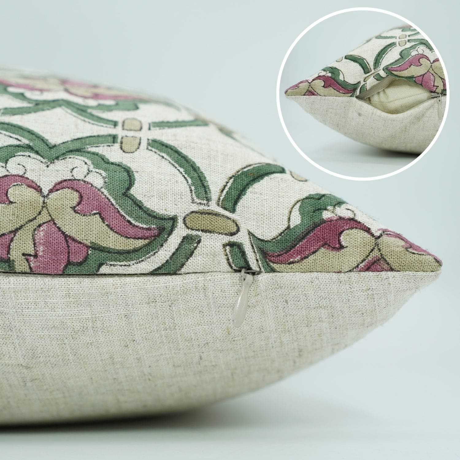Living Room Linen Blend Pillow Cover - Hand Block Printed Design