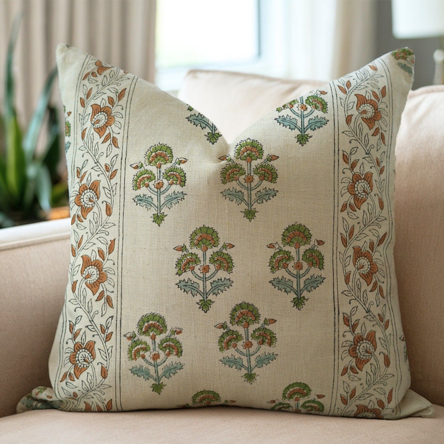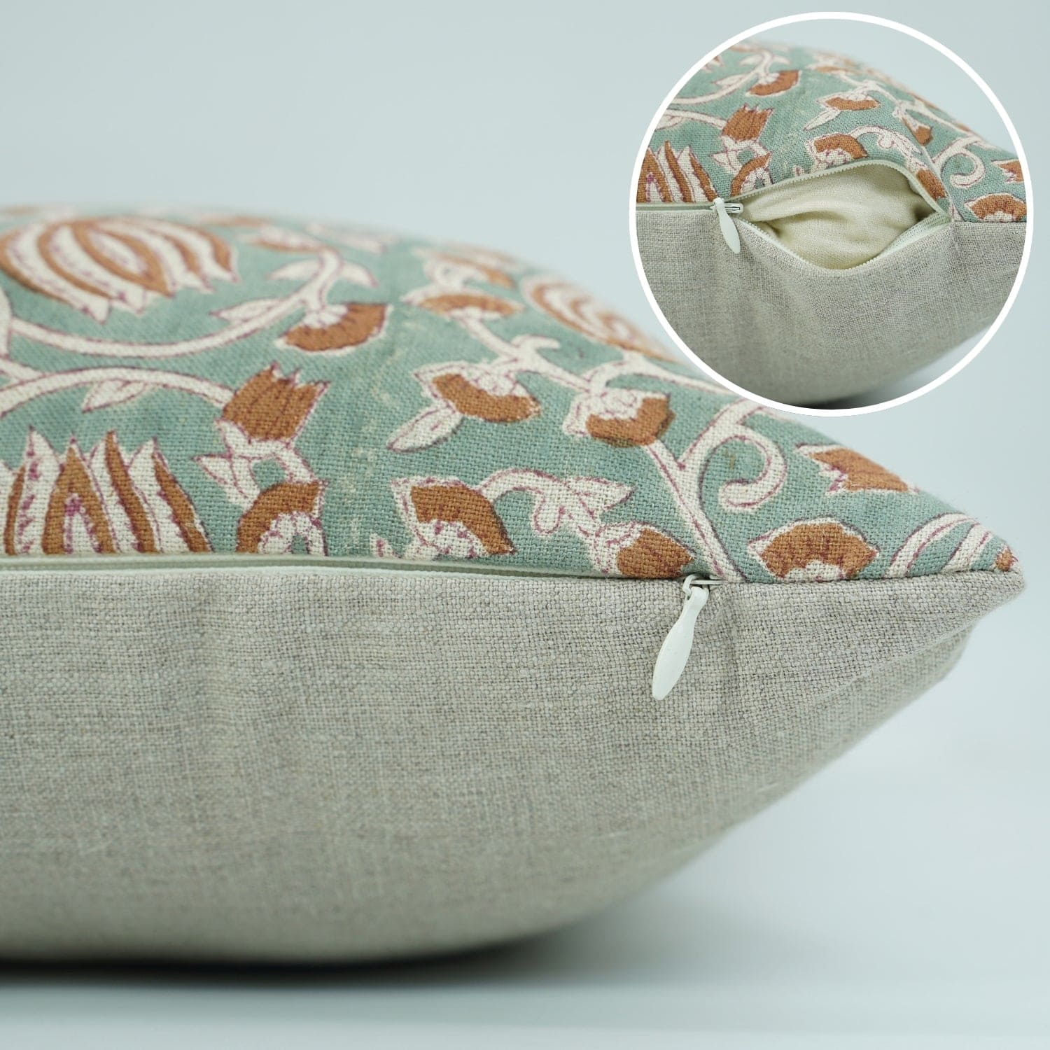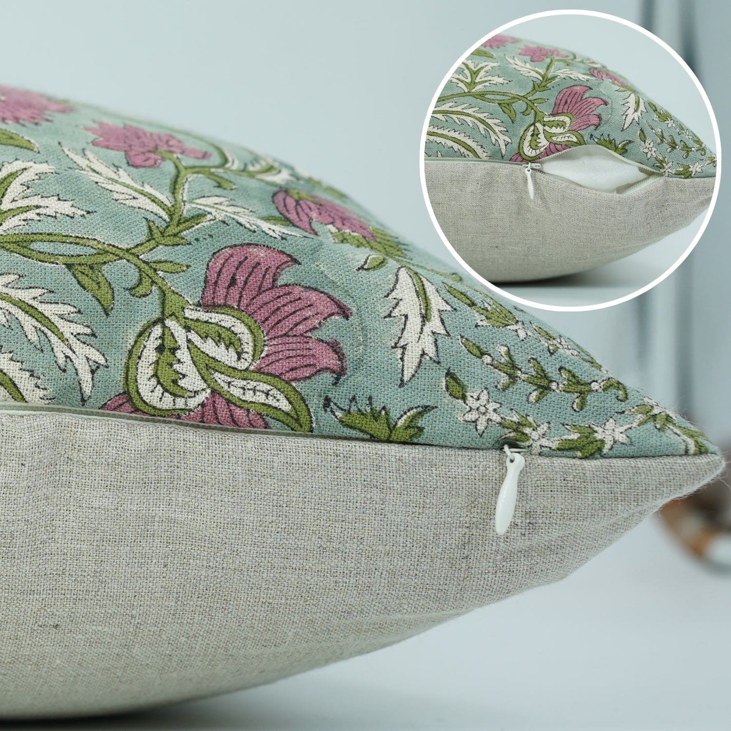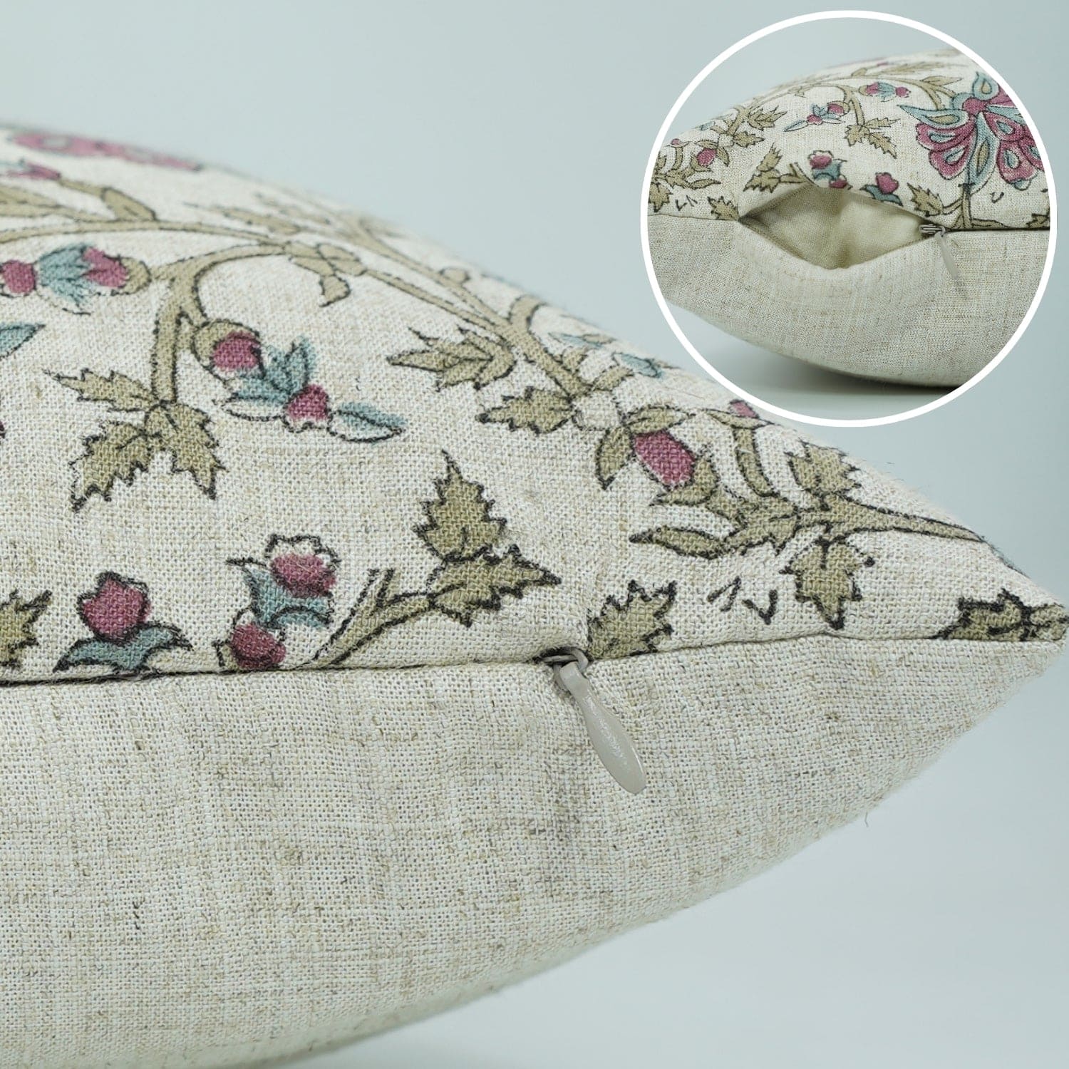 Living Room Linen Blend Pillow Cover - Hand Block Printed Design