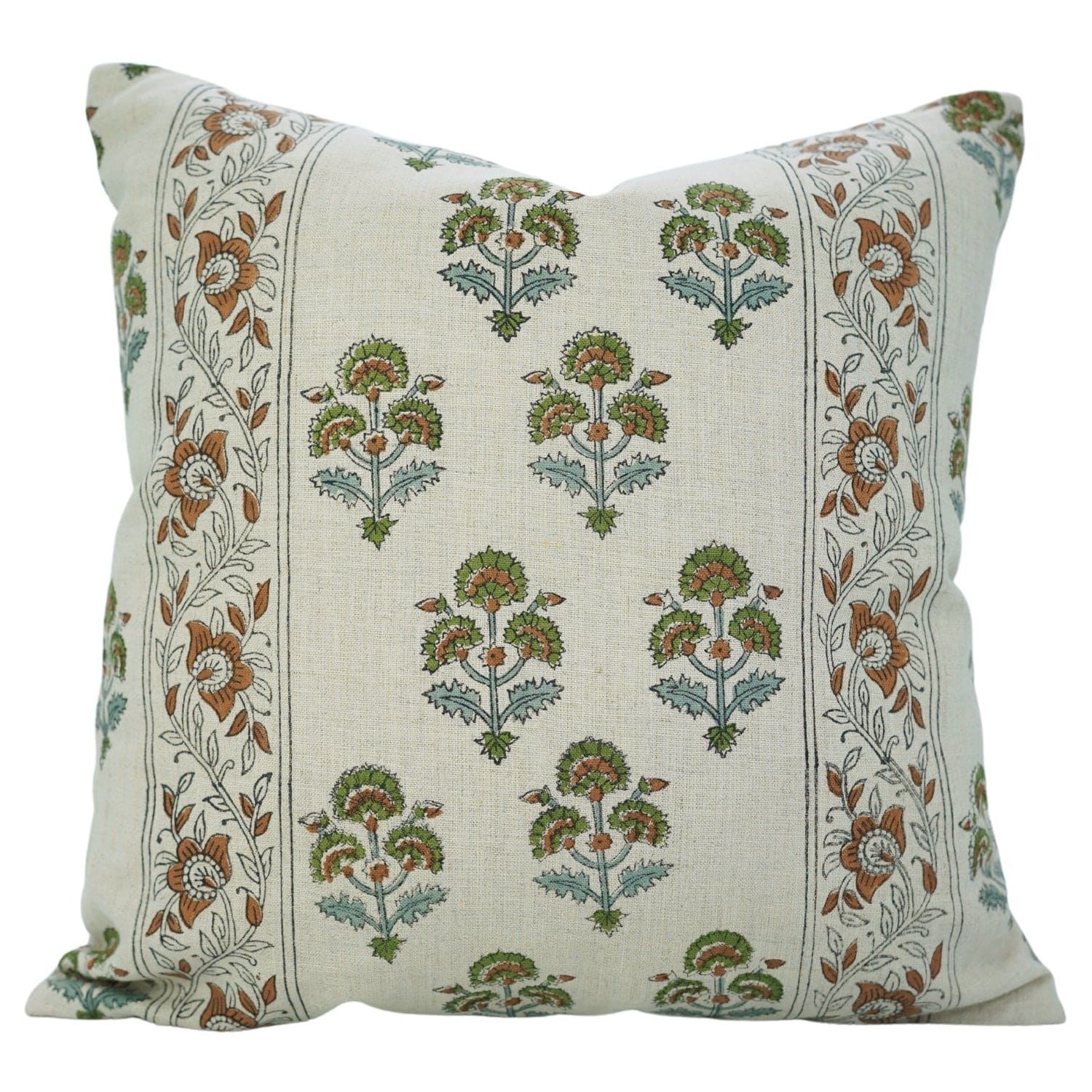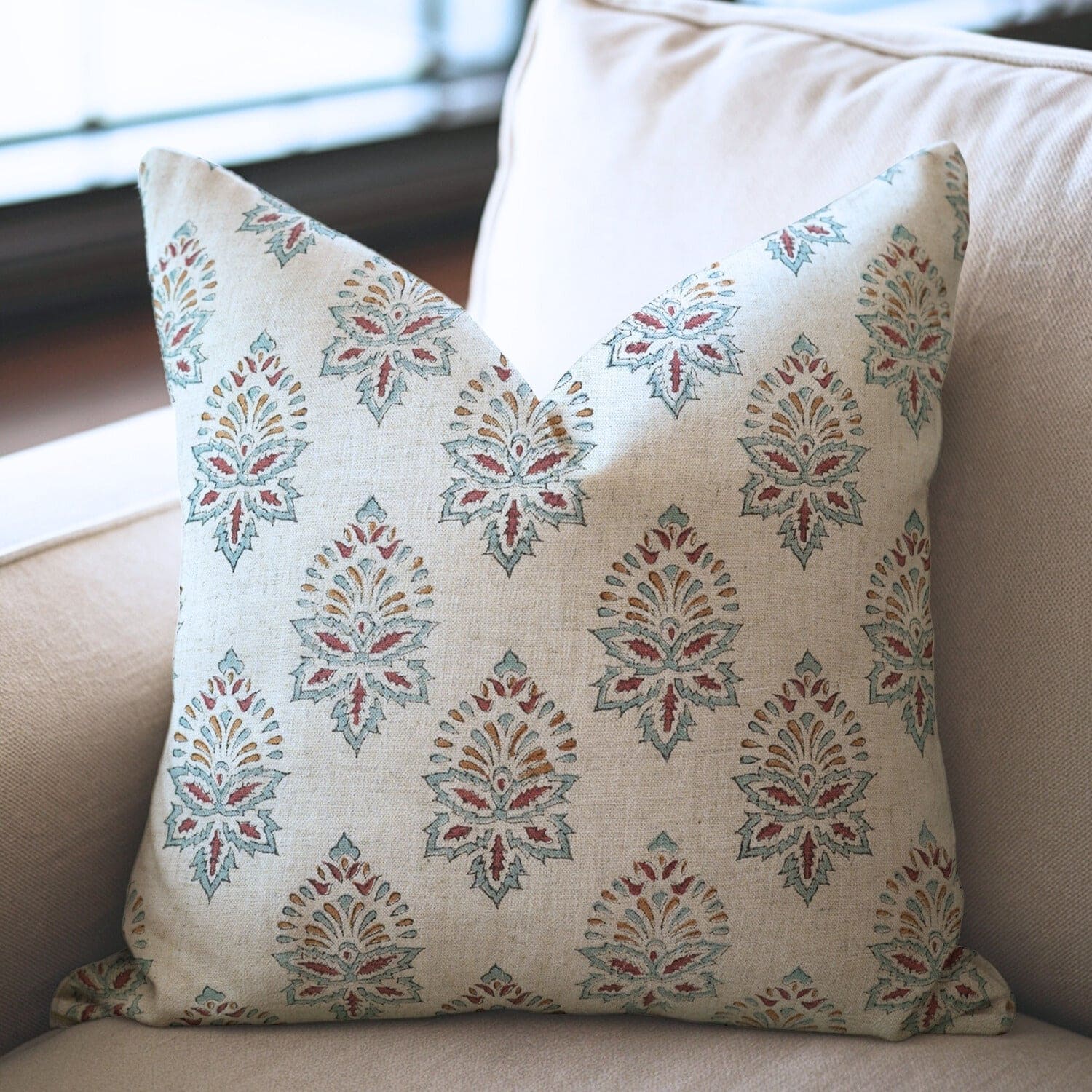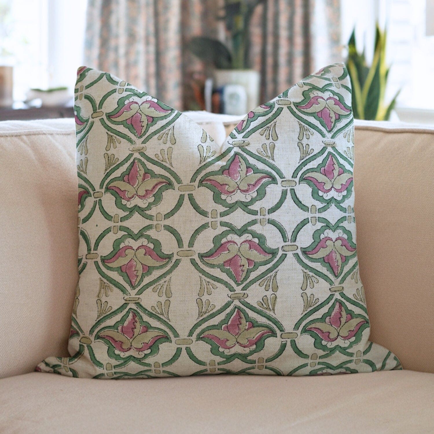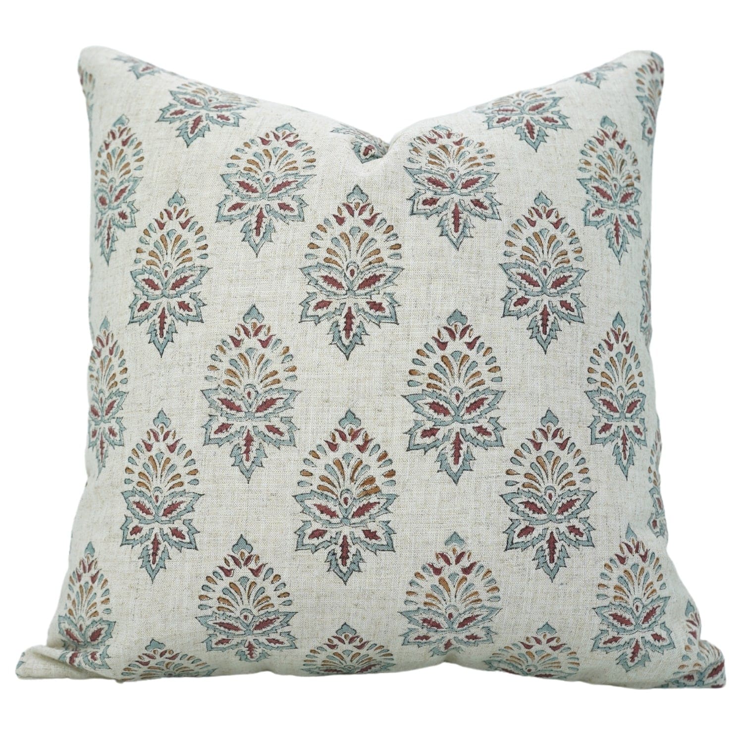 Living Room Linen Blend Pillow Cover - Hand Block Printed Design