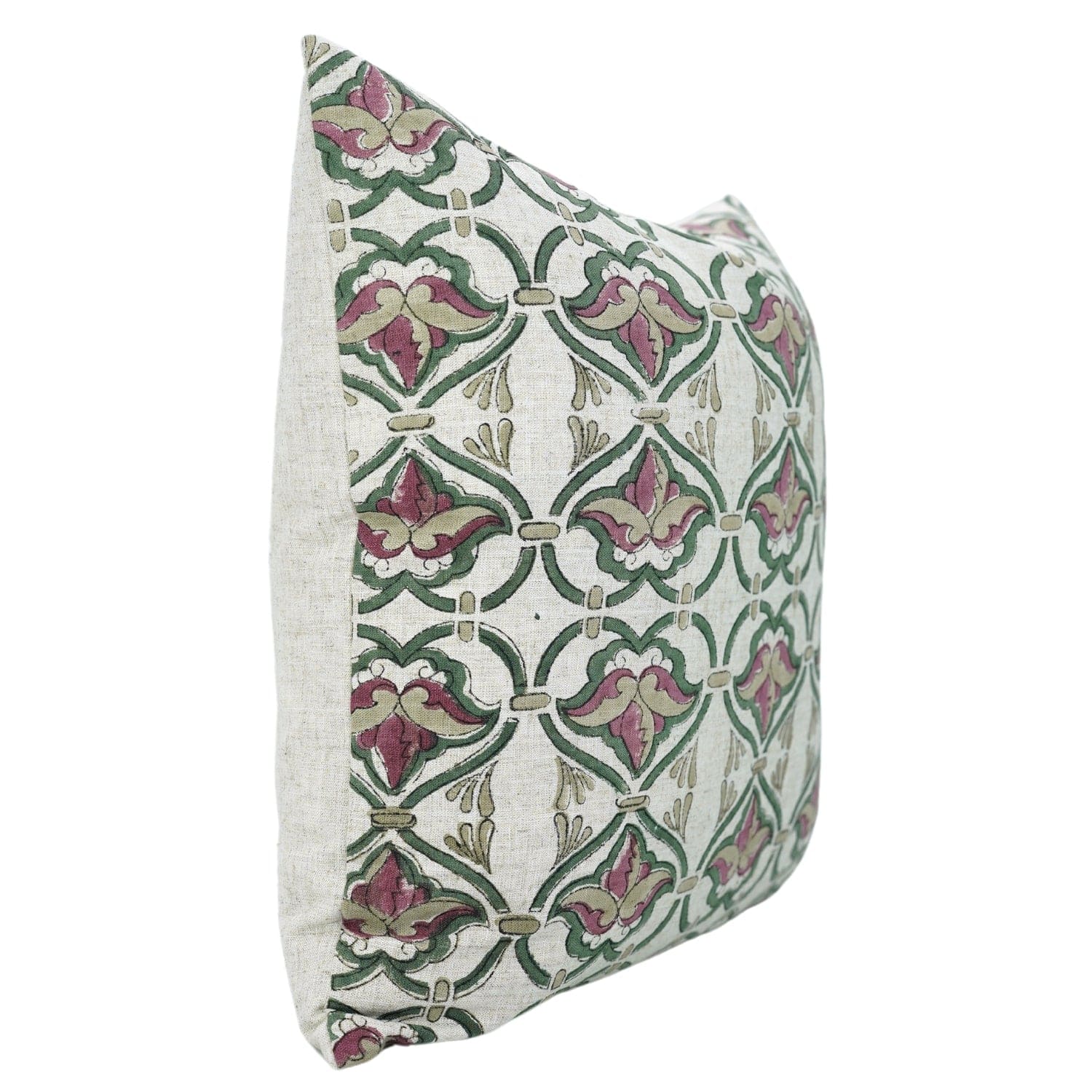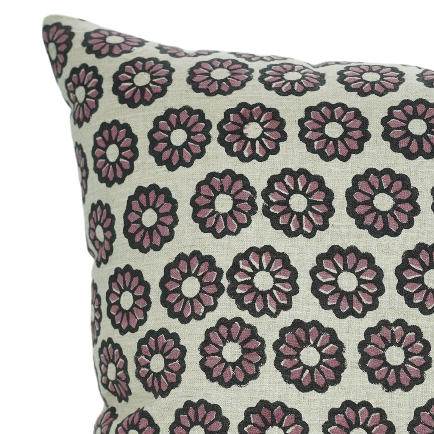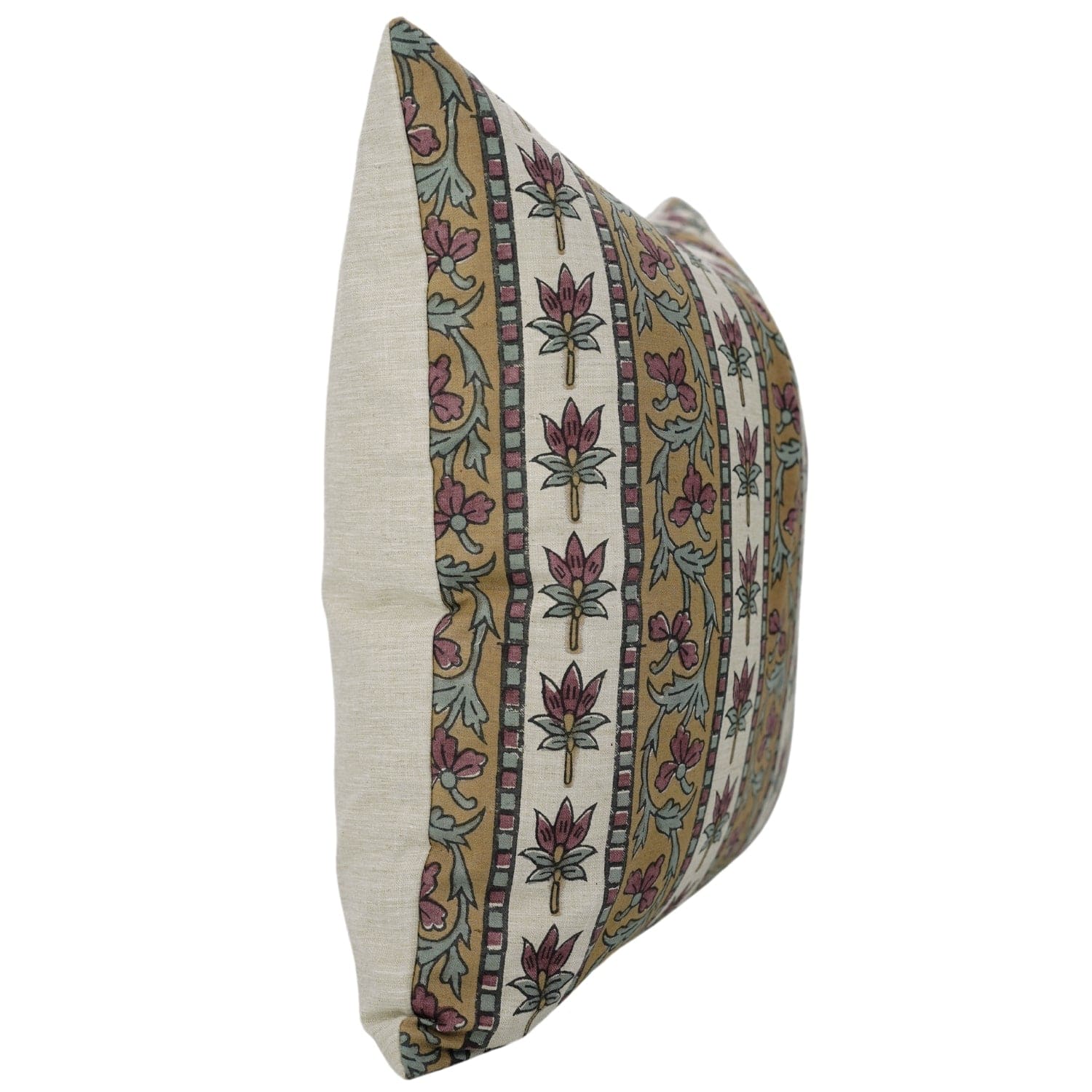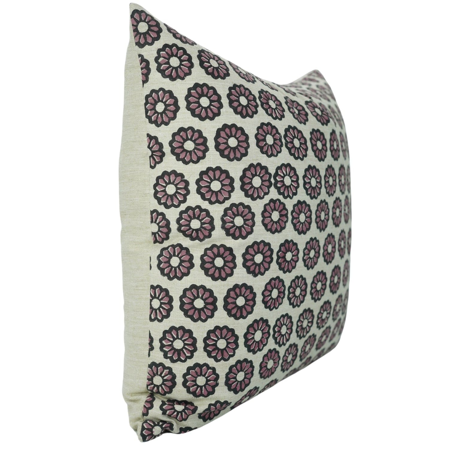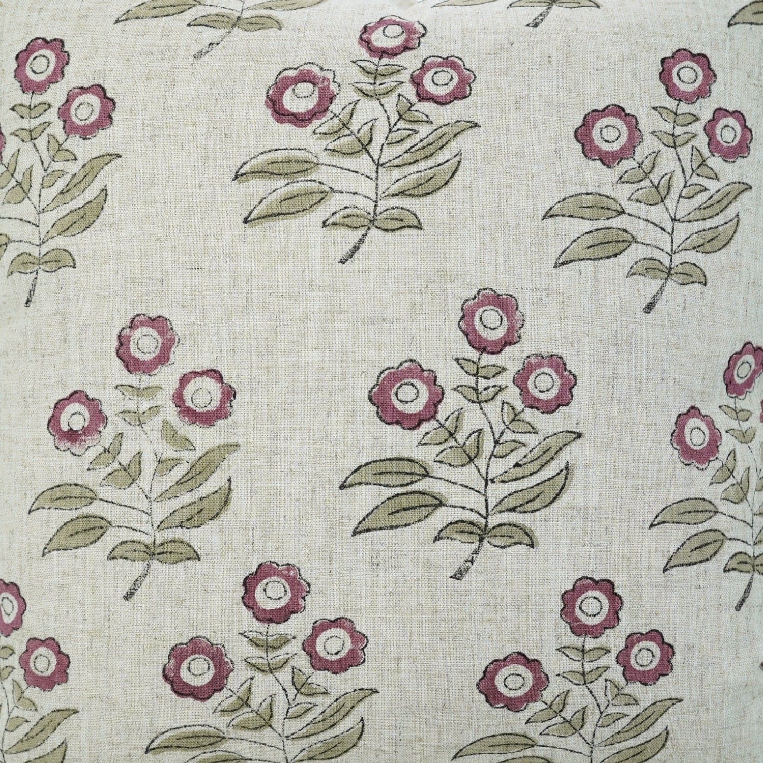 Handblock Printed Throw Cushion Case – Pink, Brown & Gray Linen Blend