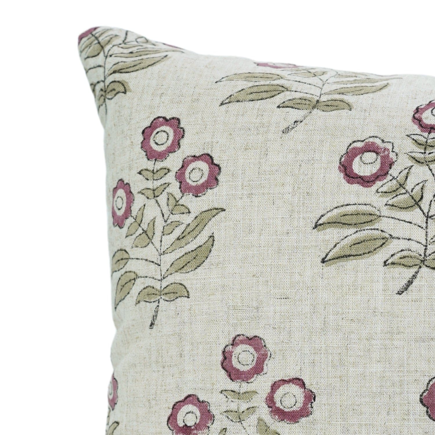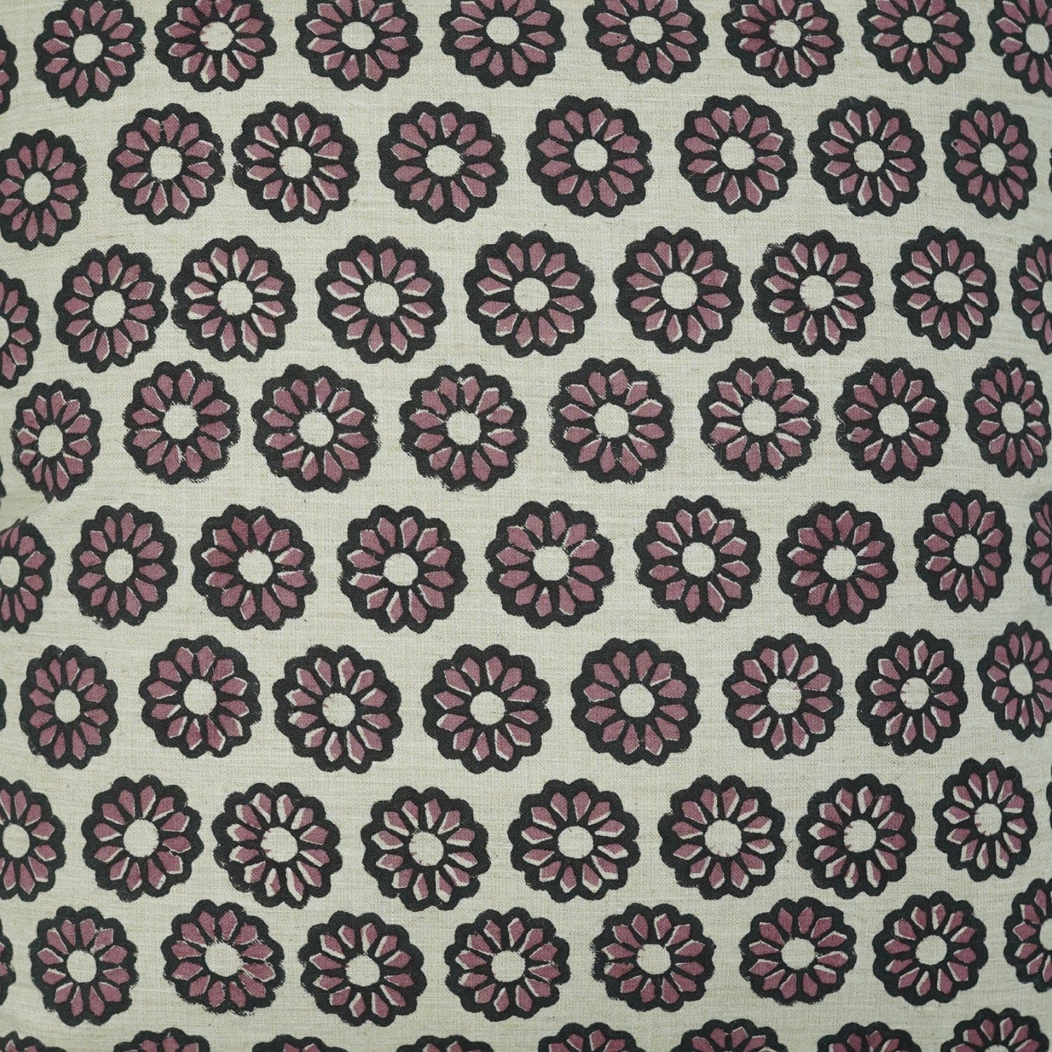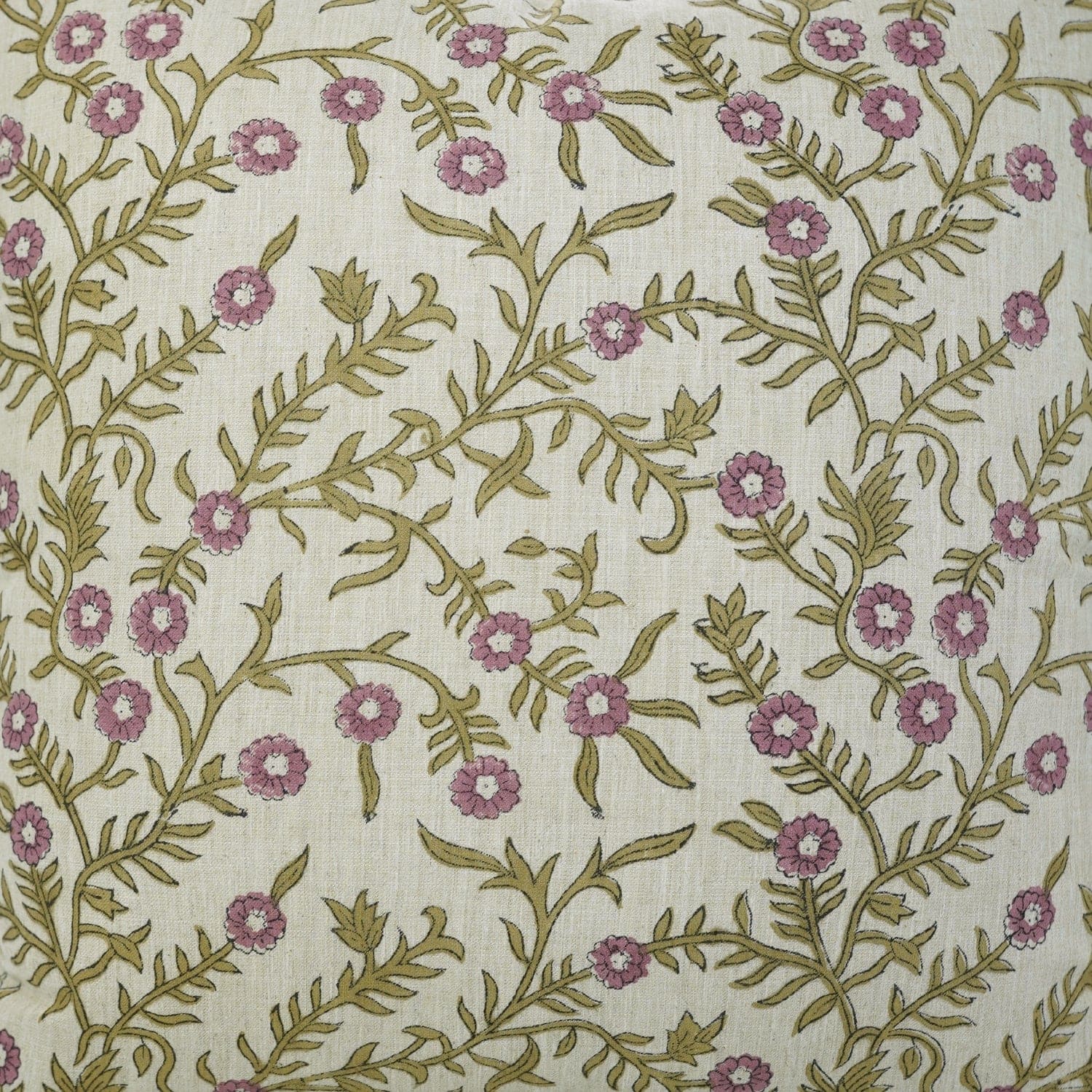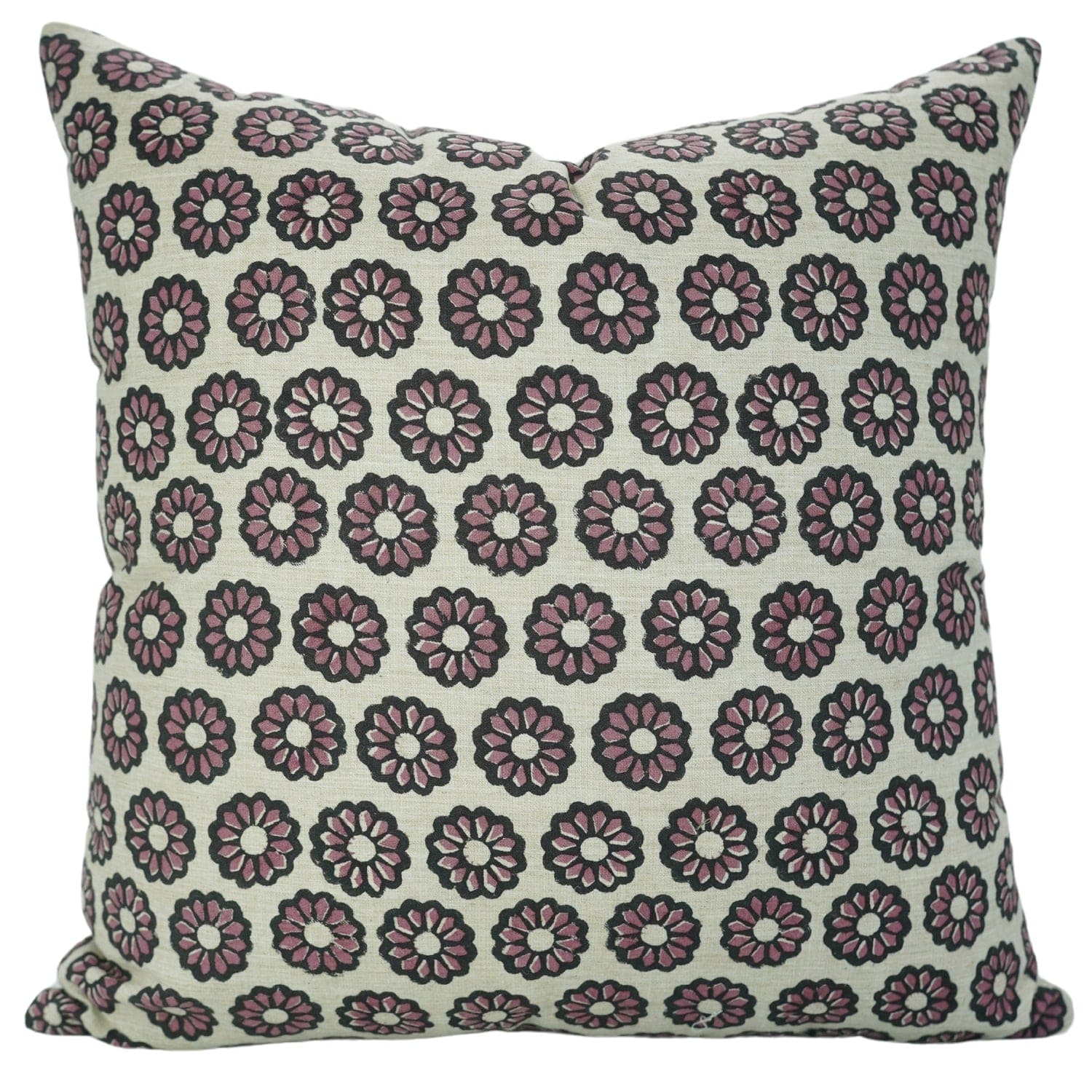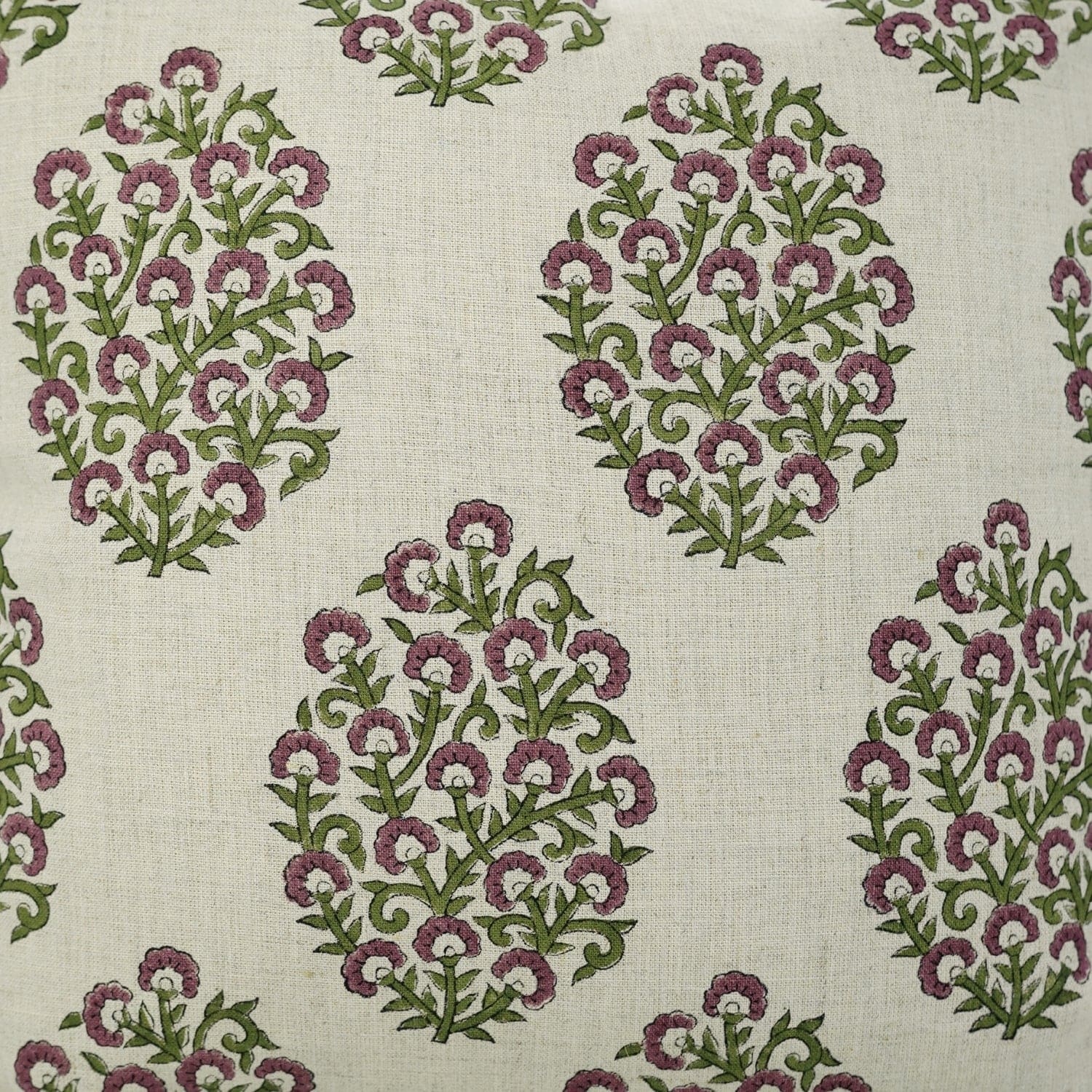 Handblock Printed Throw Cushion Case – Pink, Brown & Gray Linen Blend