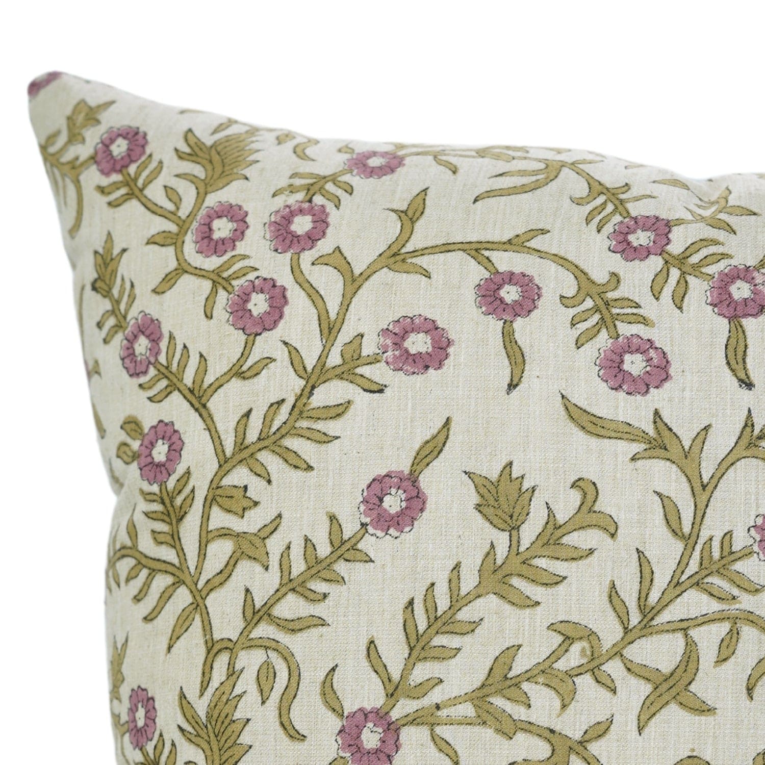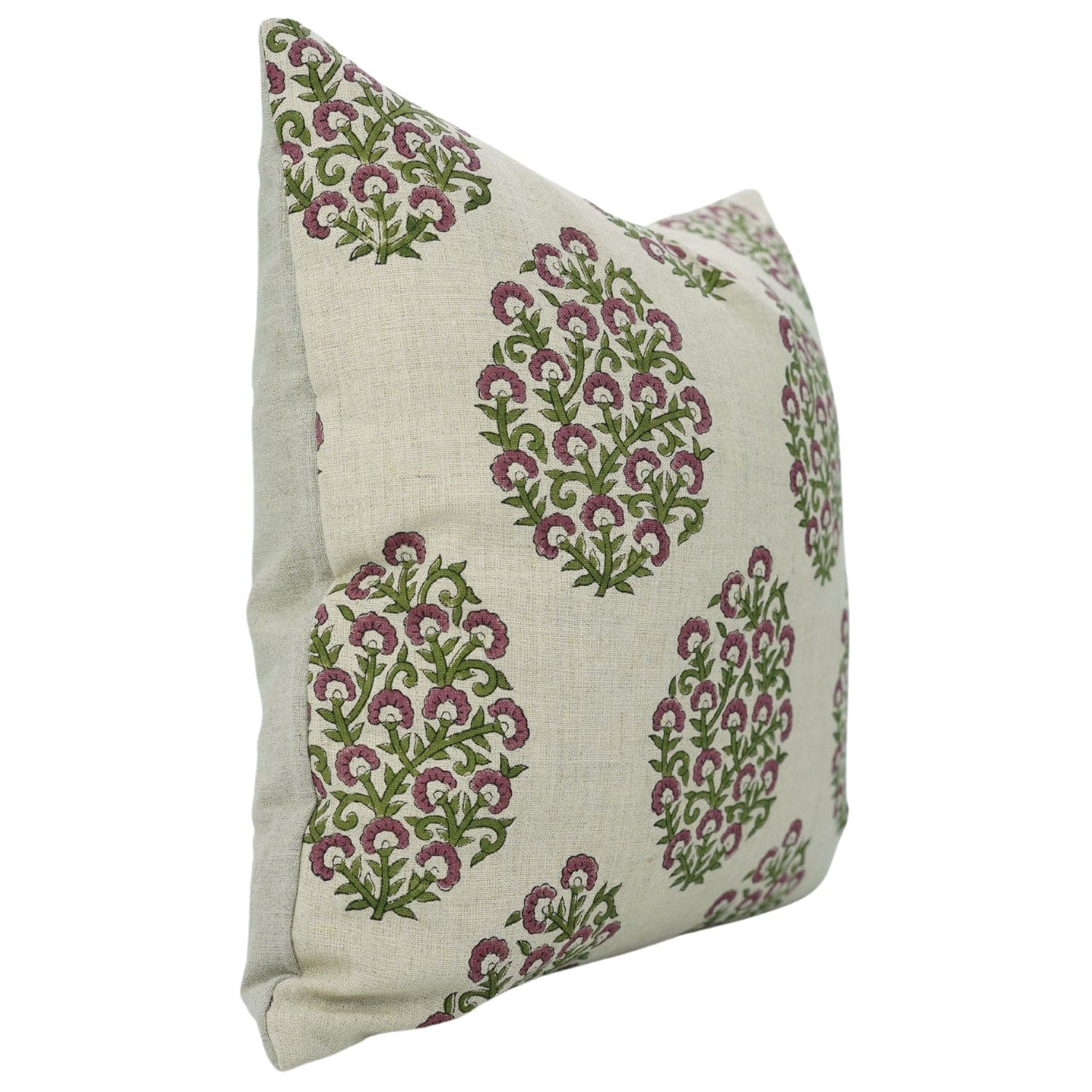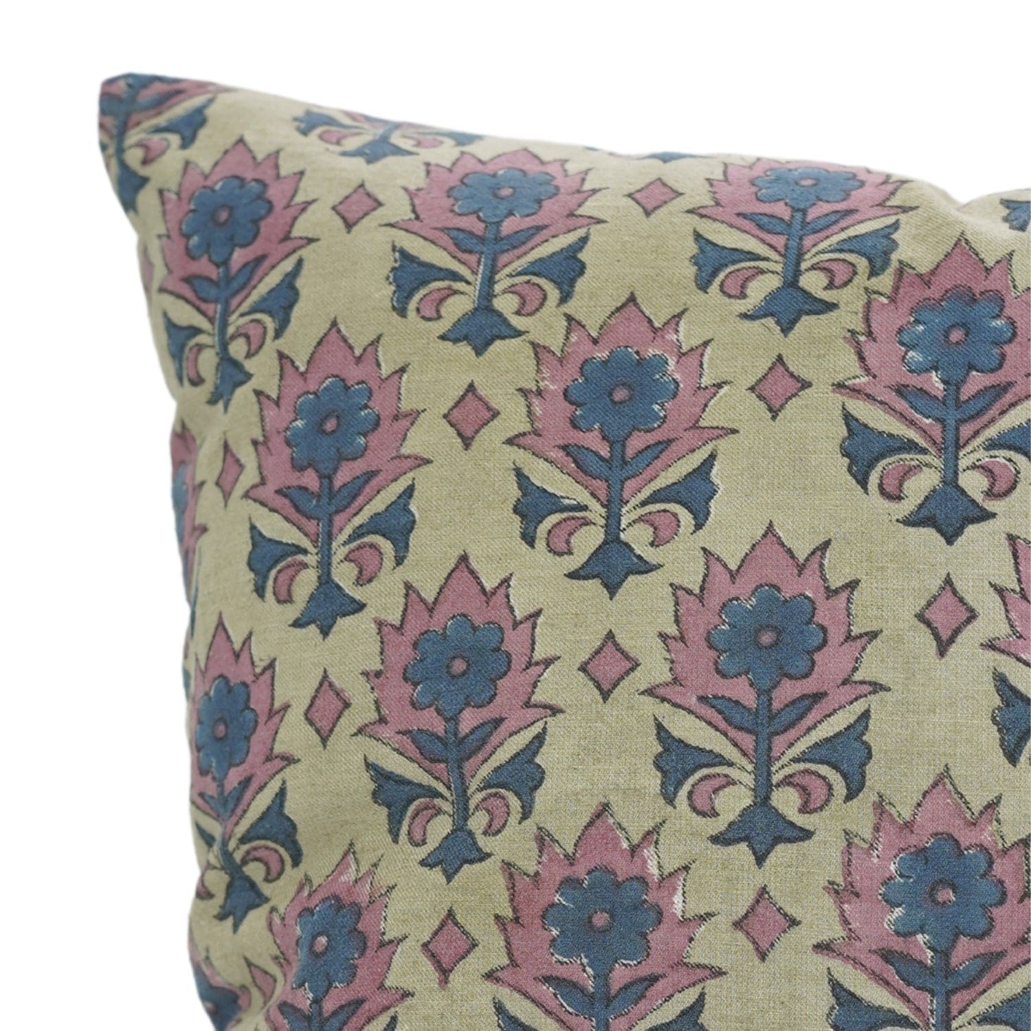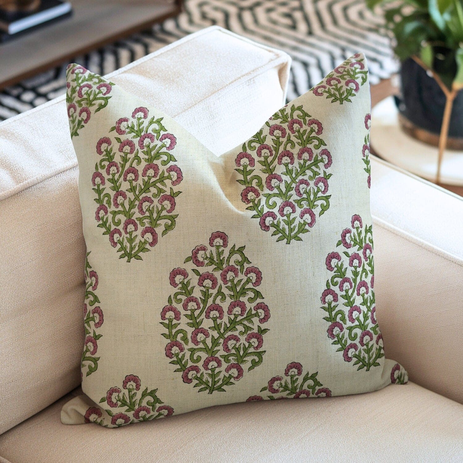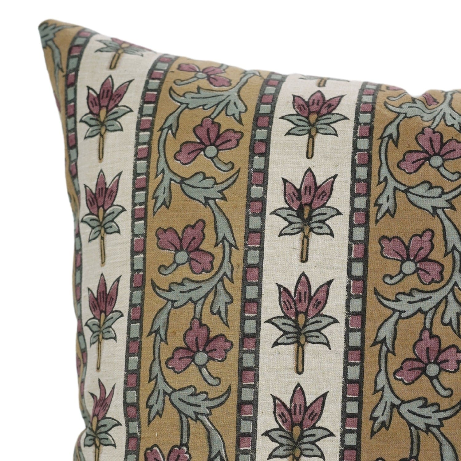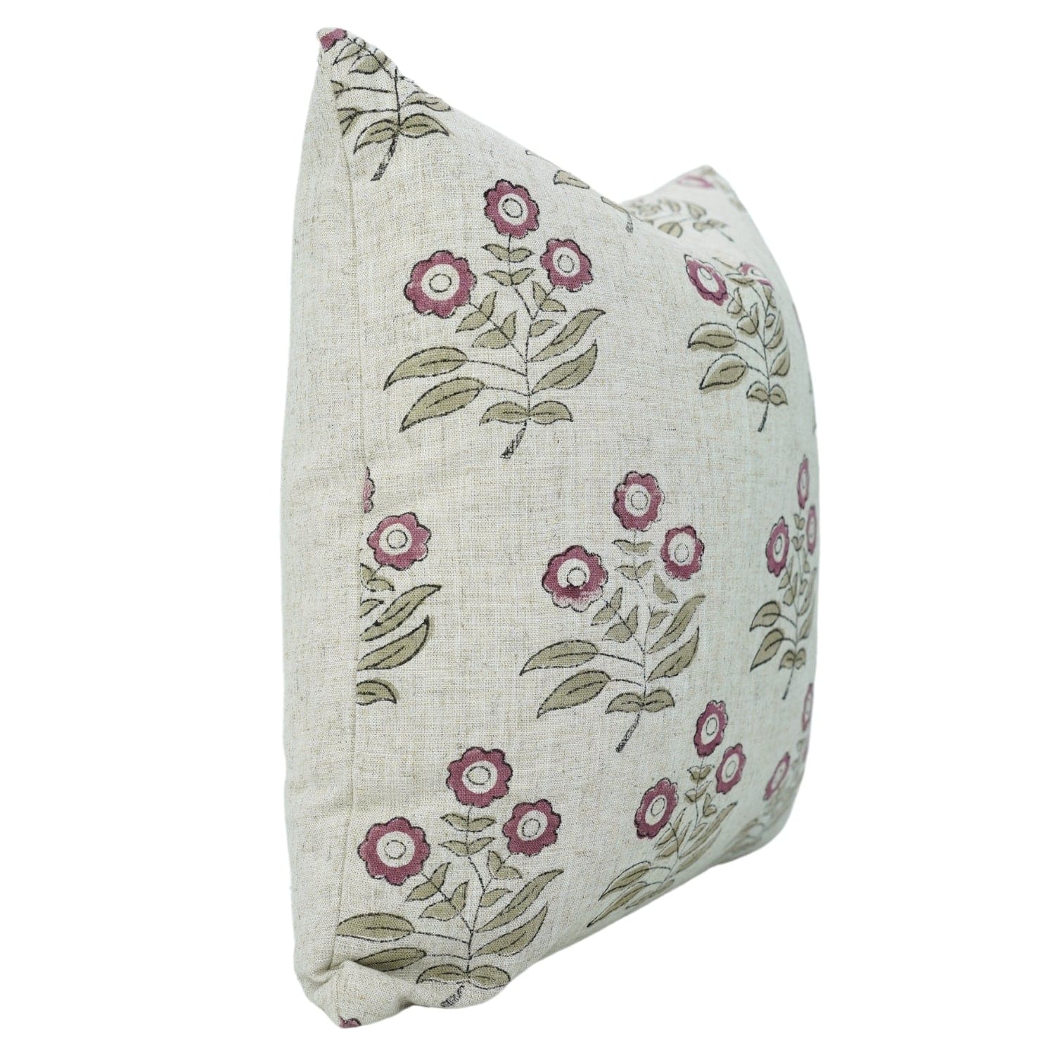 Handblock Printed Throw Cushion Case – Pink, Brown & Gray Linen Blend