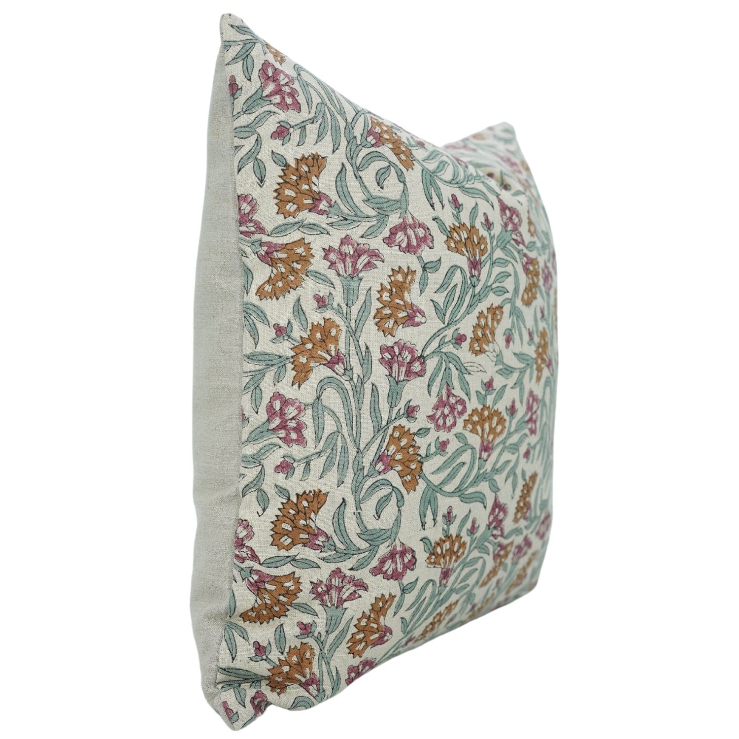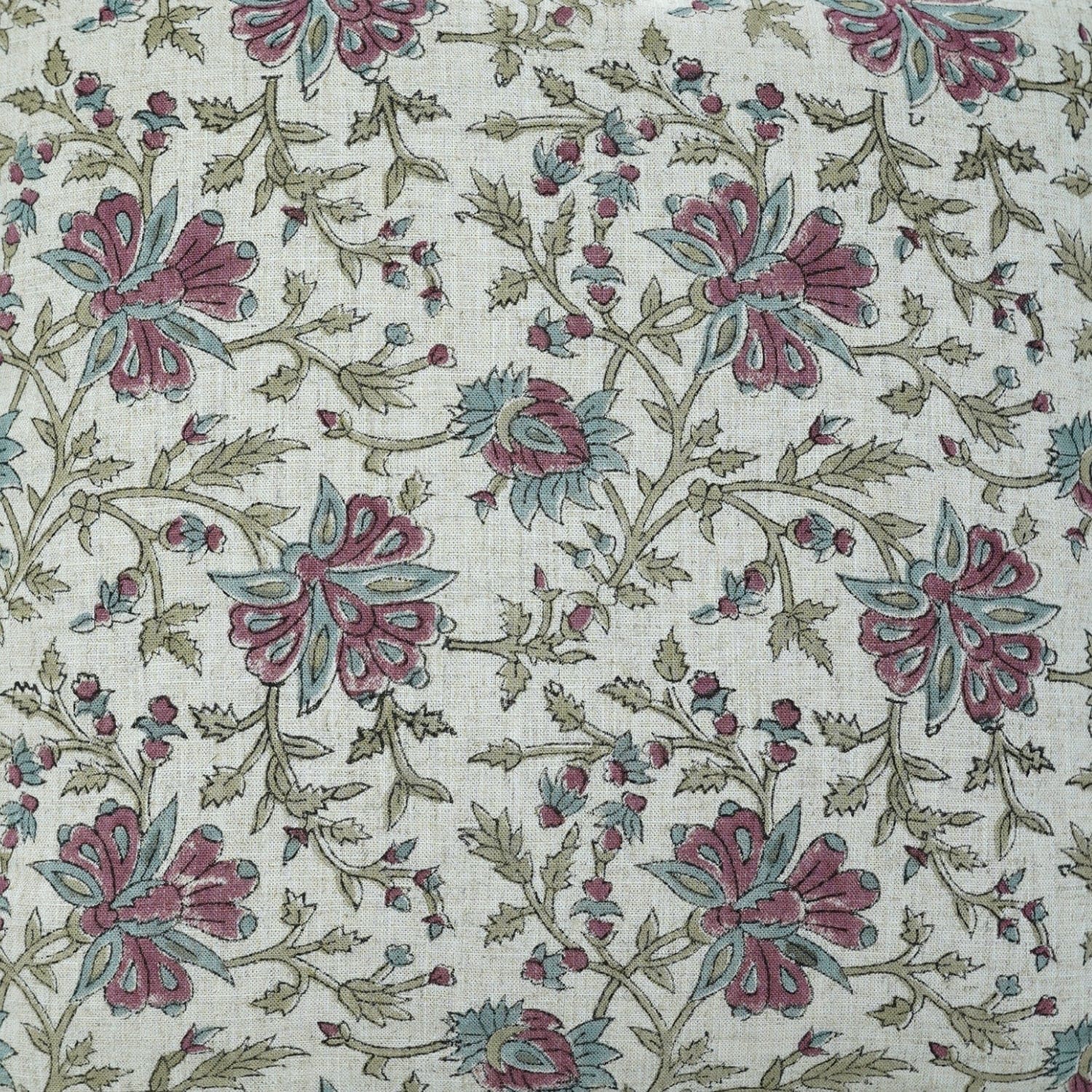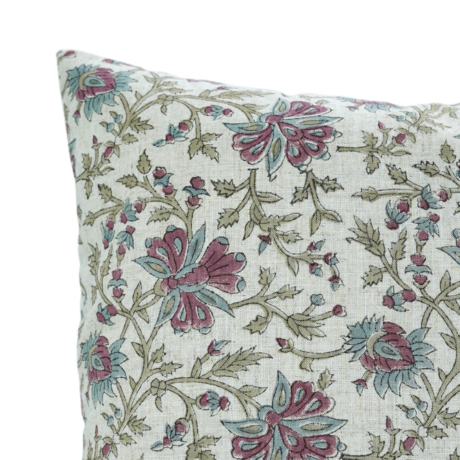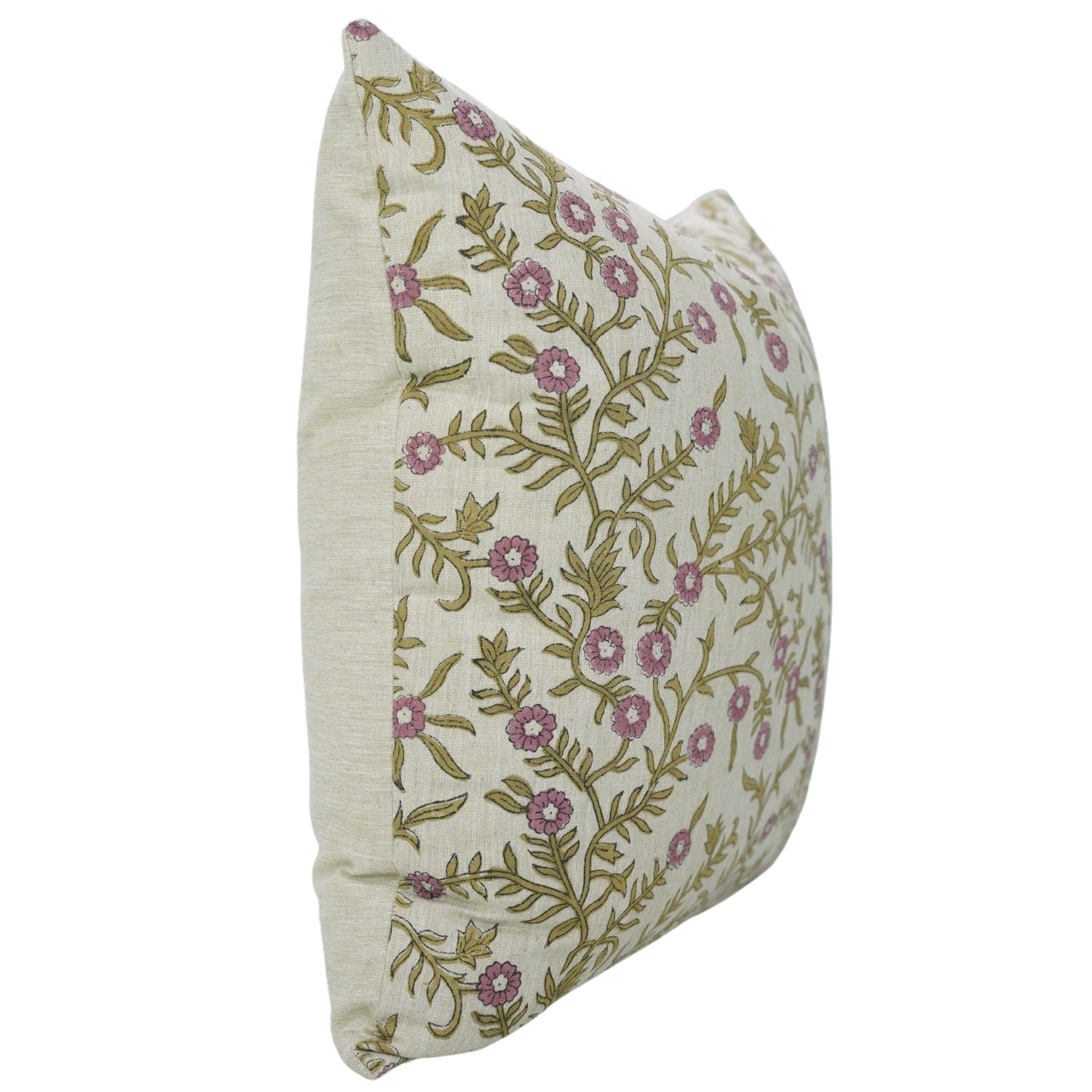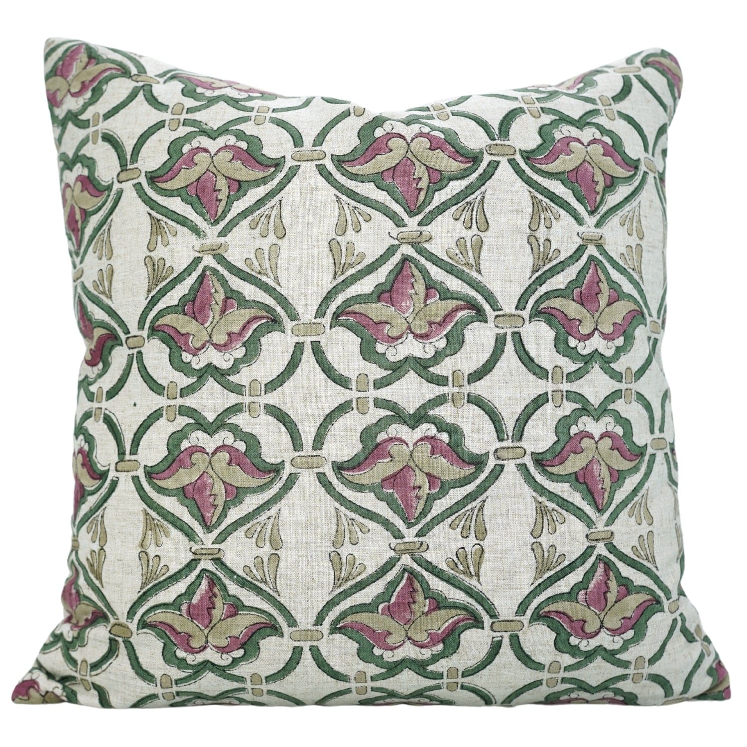 Handblock Printed Throw Cushion Case – Pink, Brown & Gray Linen Blend