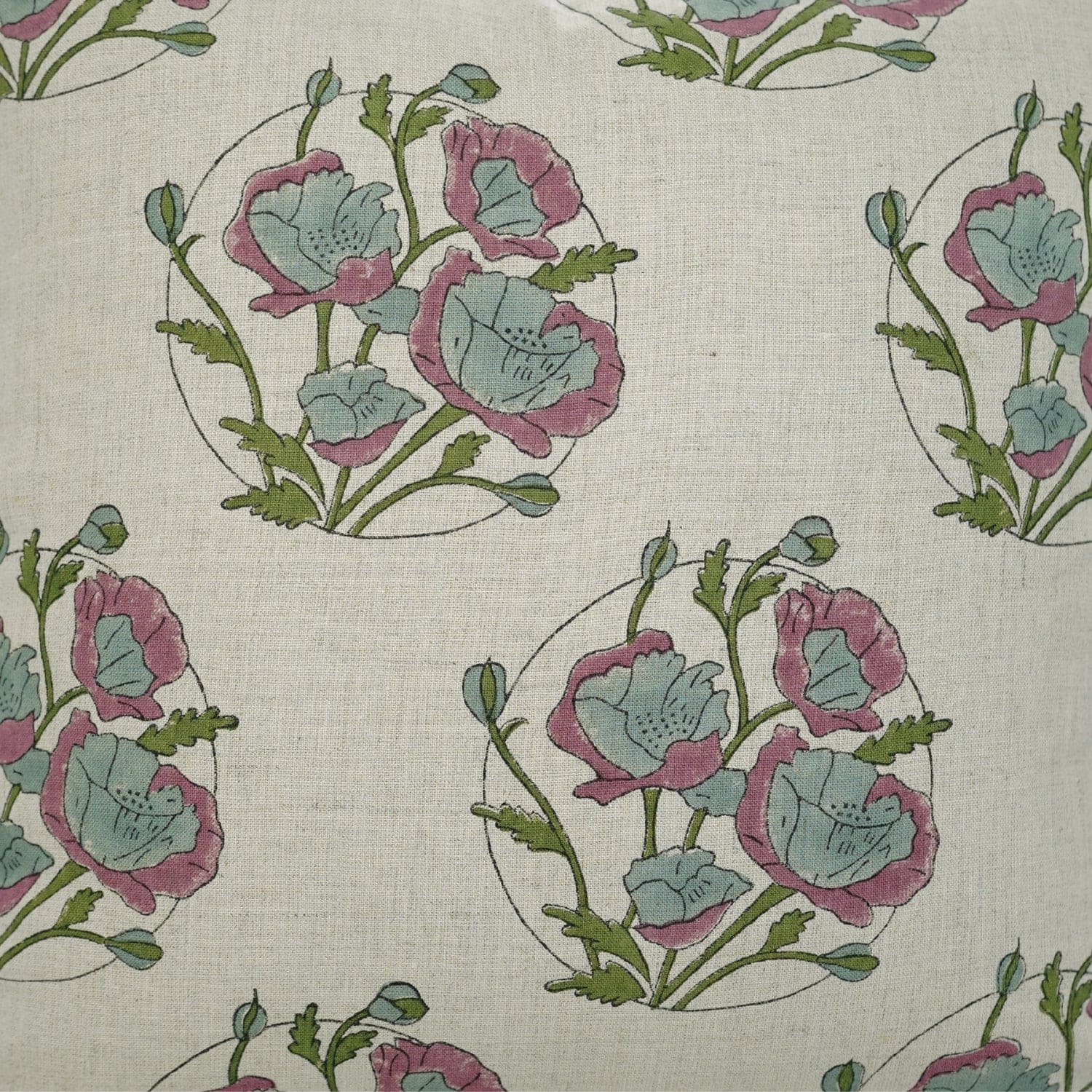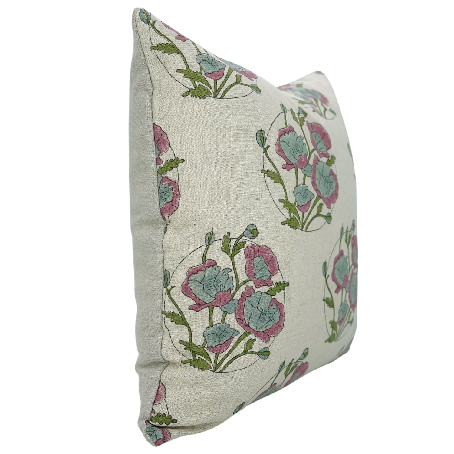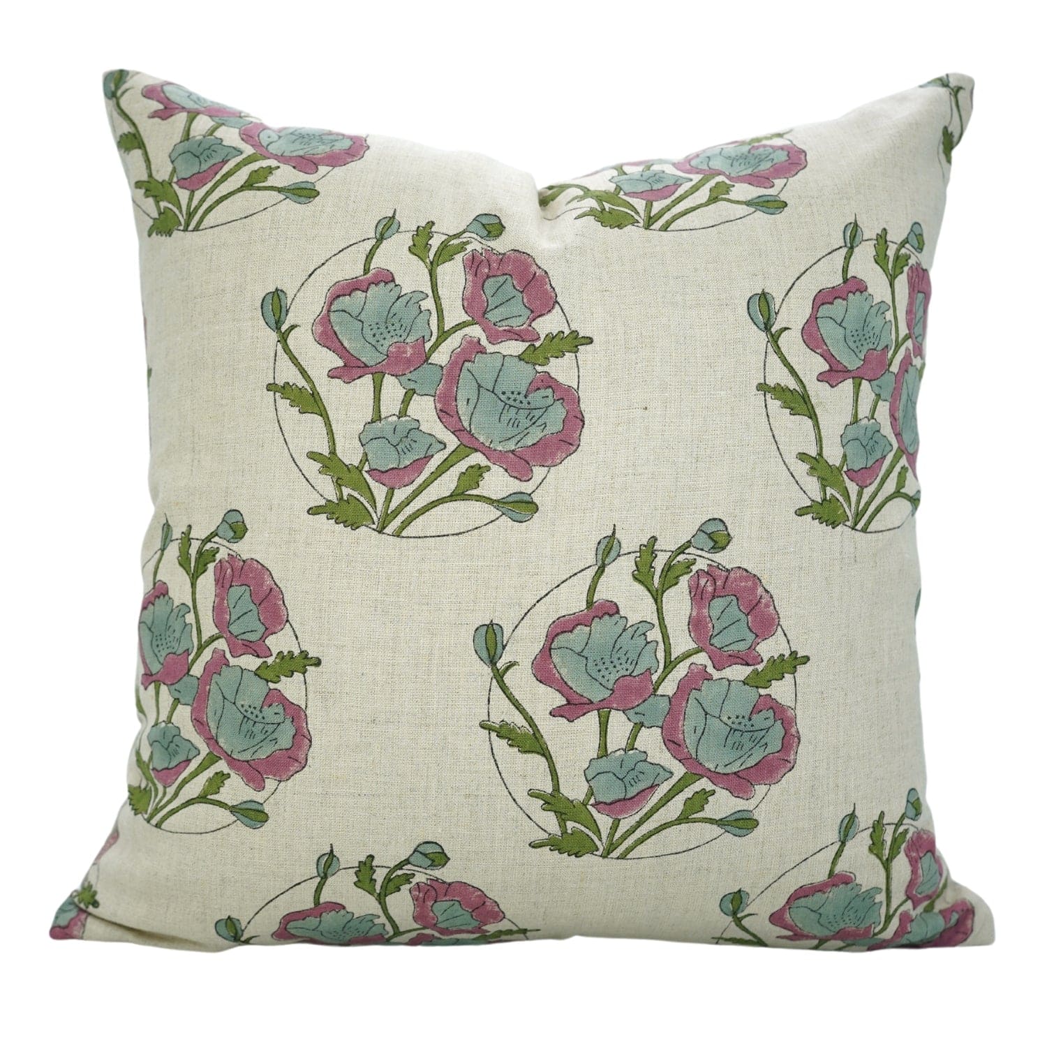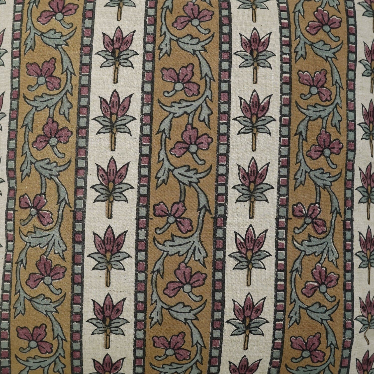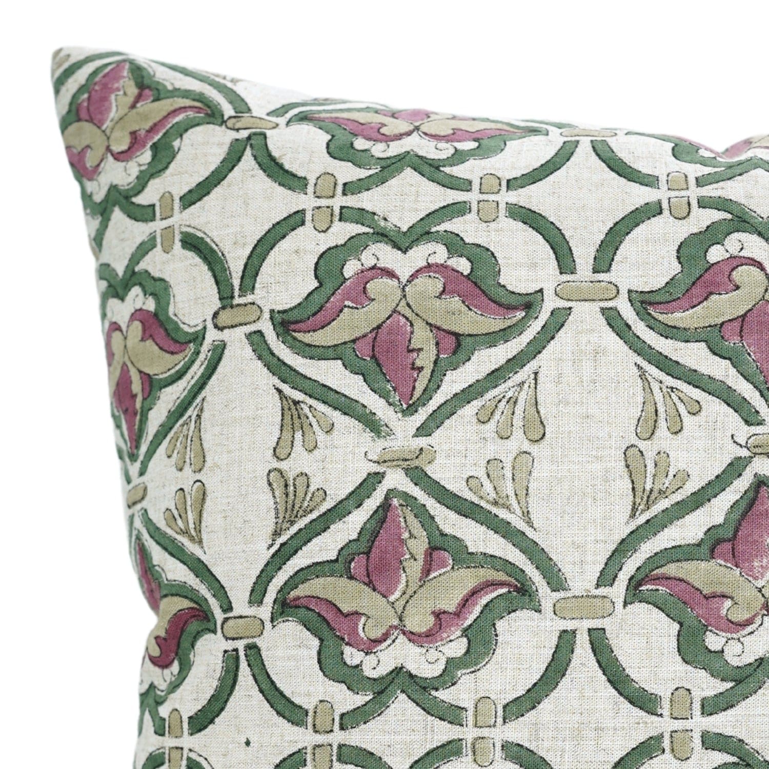 Handblock Printed Throw Cushion Case – Pink, Brown & Gray Linen Blend