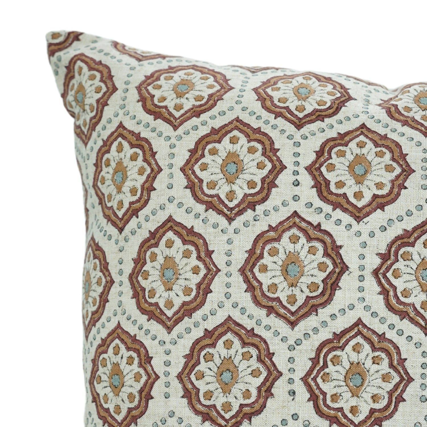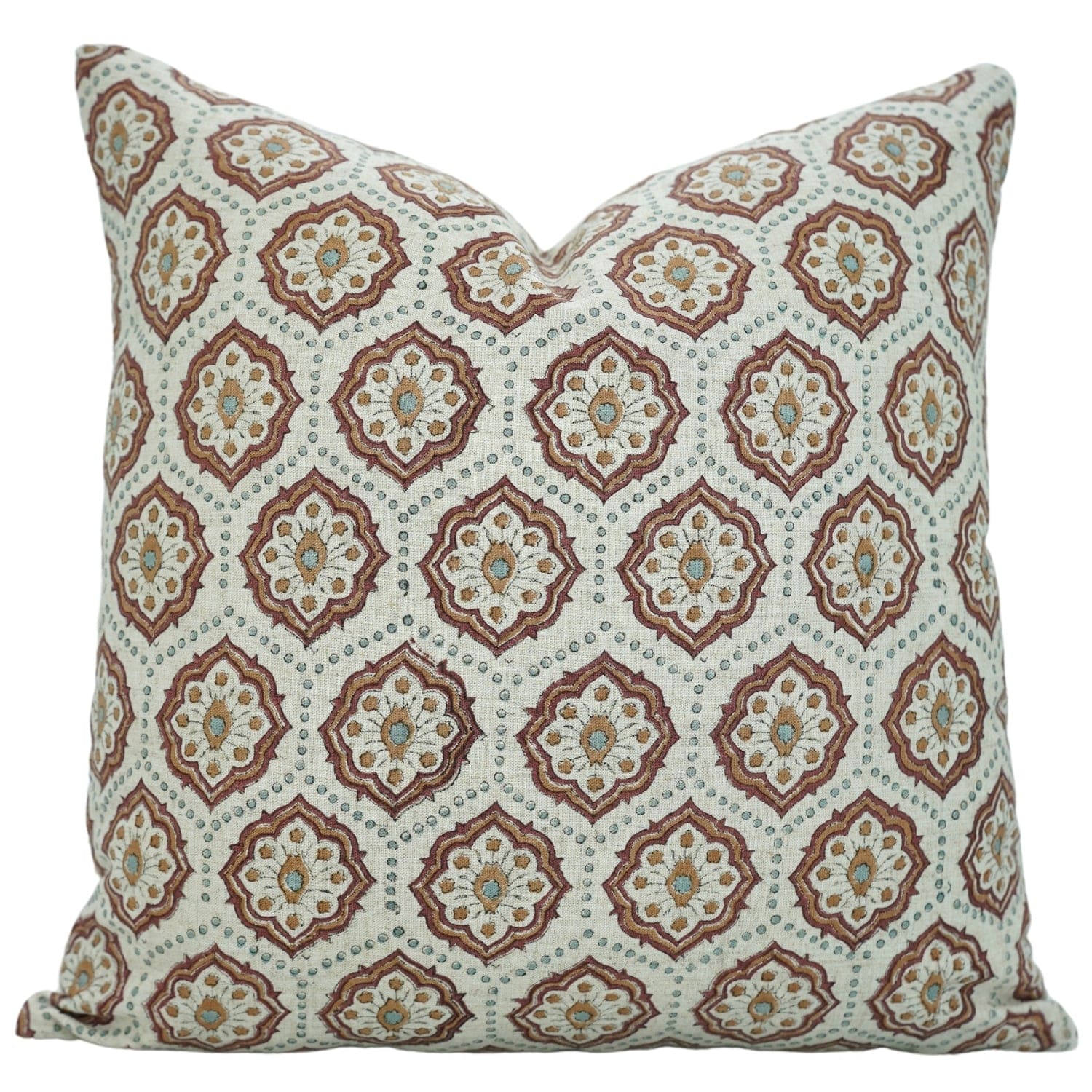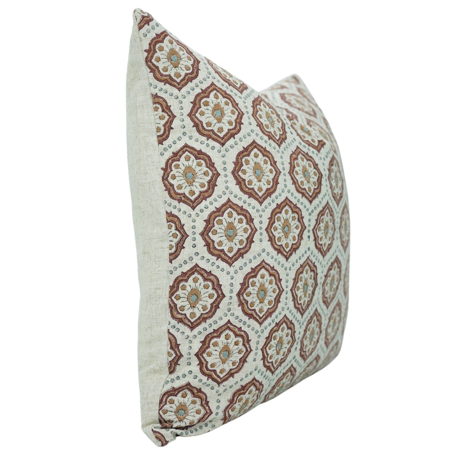 Linen Blend Boho Handblock Printed Pillow/Cushion Cover in Warm Brown