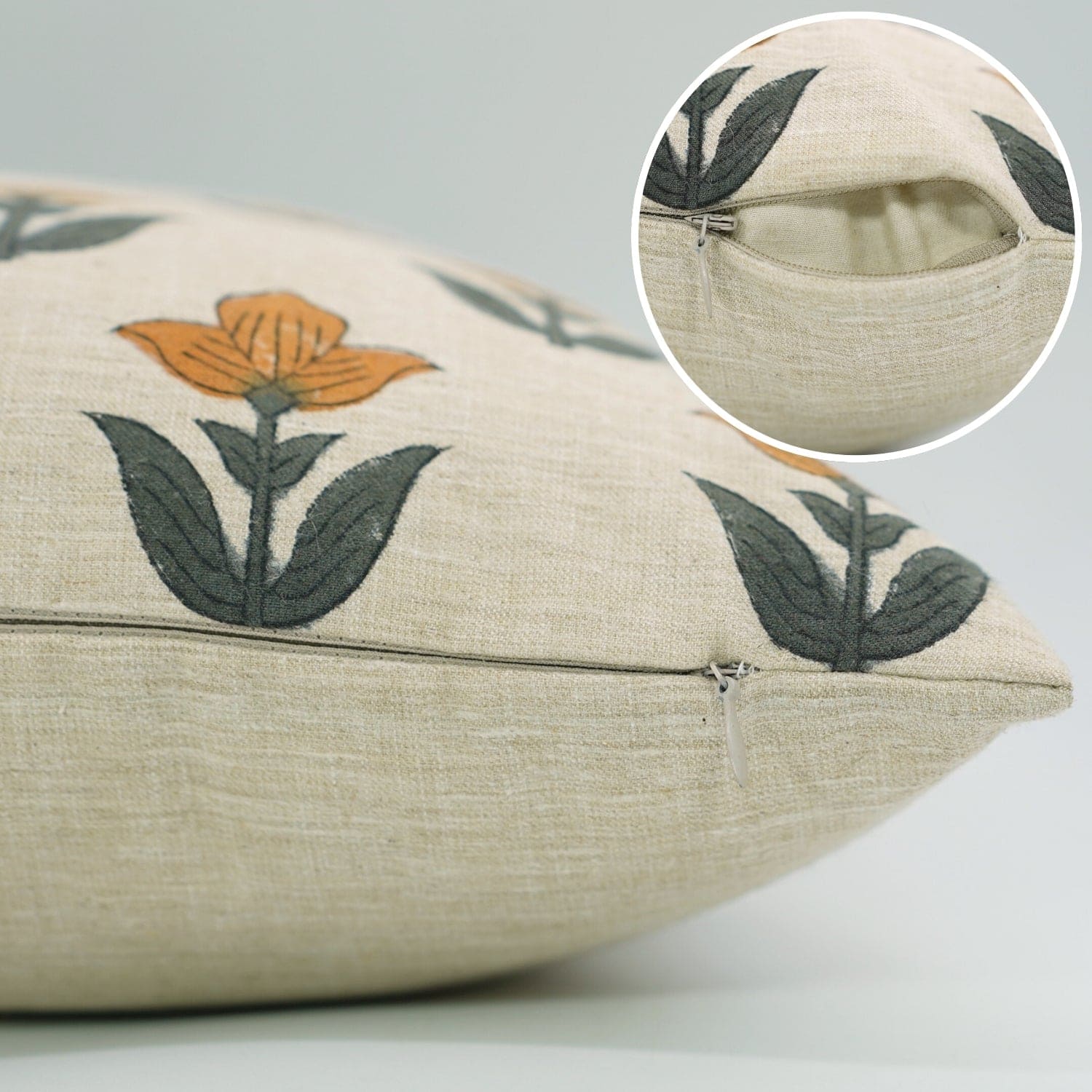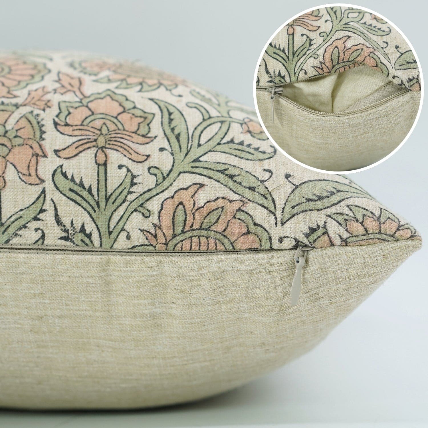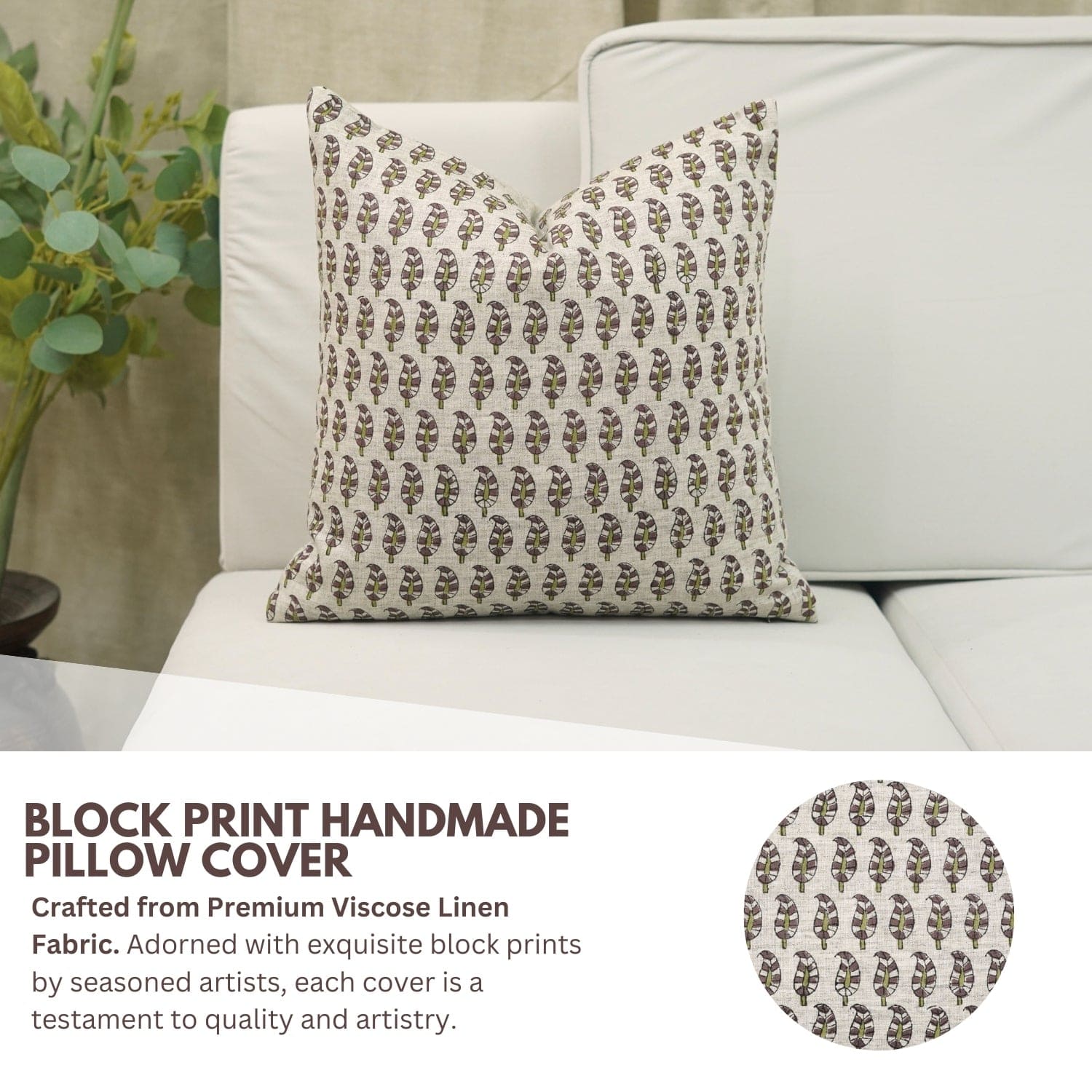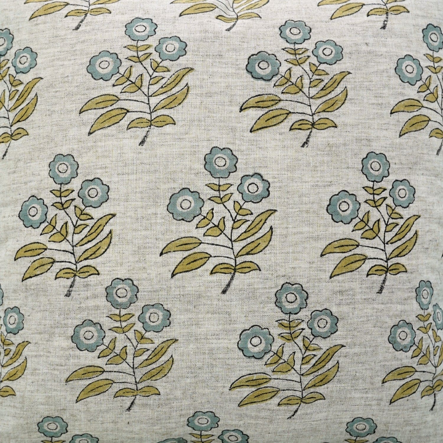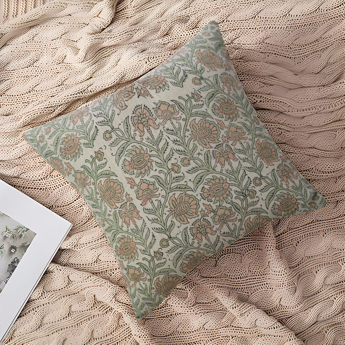 Viscose Linen Throw Cushion Cover – Samrat Green Handblock Printed Floral