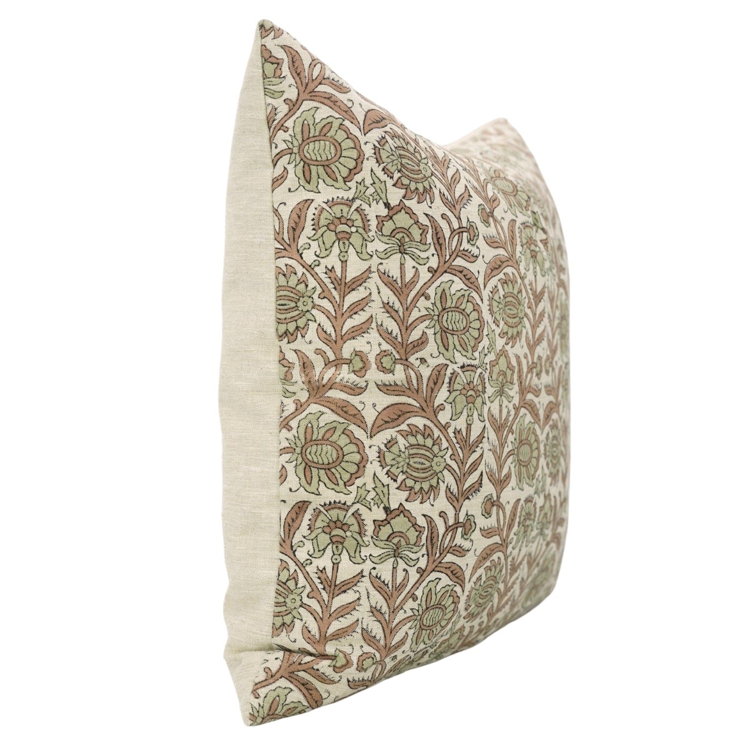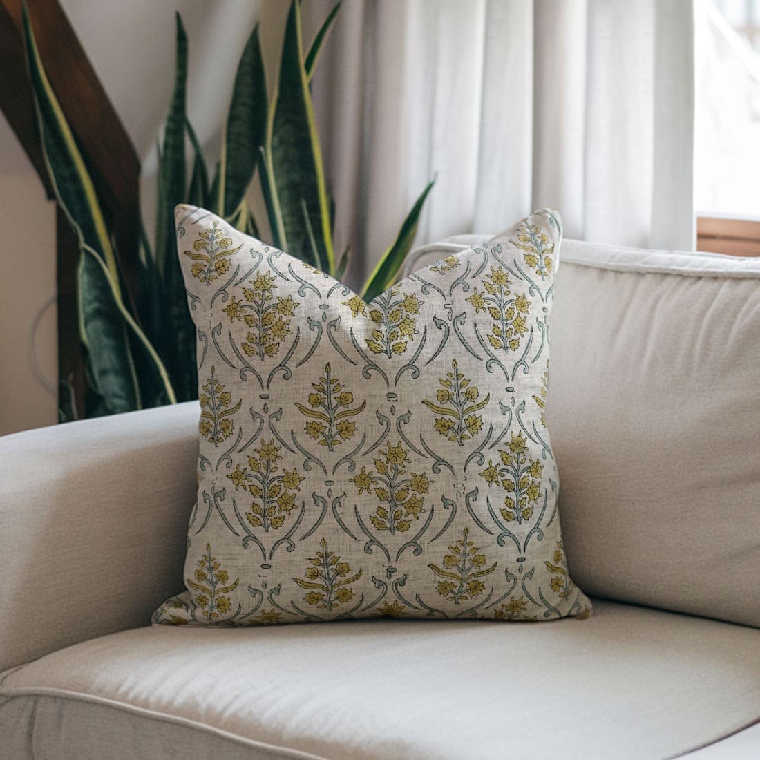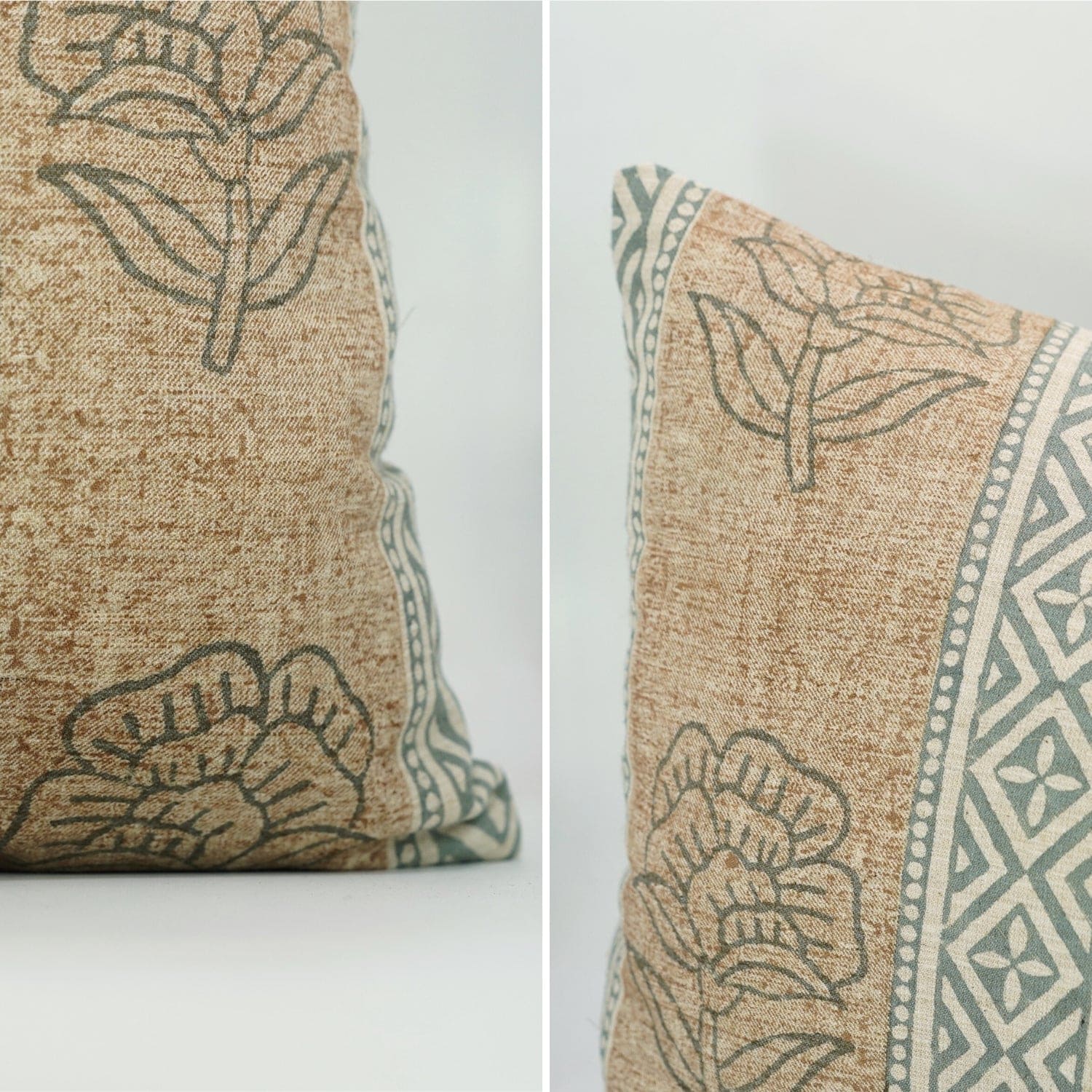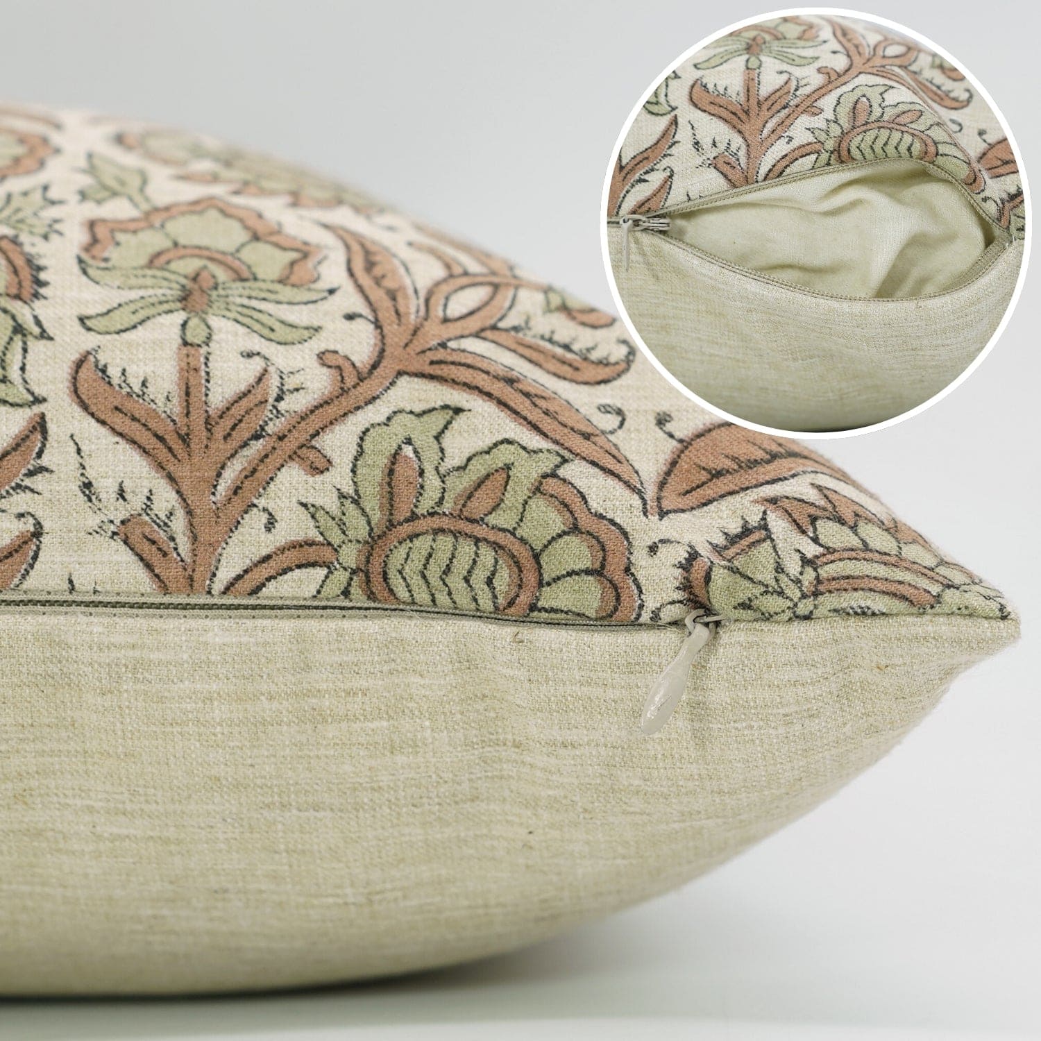 Viscose Linen Throw Cushion Cover – Samrat Green Handblock Printed Floral