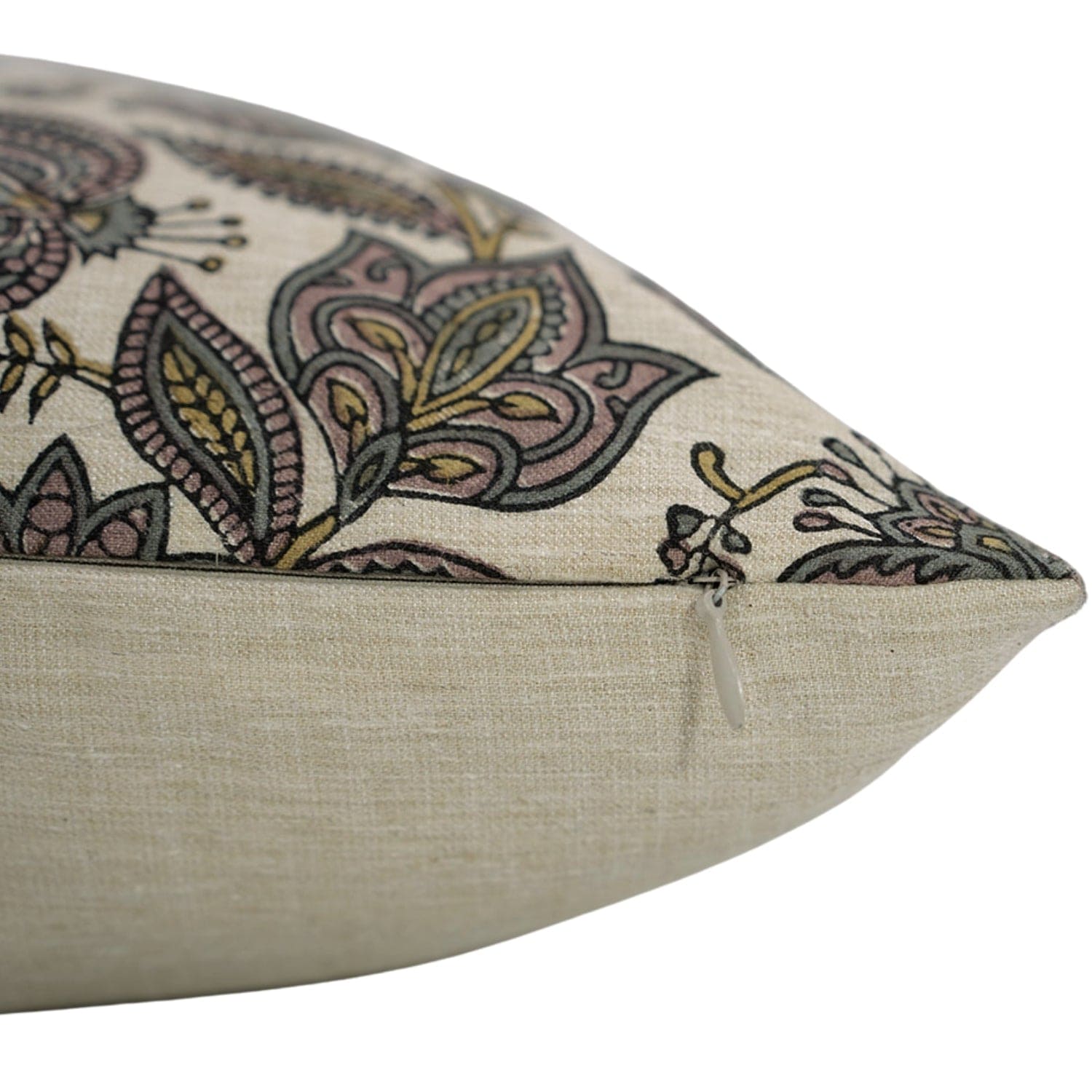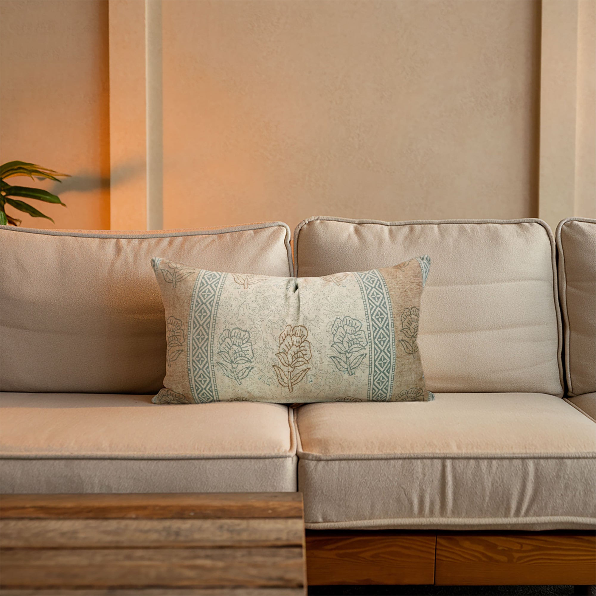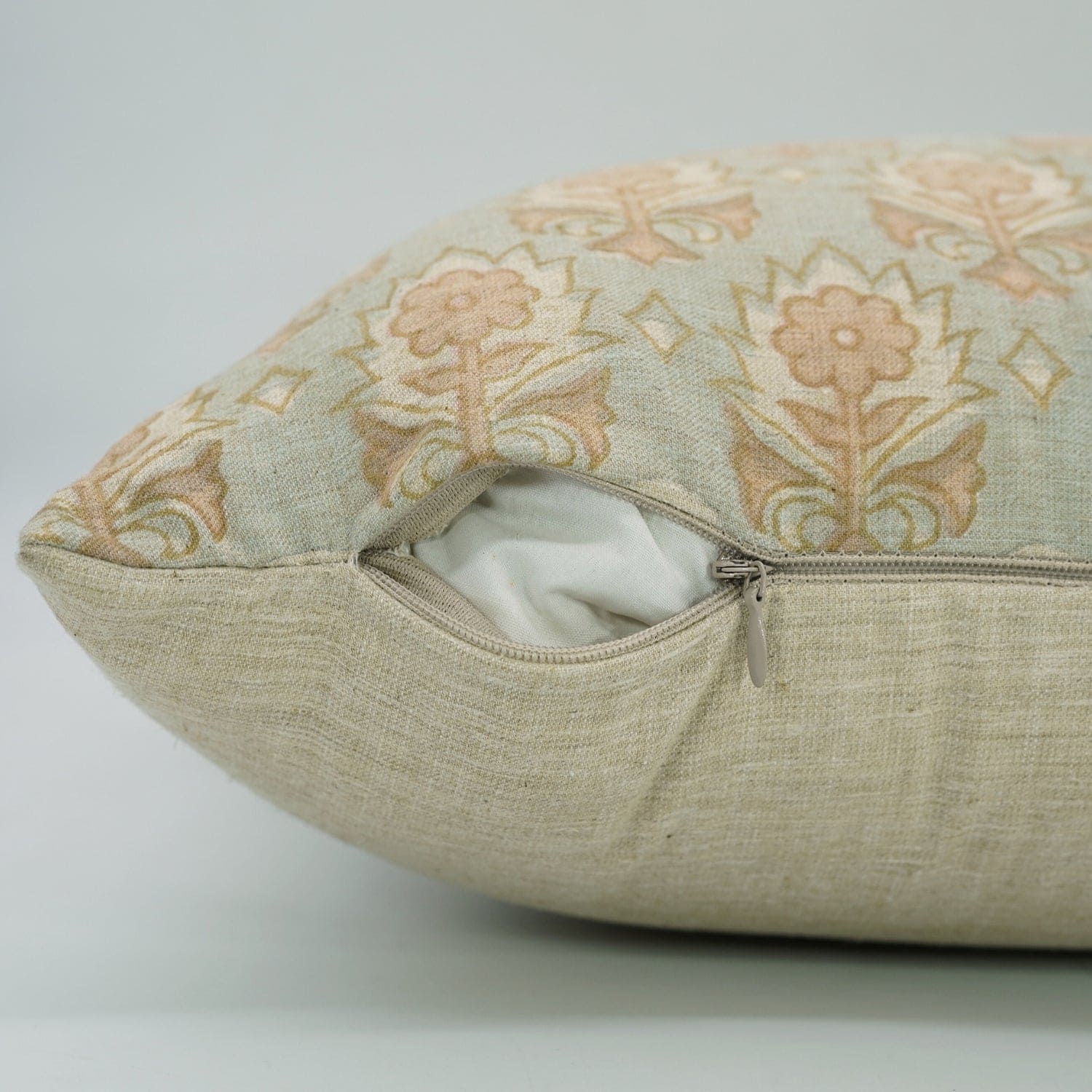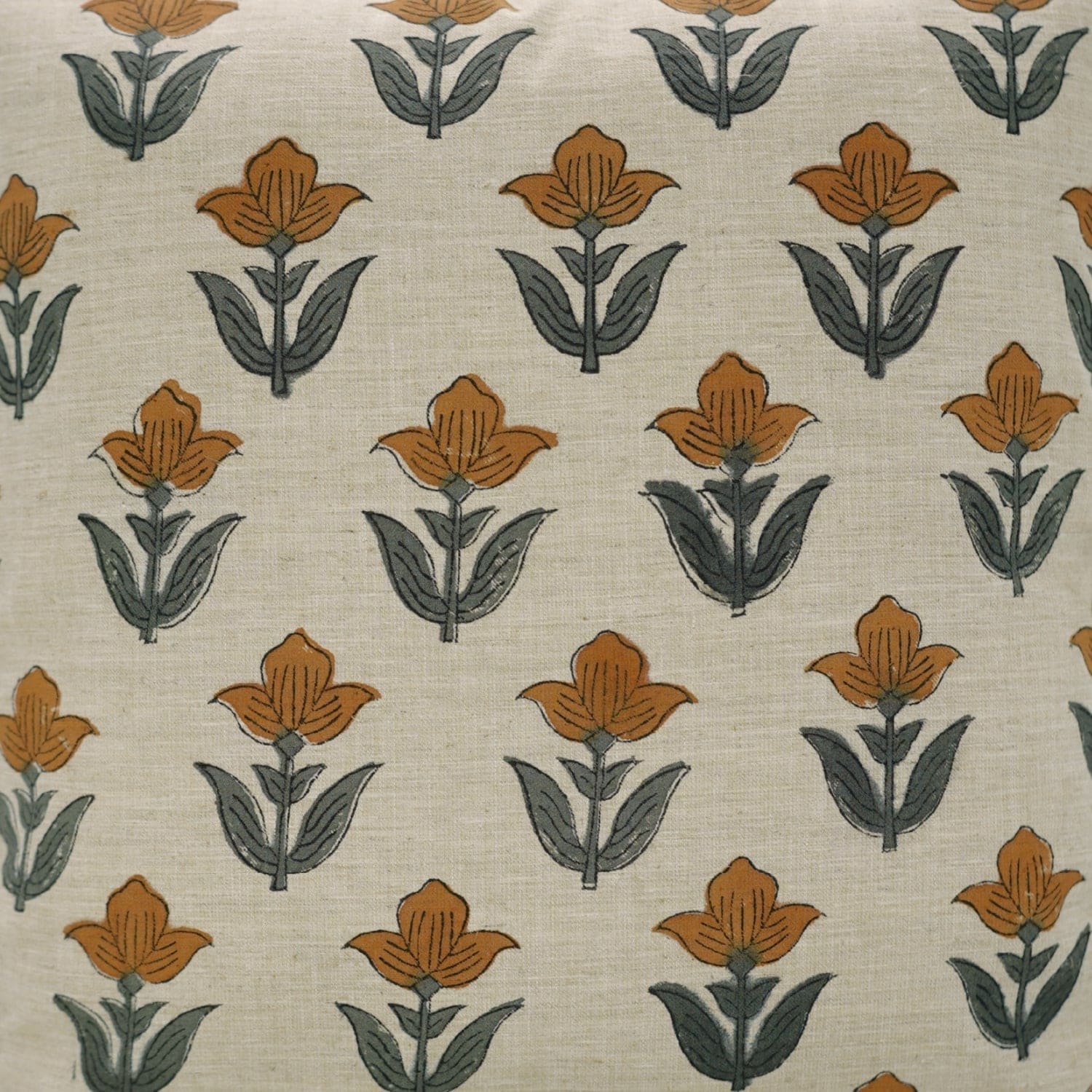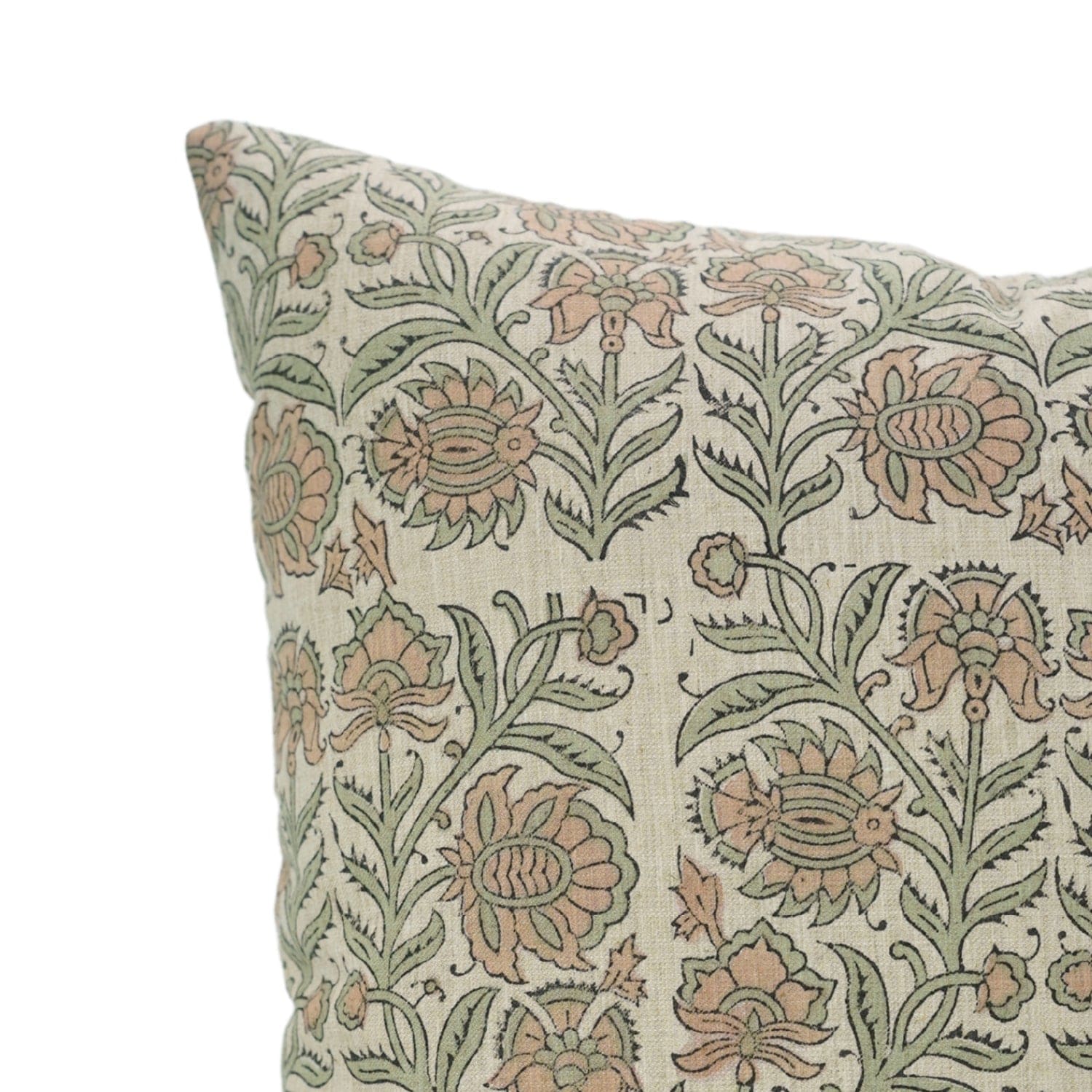 Viscose Linen Throw Cushion Cover – Samrat Green Handblock Printed Floral