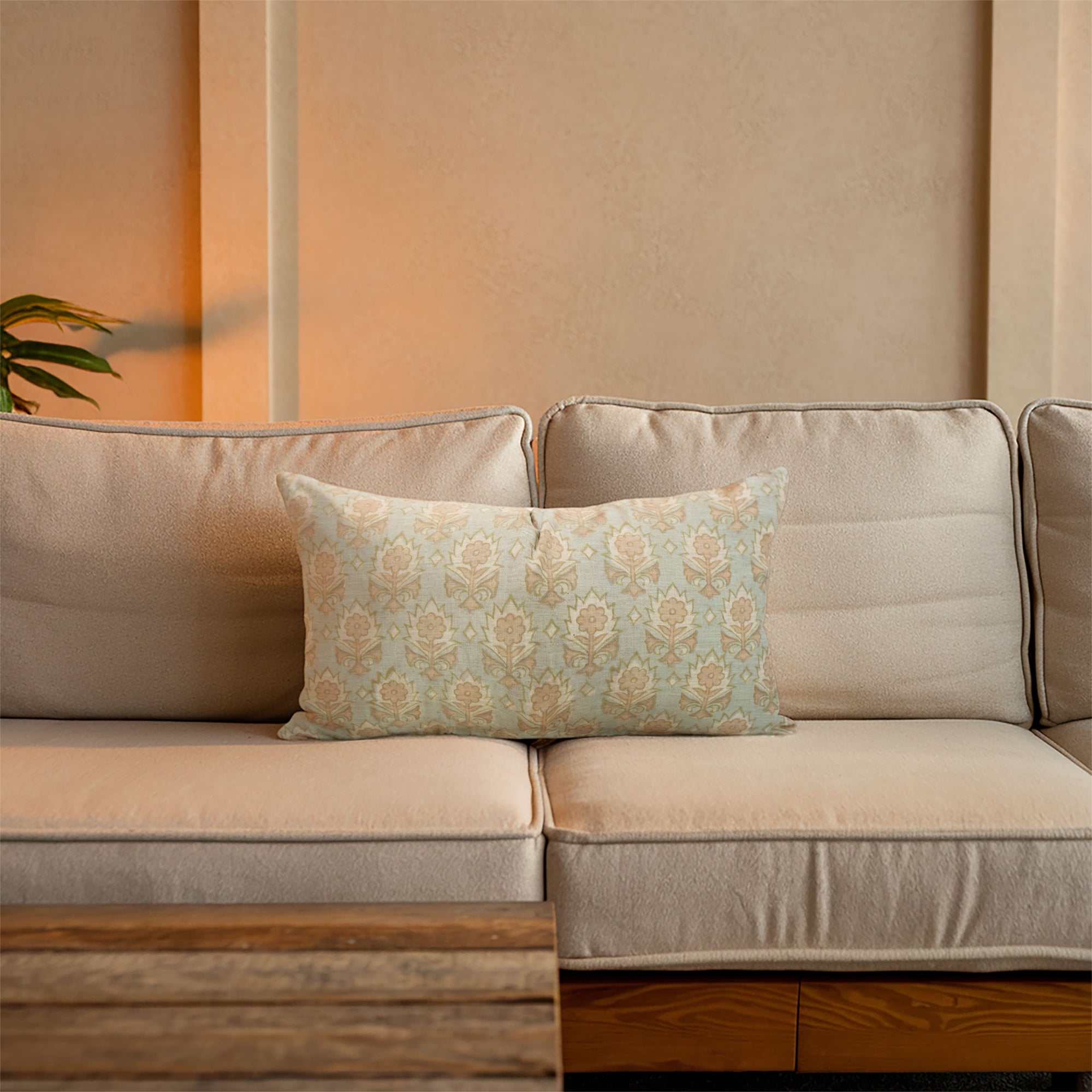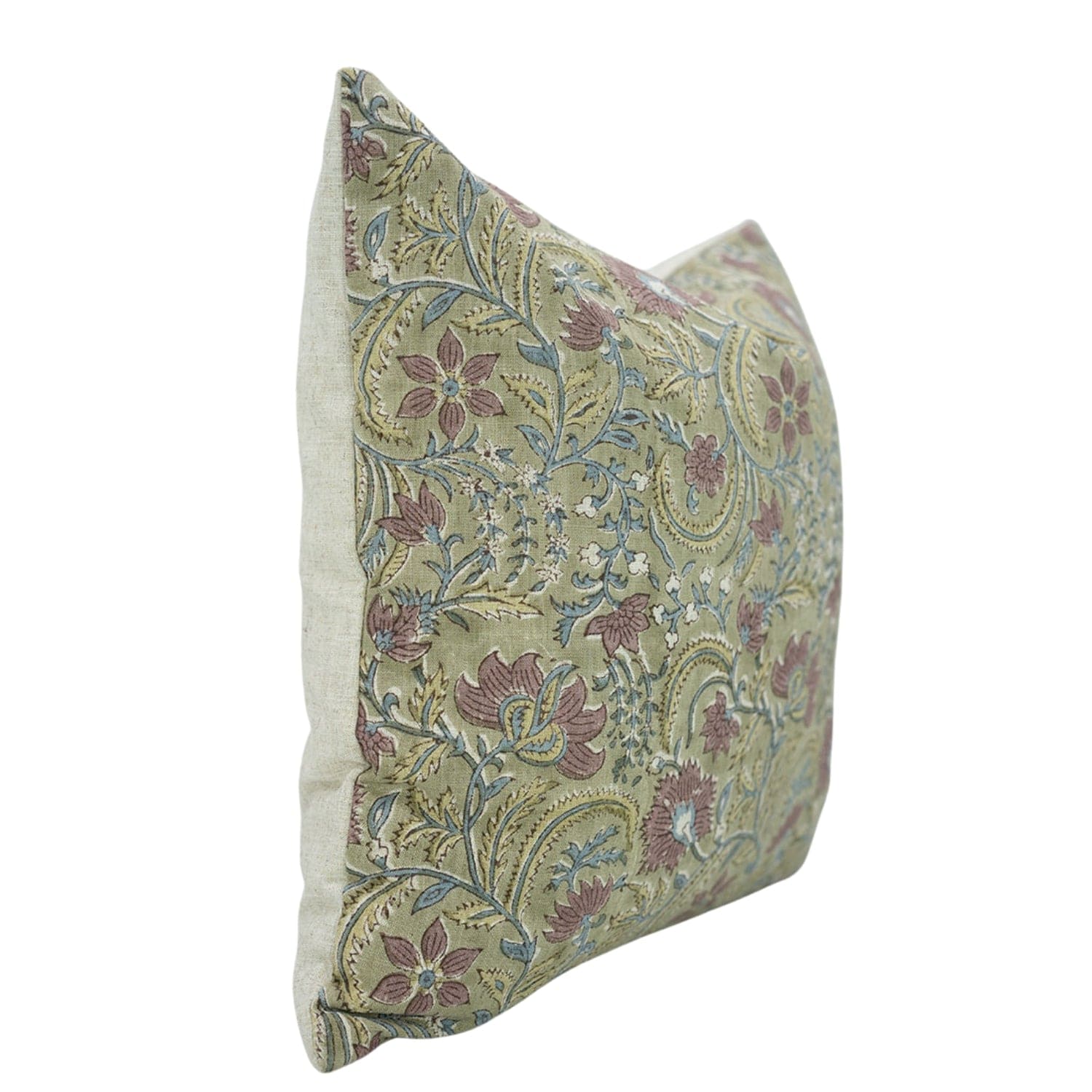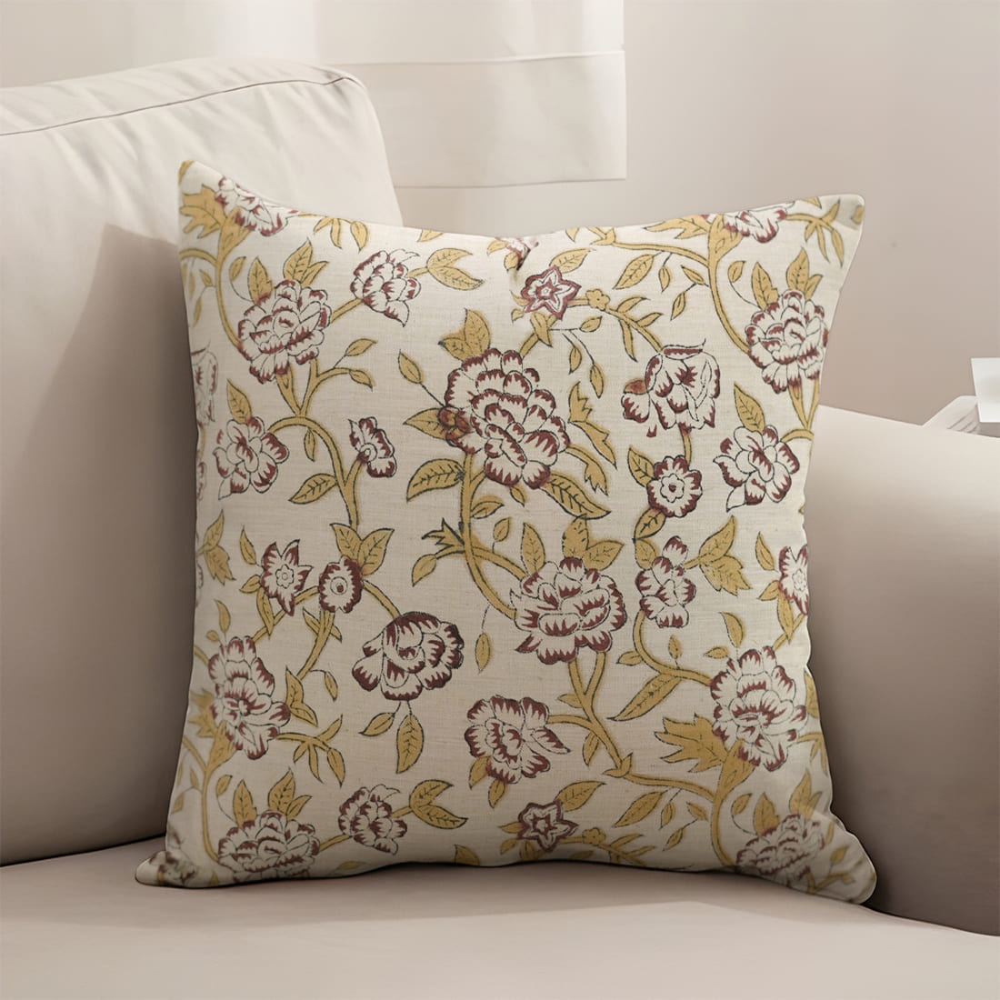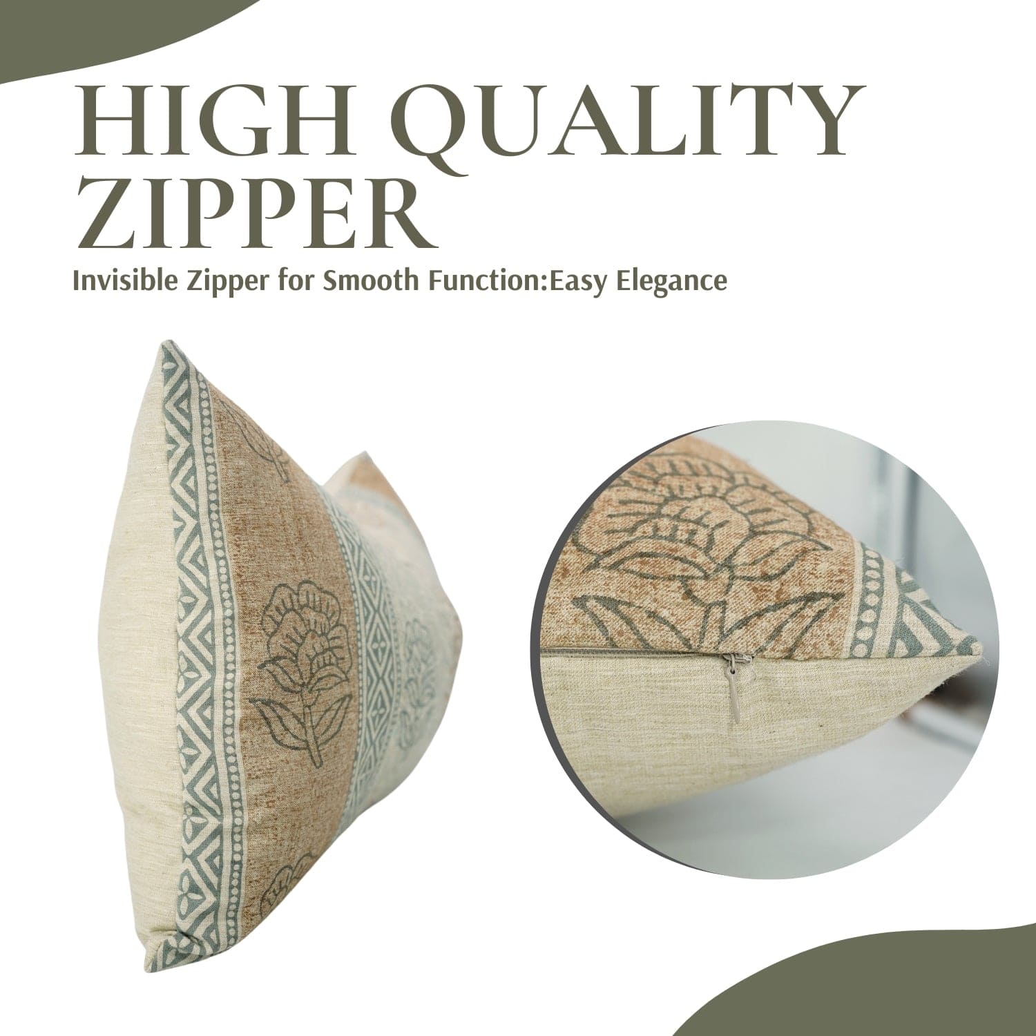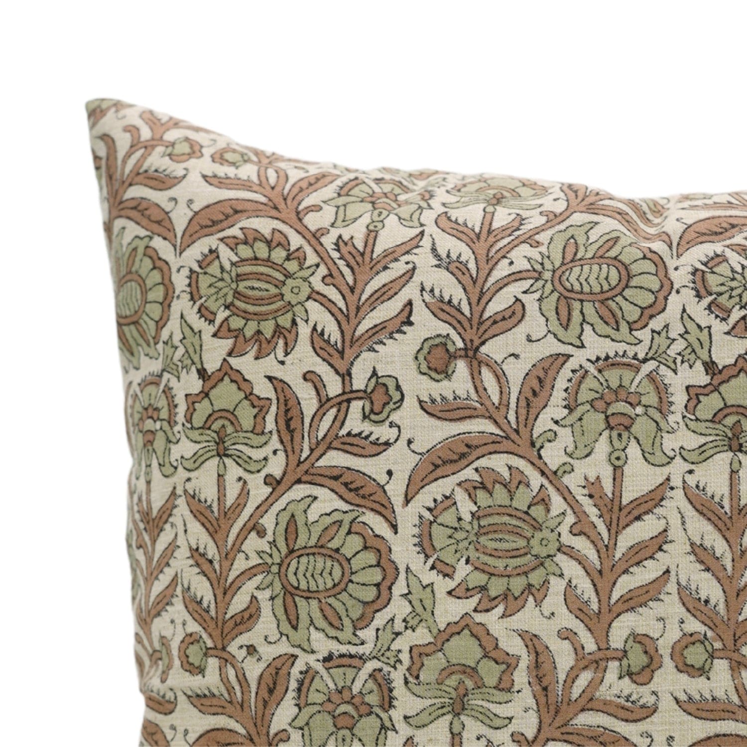 Viscose Linen Throw Cushion Cover – Samrat Green Handblock Printed Floral
