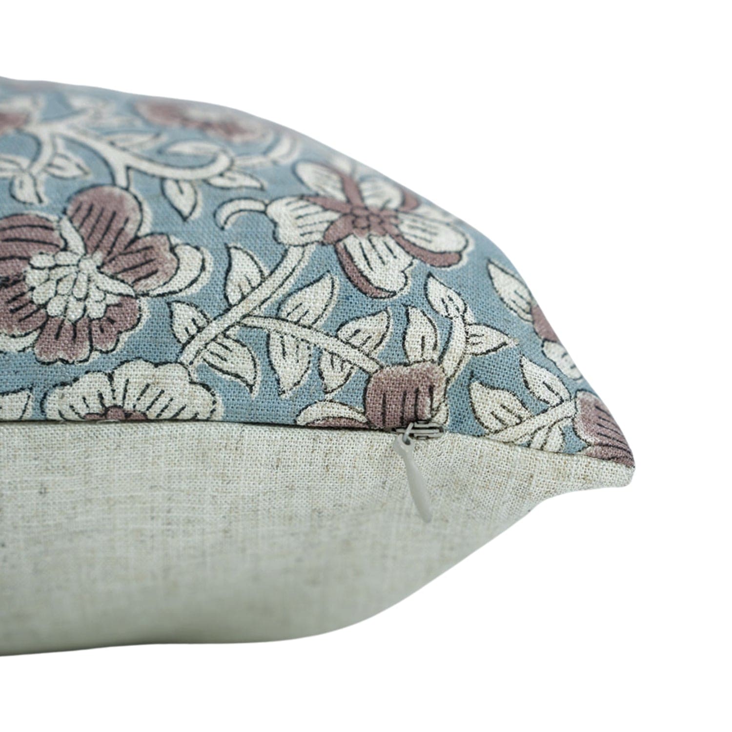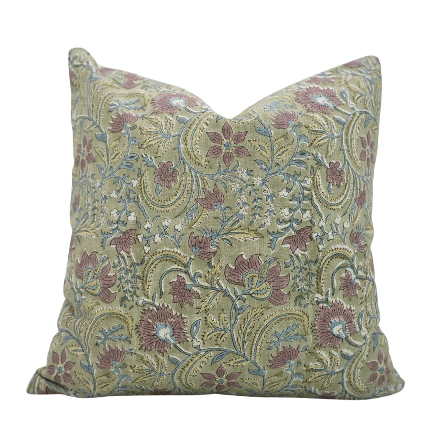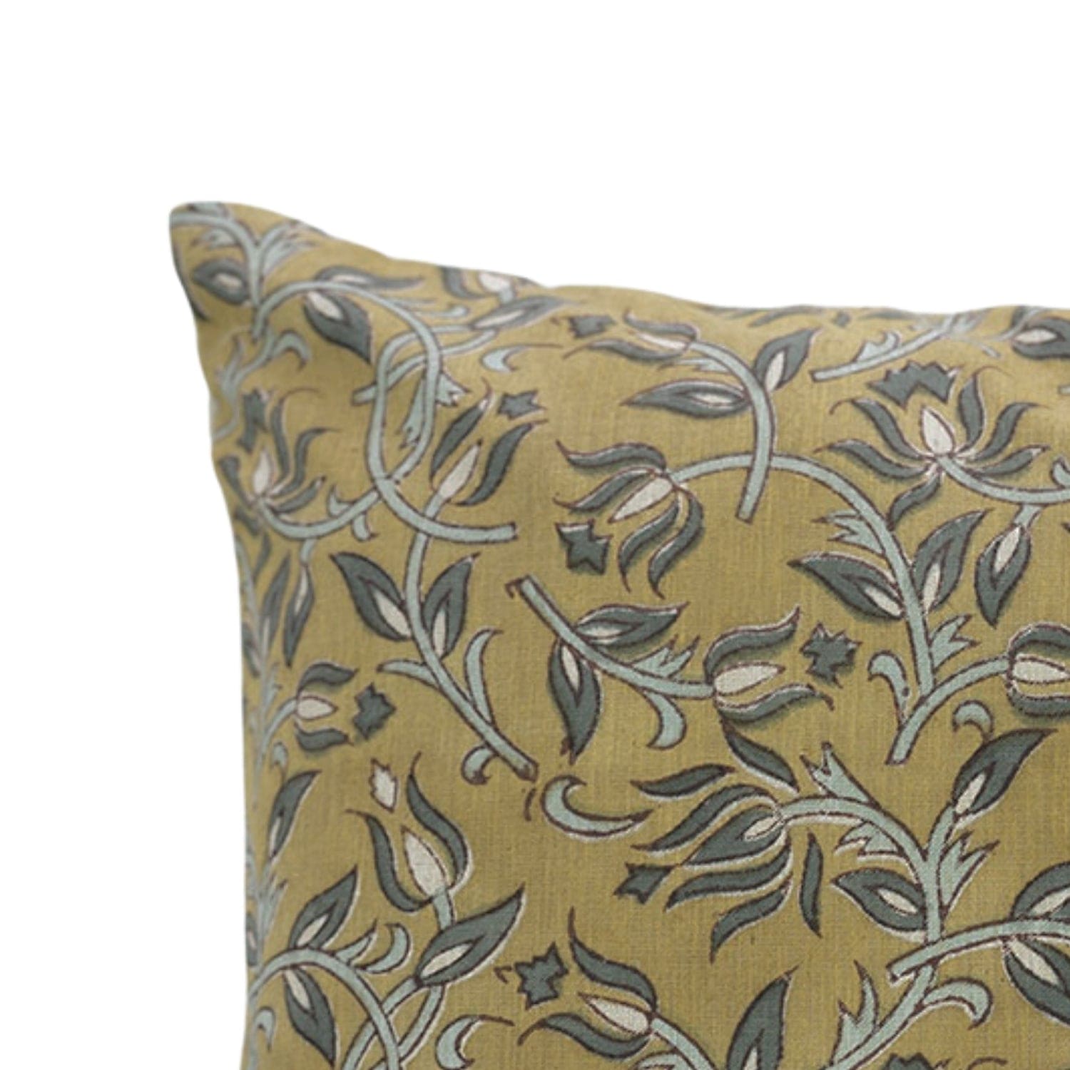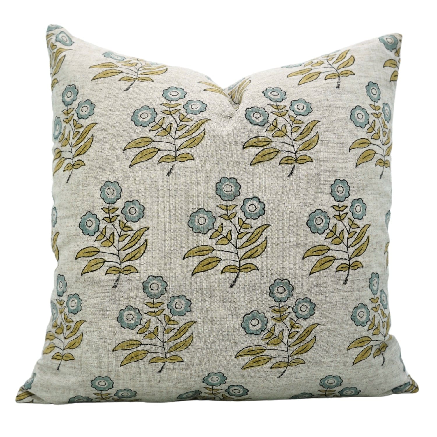 Viscose Linen Throw Cushion Cover – Samrat Green Handblock Printed Floral