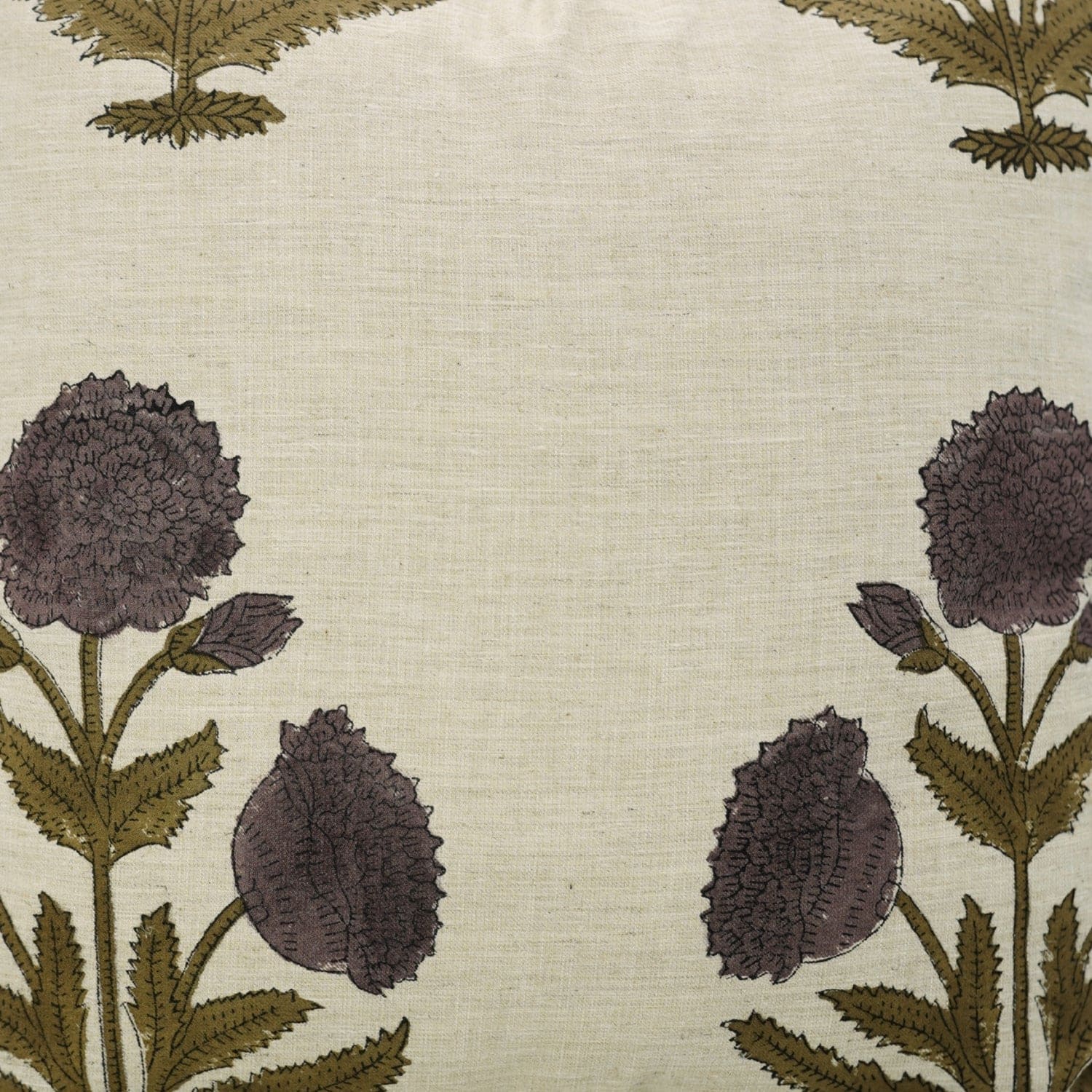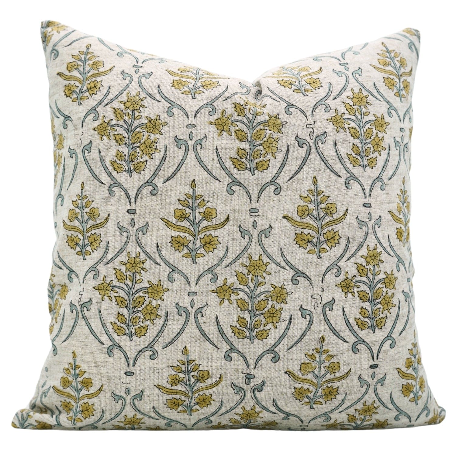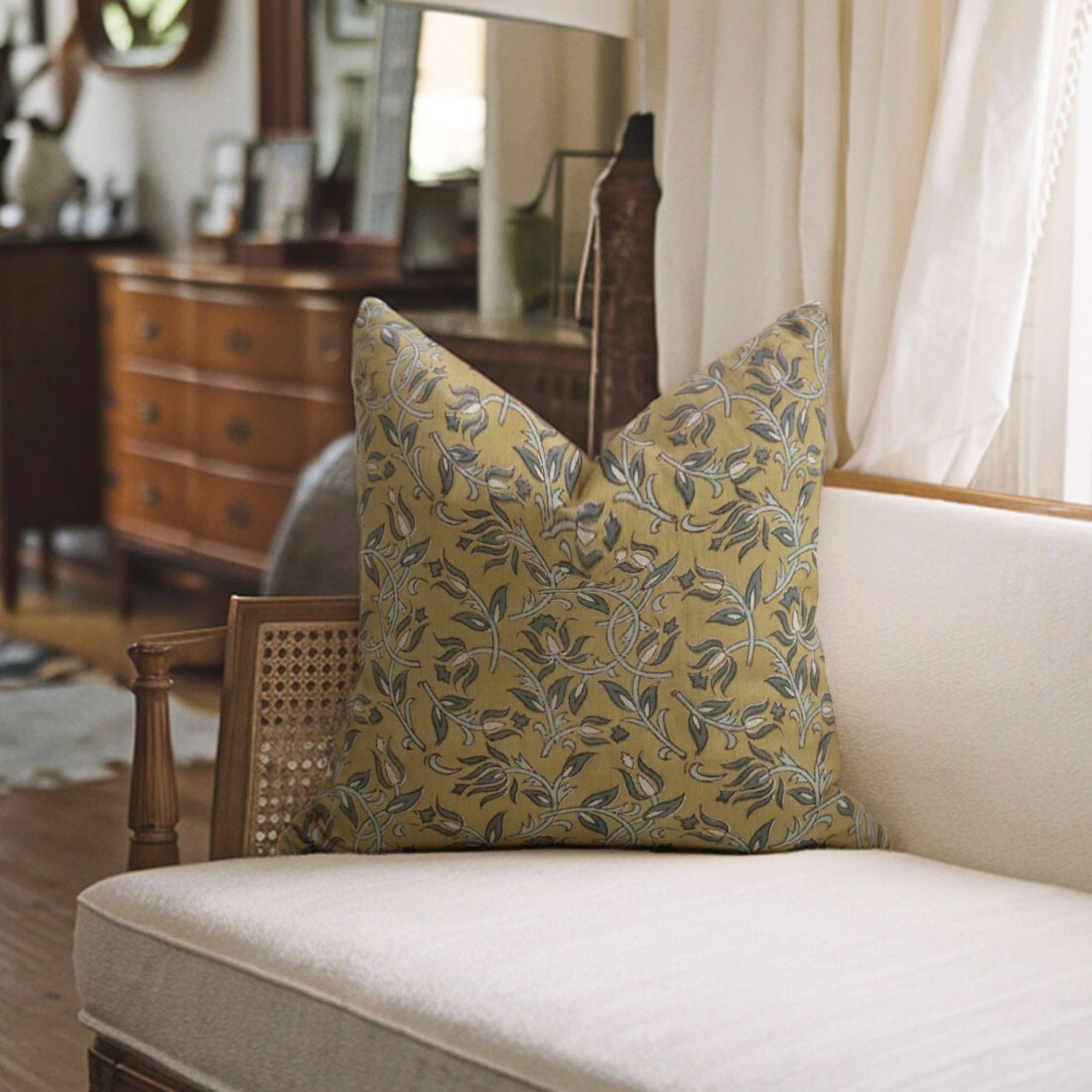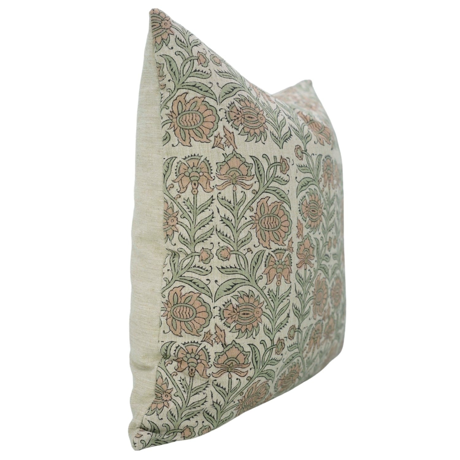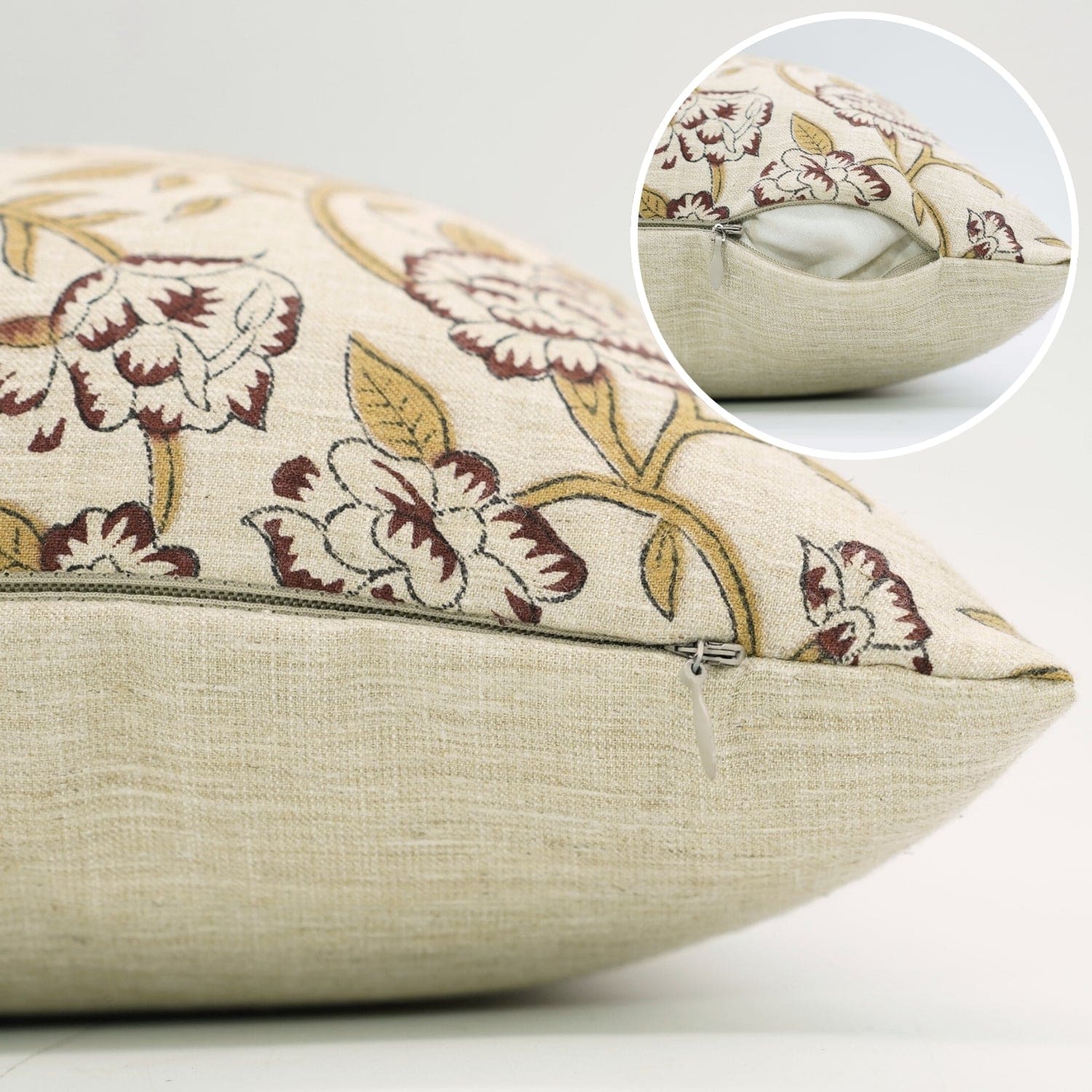 Viscose Linen Throw Cushion Cover – Samrat Green Handblock Printed Floral