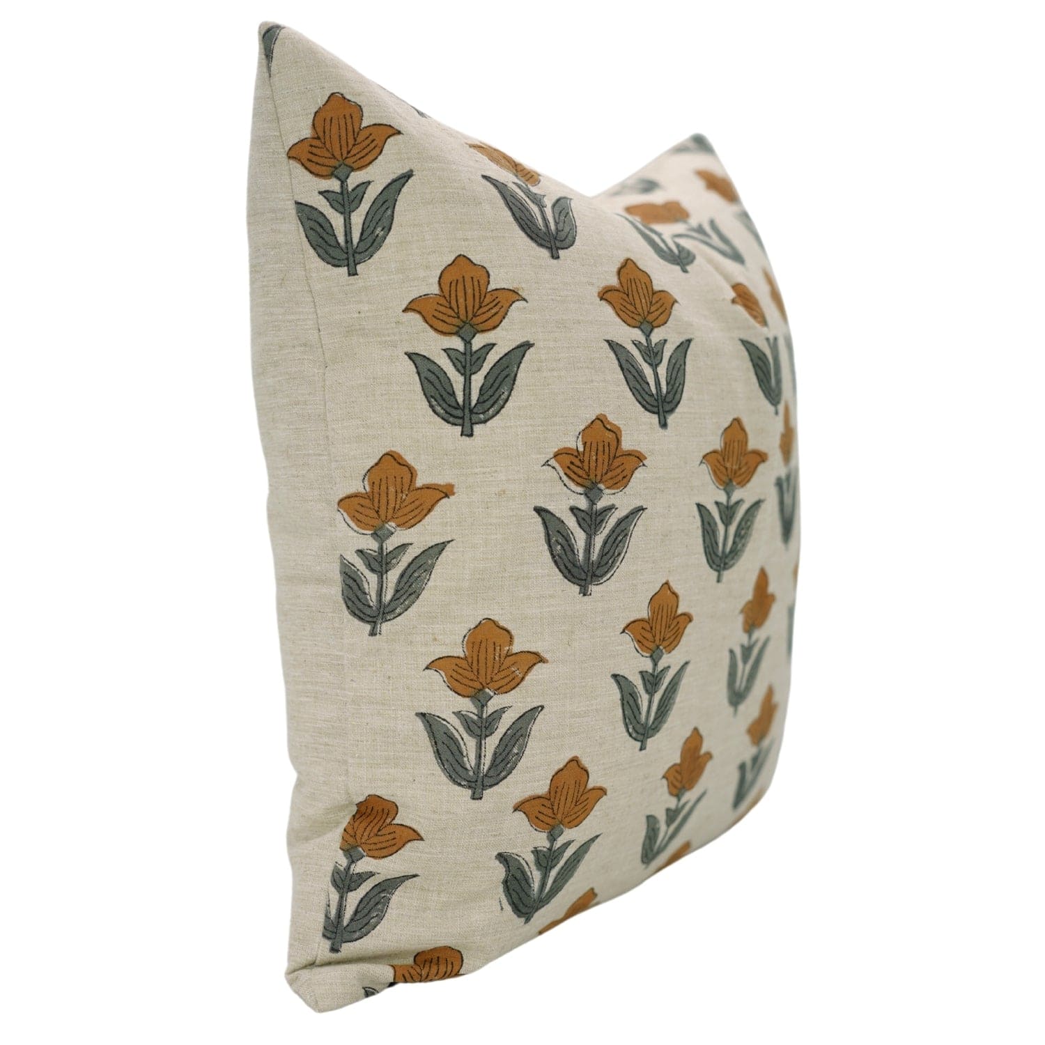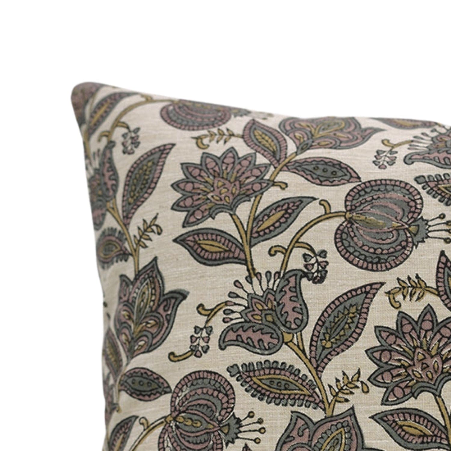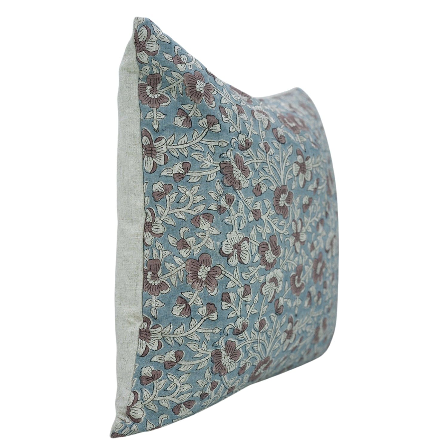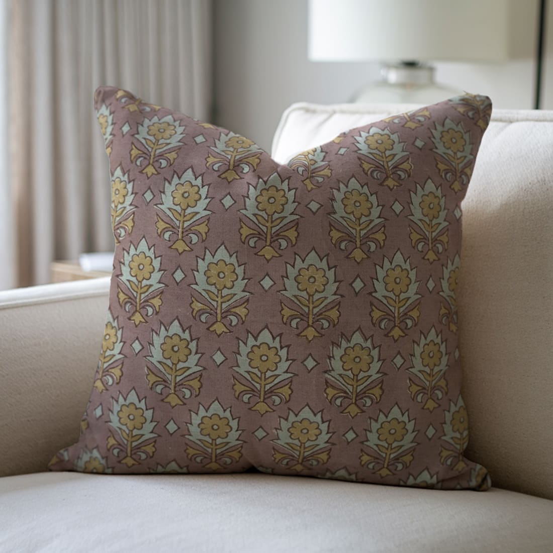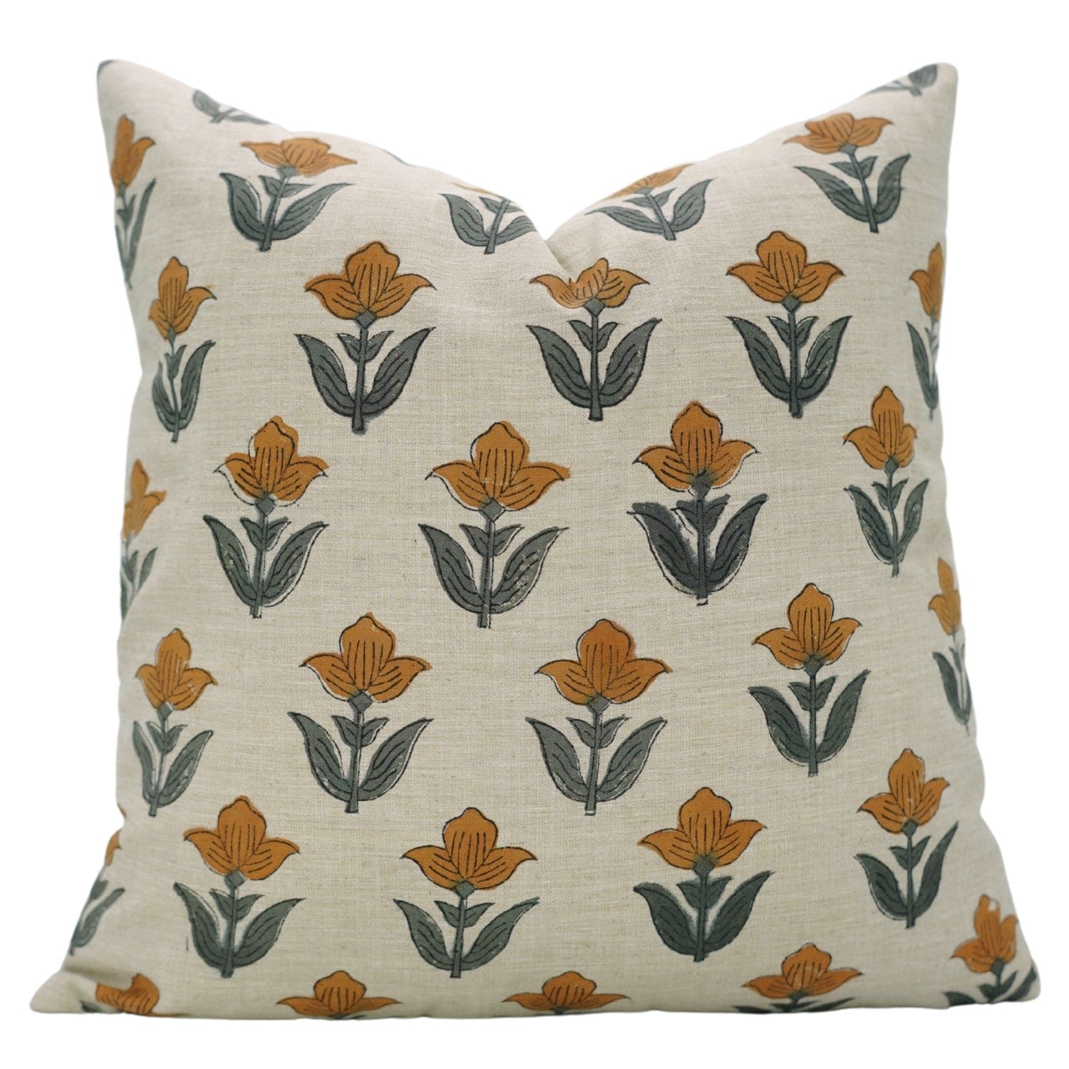 Viscose Linen Throw Cushion Cover – Samrat Green Handblock Printed Floral