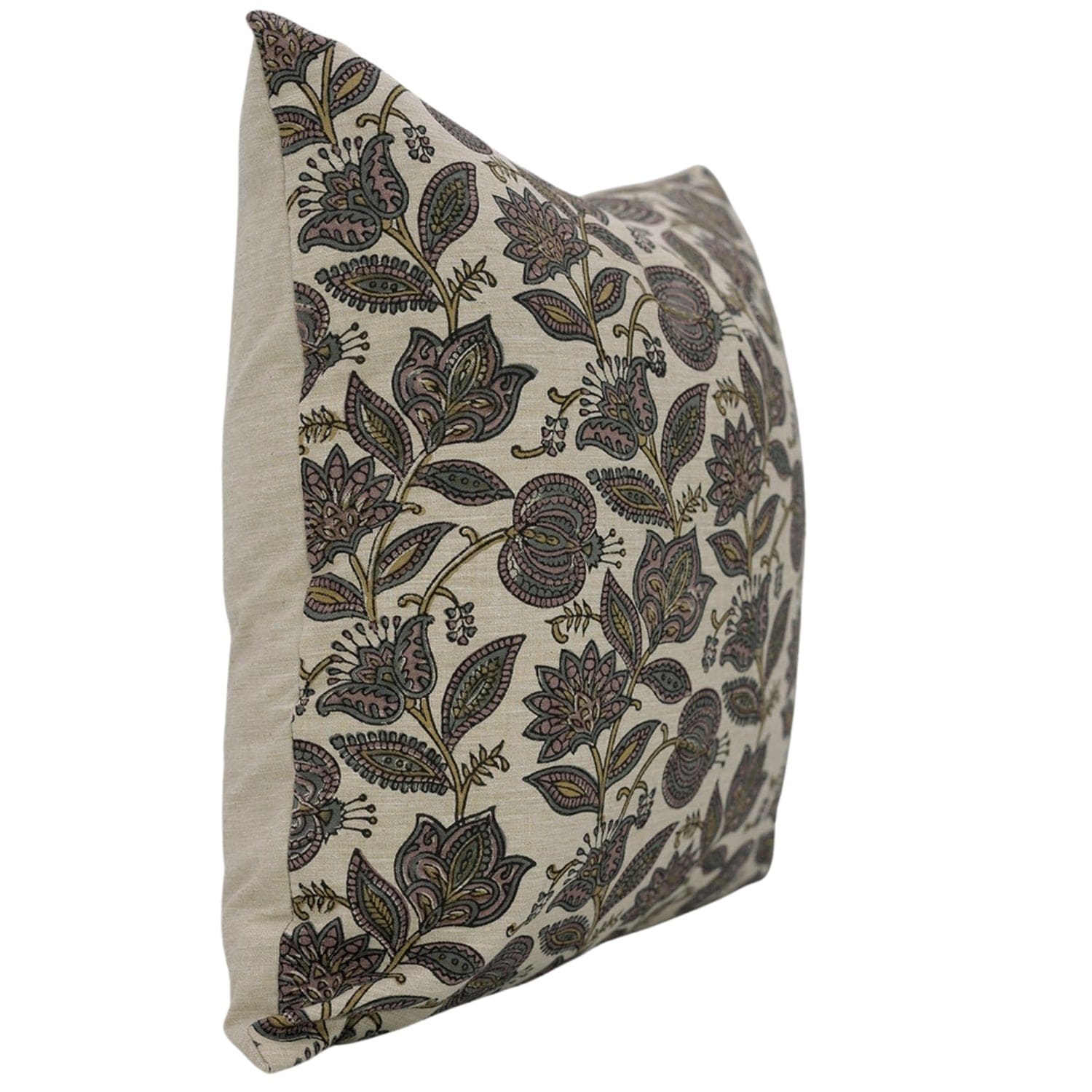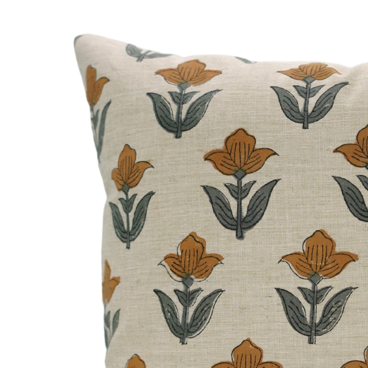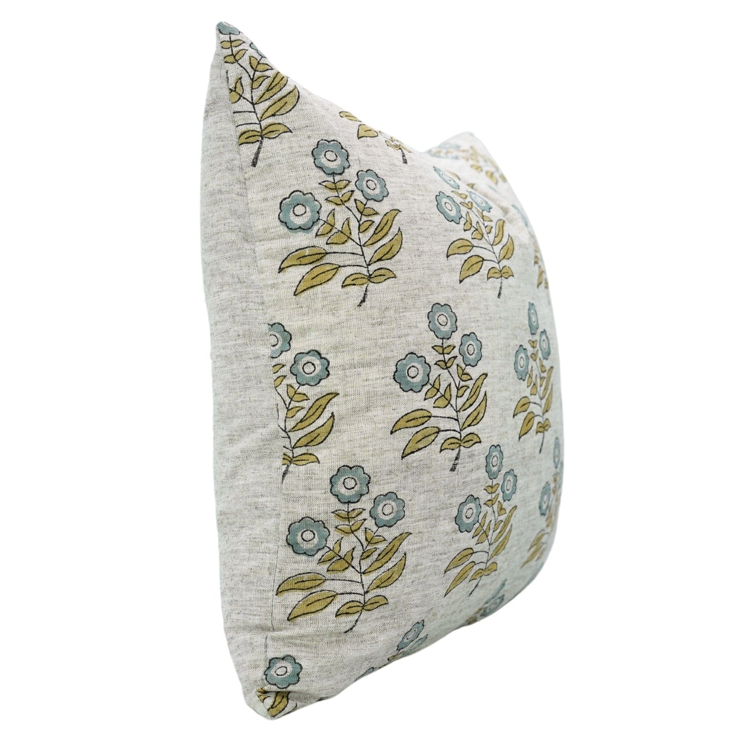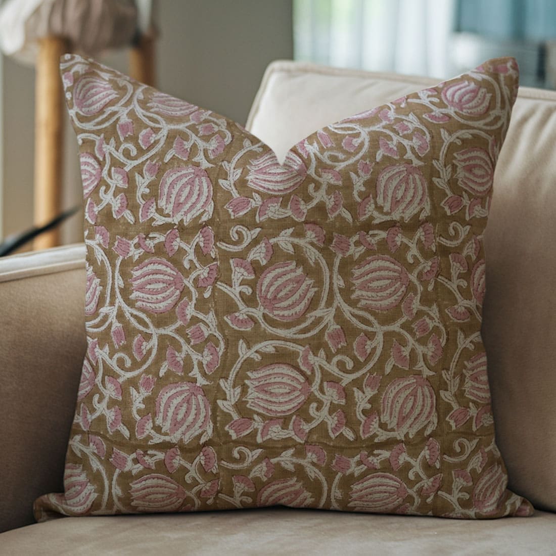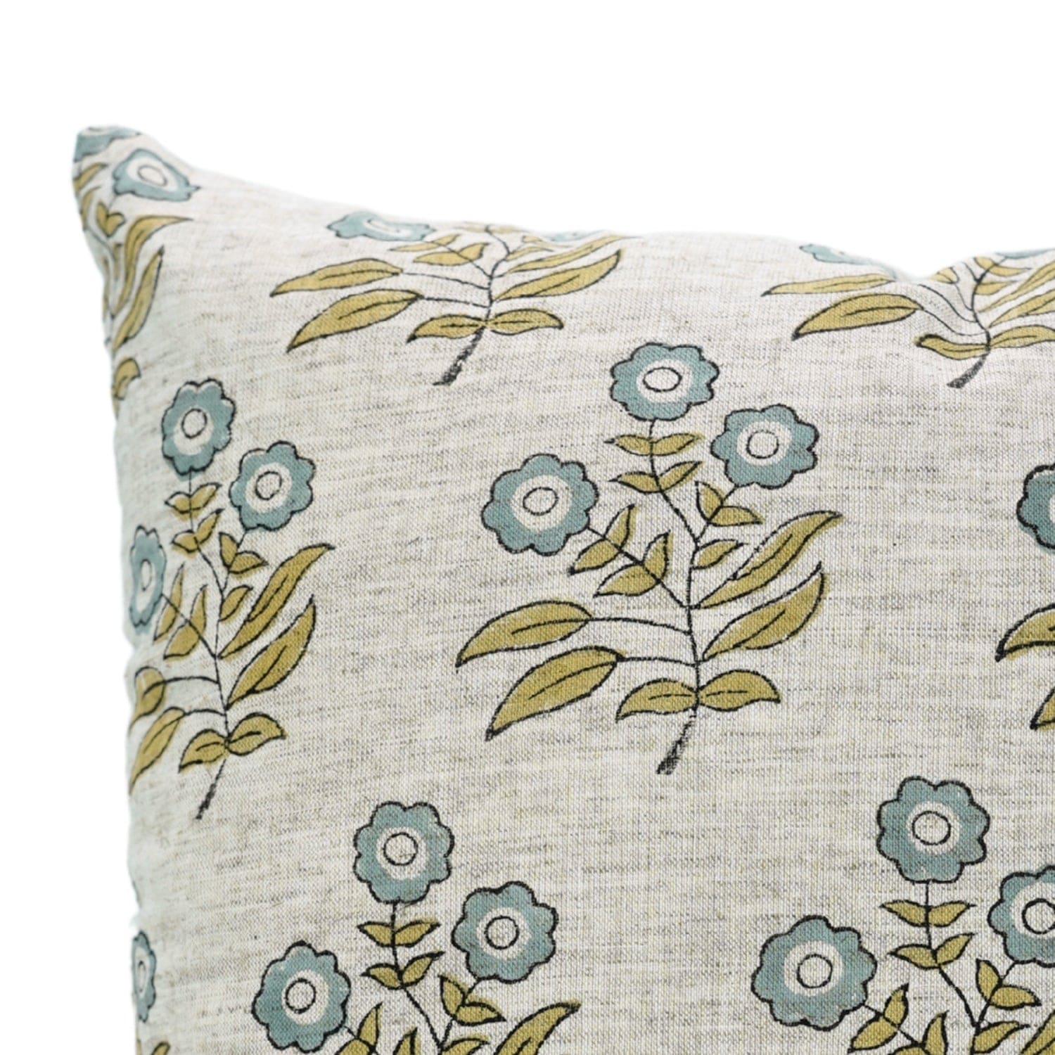 Viscose Linen Throw Cushion Cover – Samrat Green Handblock Printed Floral