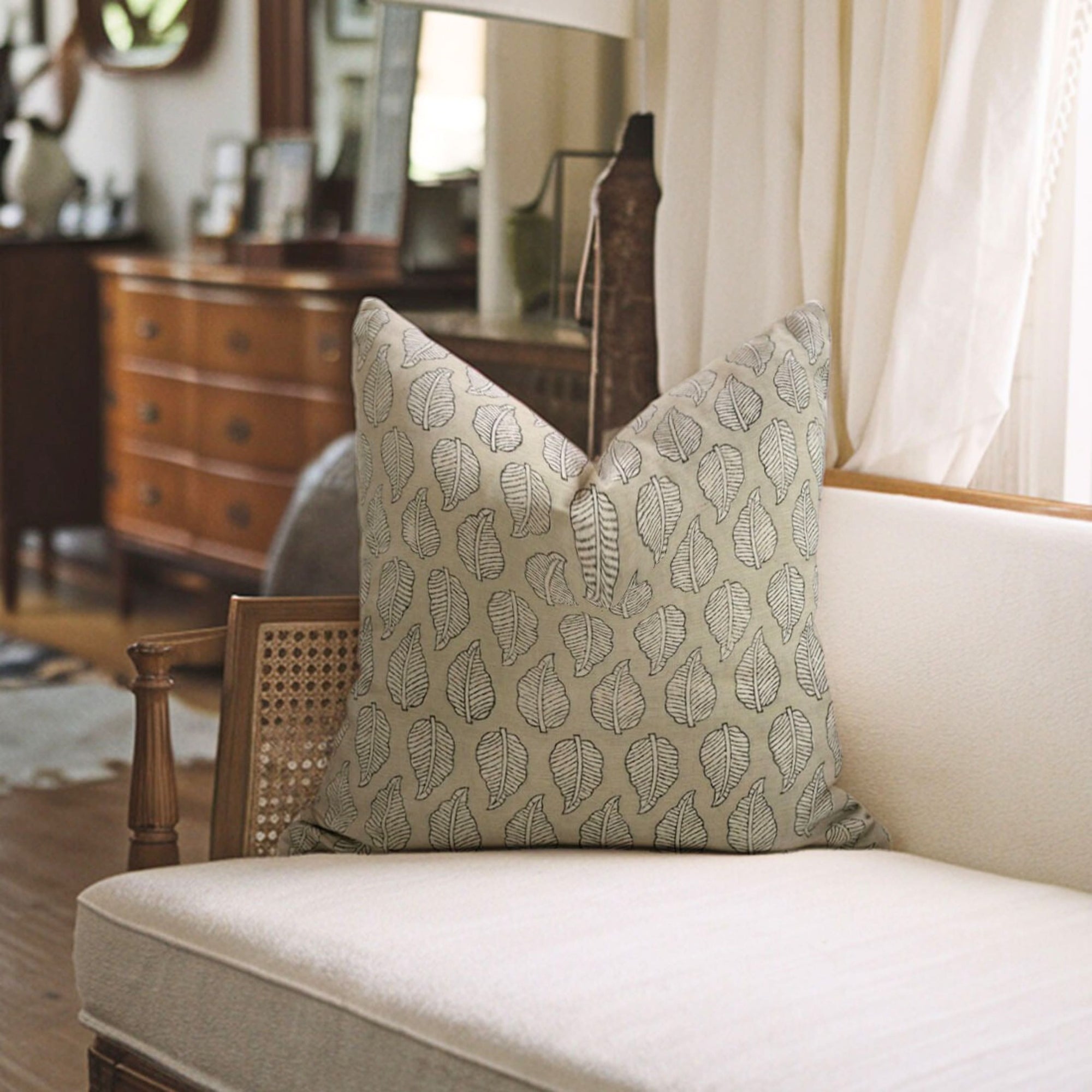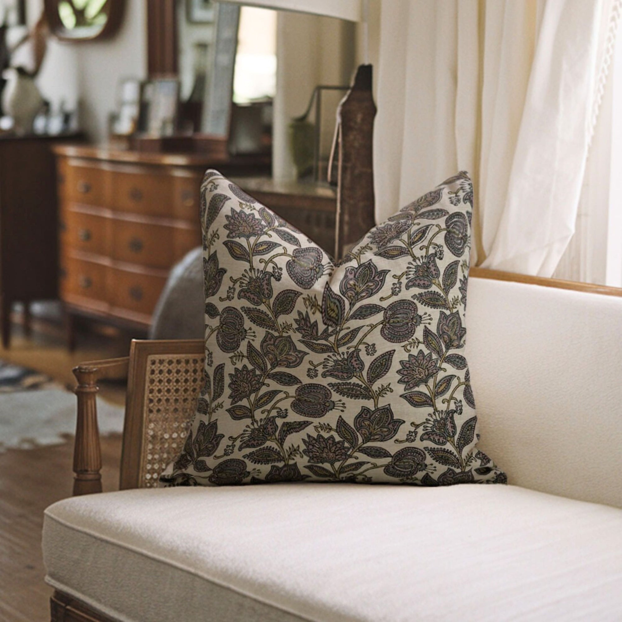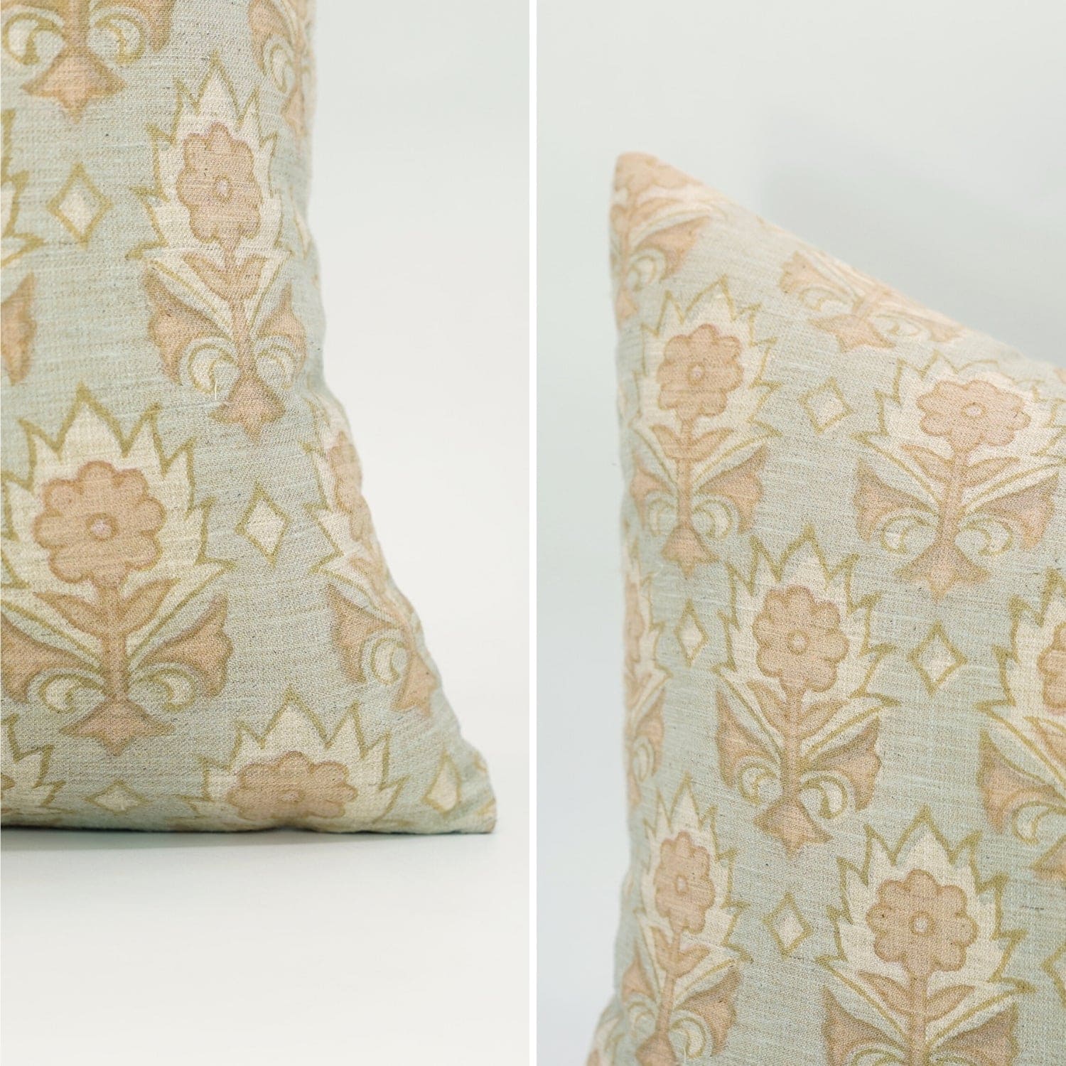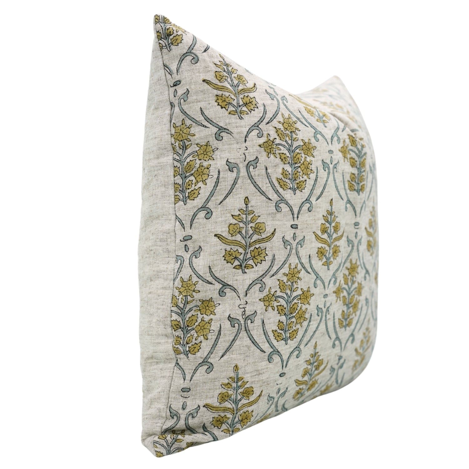 Viscose Linen Throw Cushion Cover – Samrat Green Handblock Printed Floral