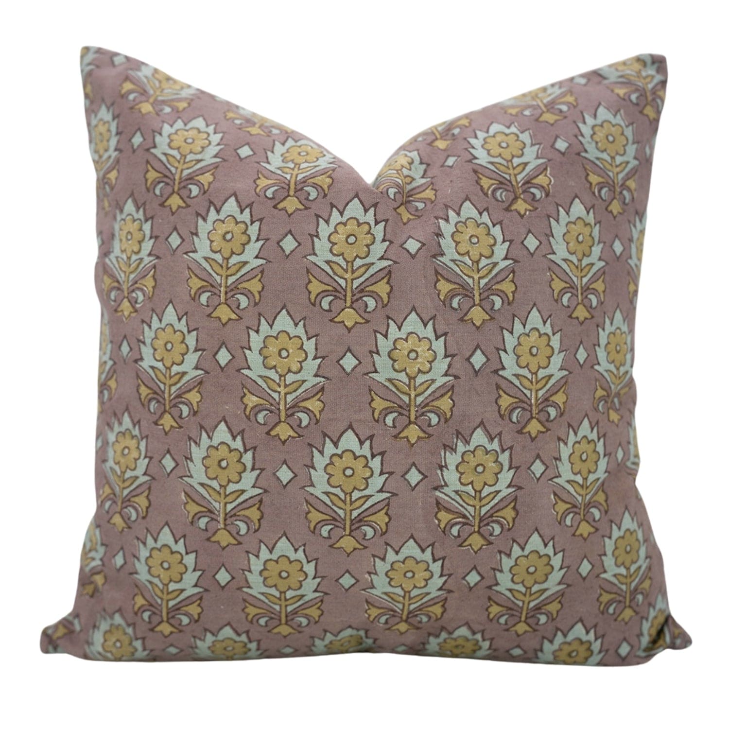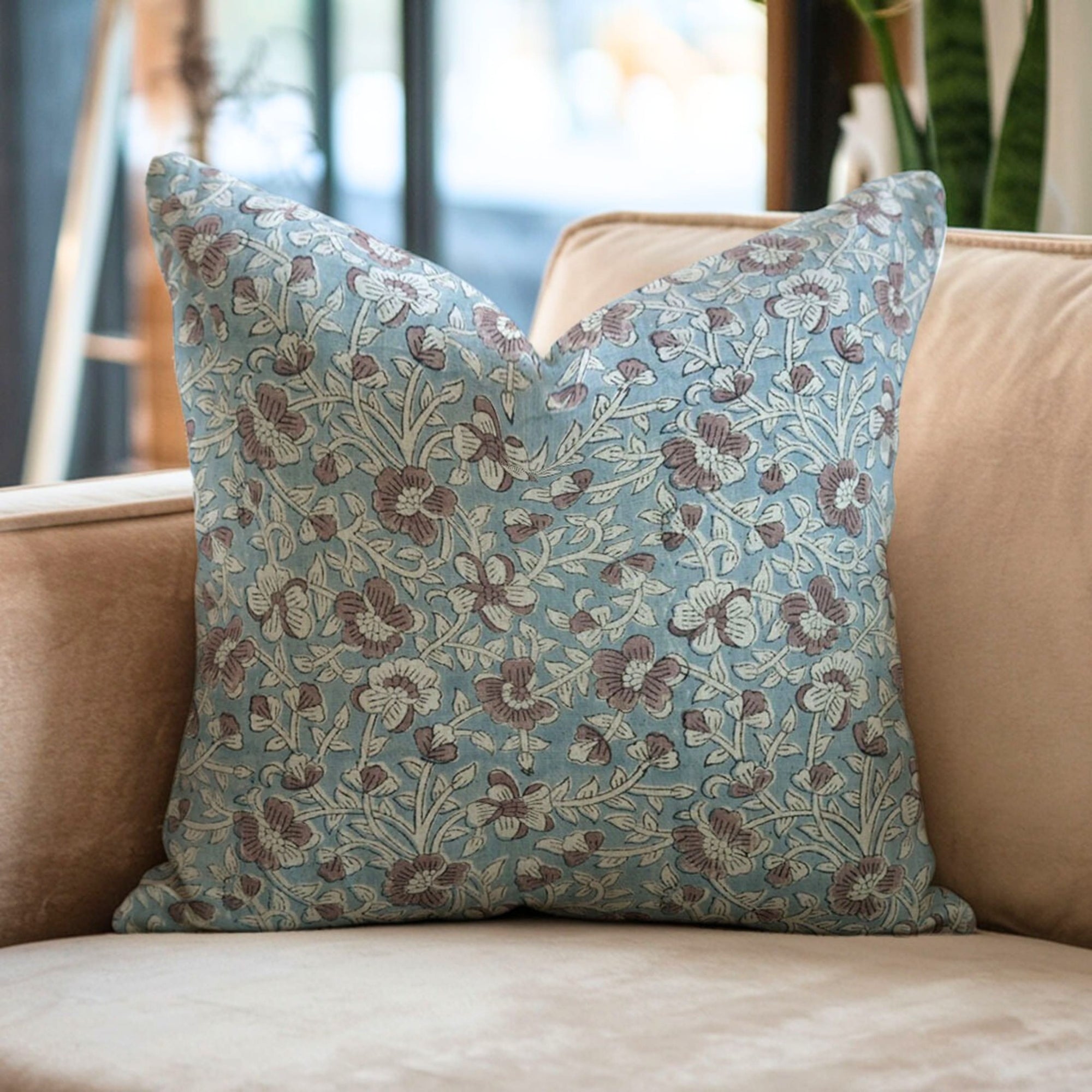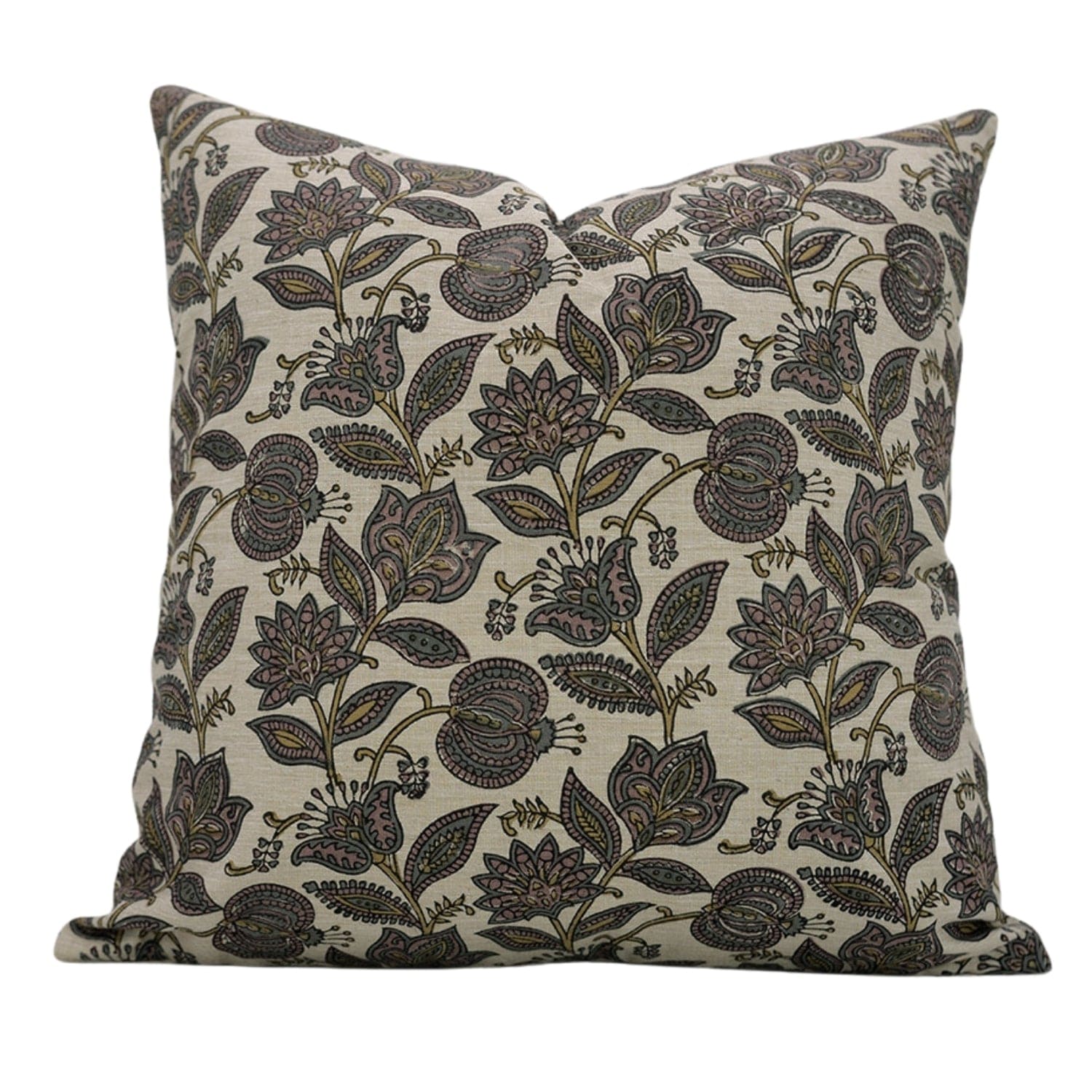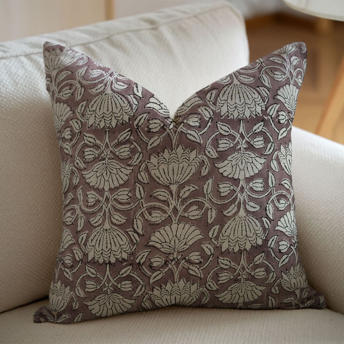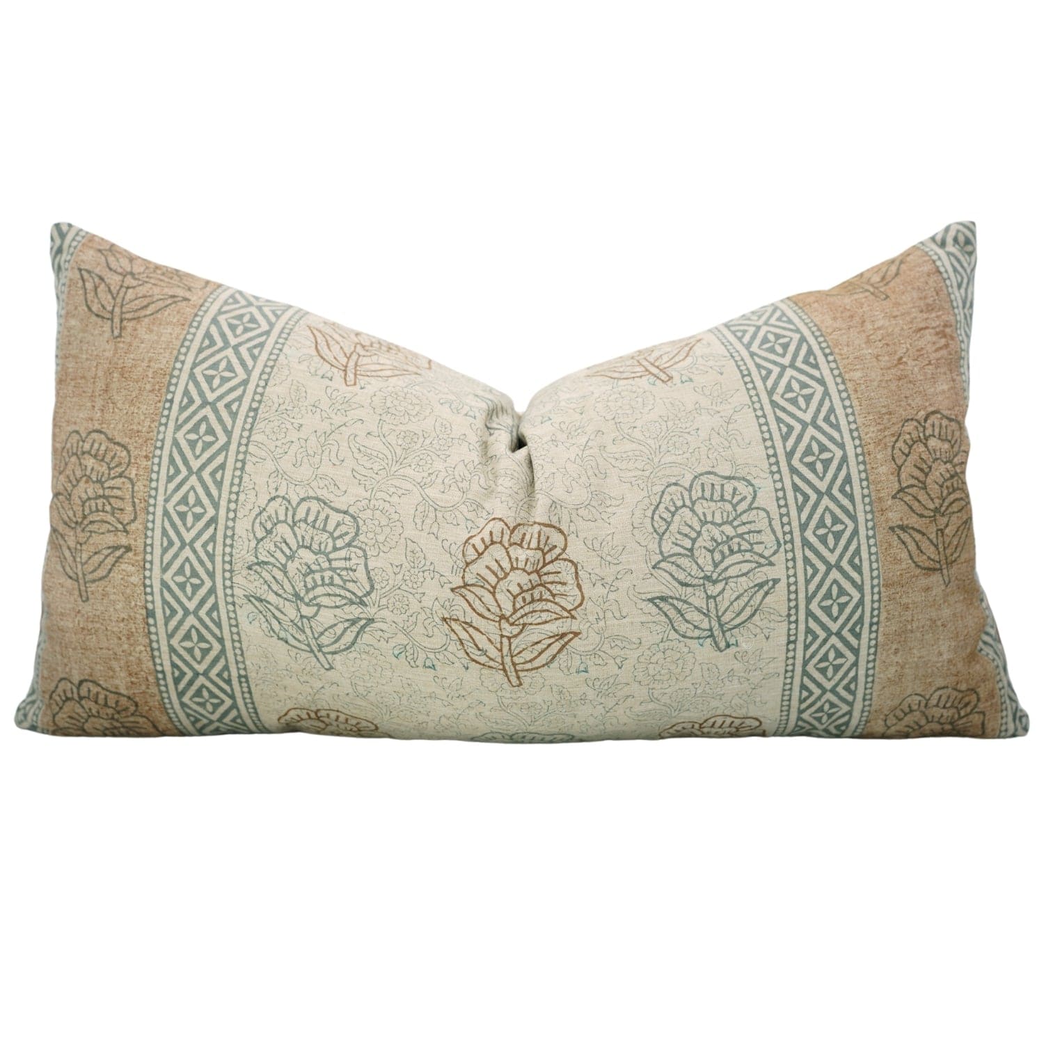 Viscose Linen Throw Cushion Cover – Samrat Green Handblock Printed Floral
